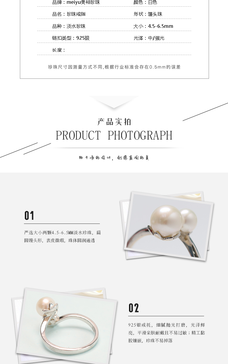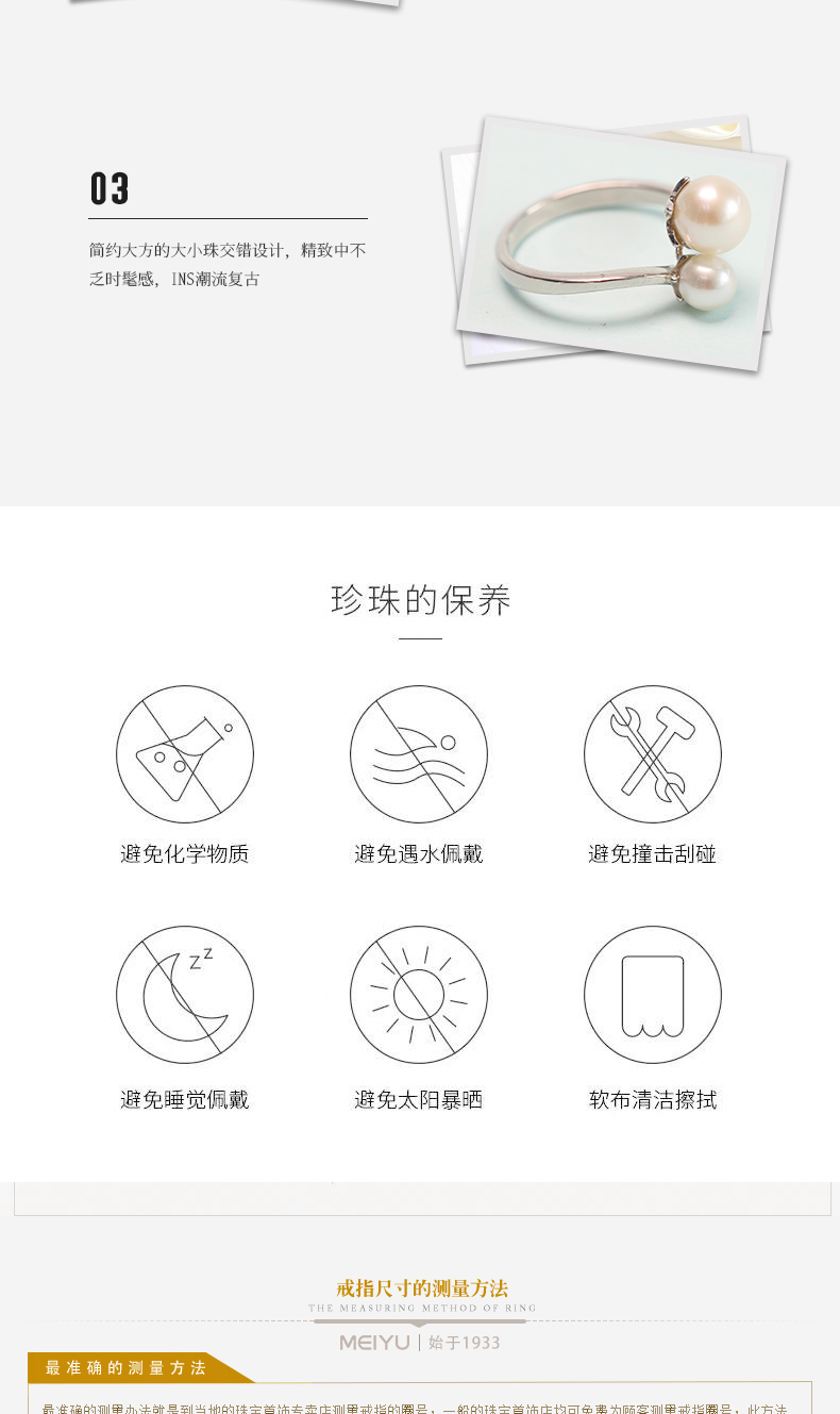 美裕 【承诺】银925淡水珍珠戒指 4.5-6.5mm白 105485