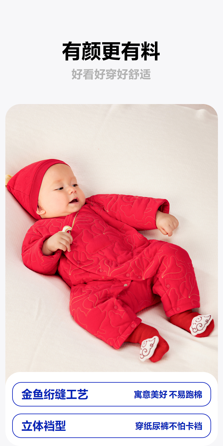 【新年季】迷你巴拉男女童夹棉连体衣宝宝国风拜年爬服联名款