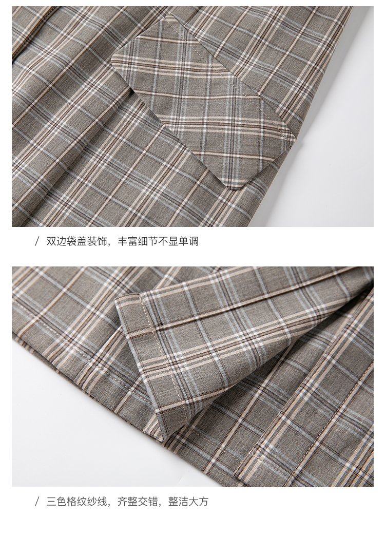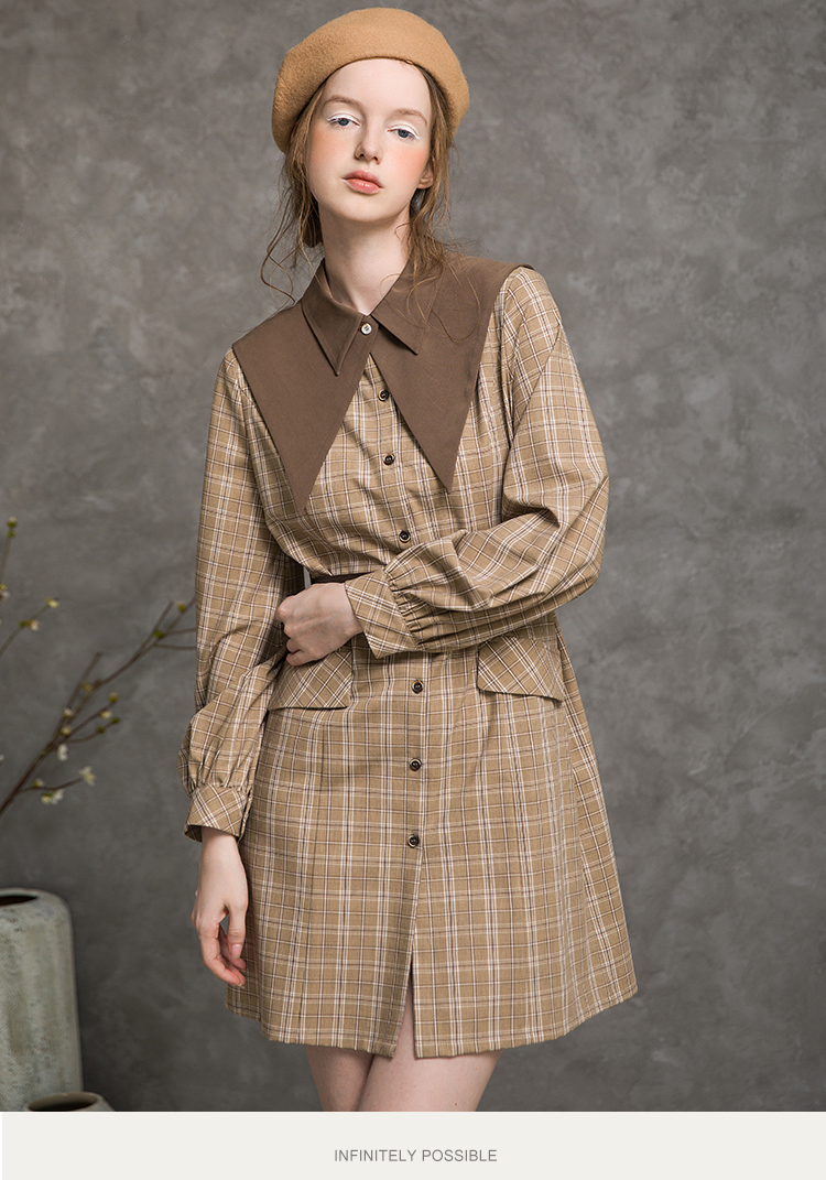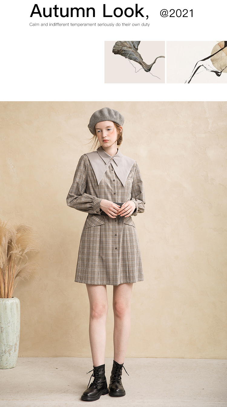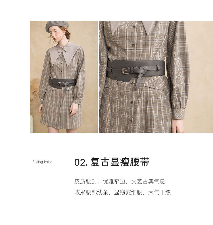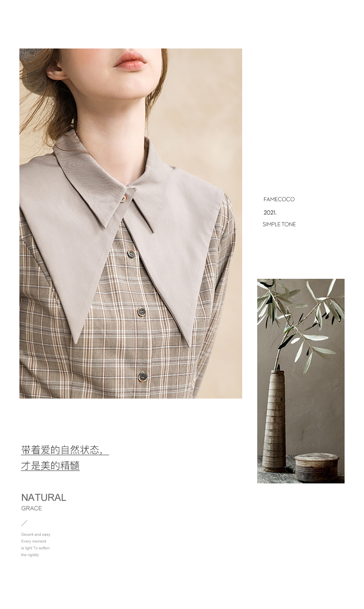 famecoco范可儿格子连衣裙女秋装长袖衬衫裙中长款F216FA019