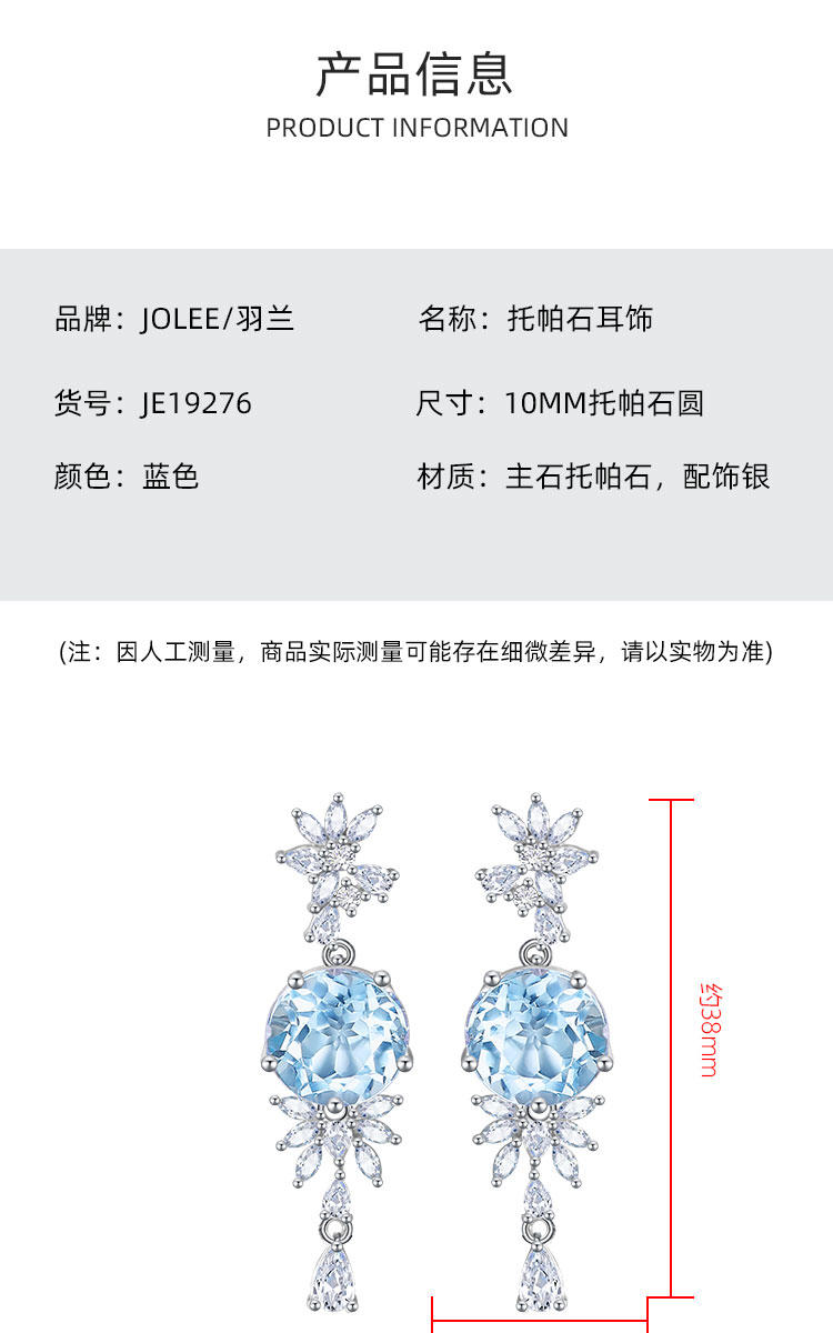 【托帕石耳环】S925银托帕石彩色宝石轻奢耳饰品JE19276