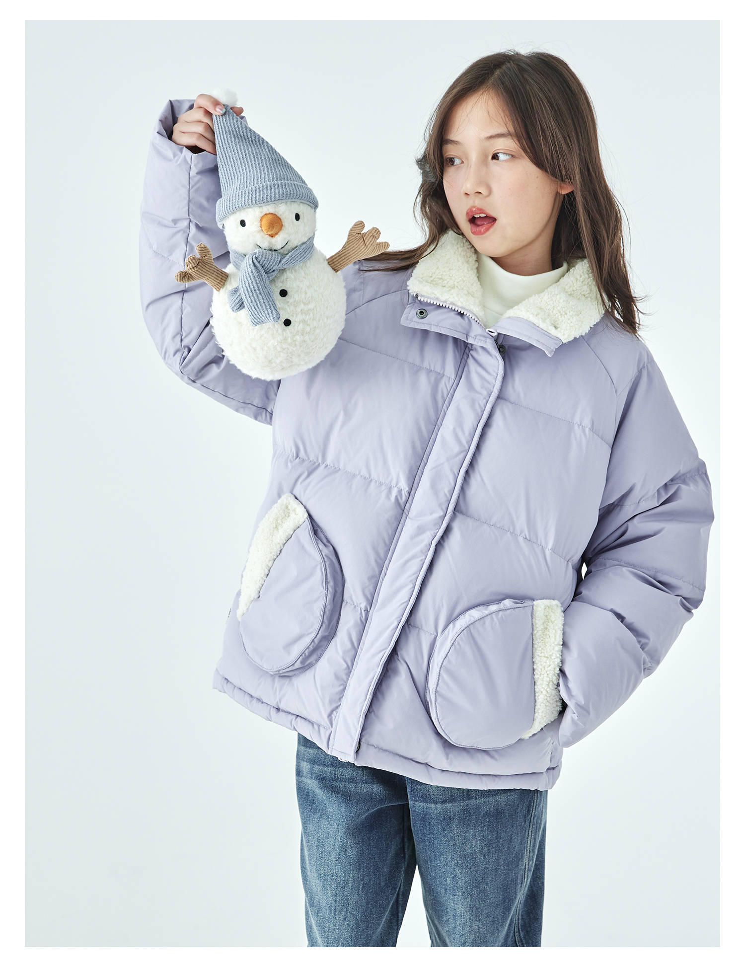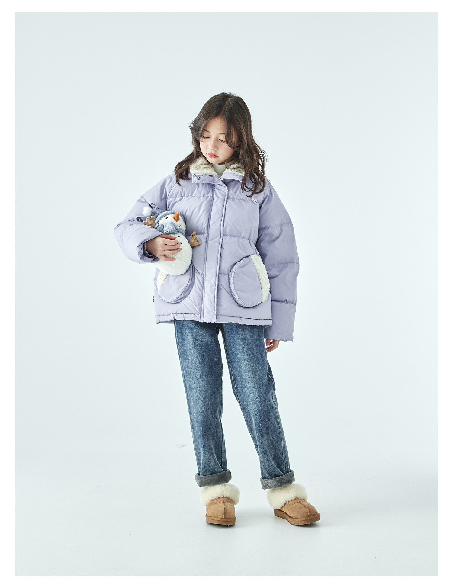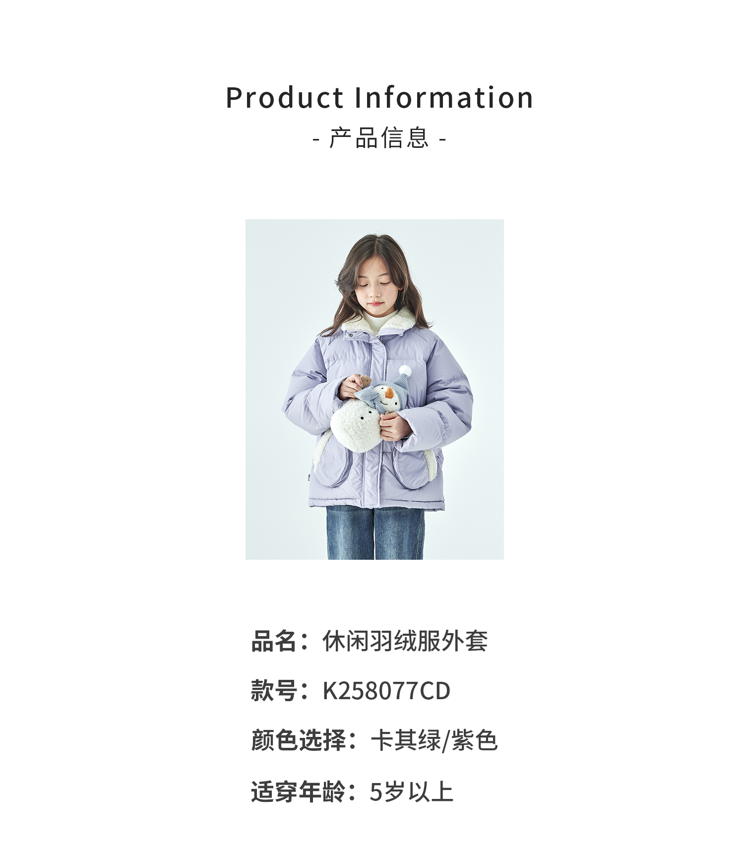 紫色预售12.30发 棵初25年冬季新款亲子中大女童休闲保暖羽绒服三防面料防钻绒外套
