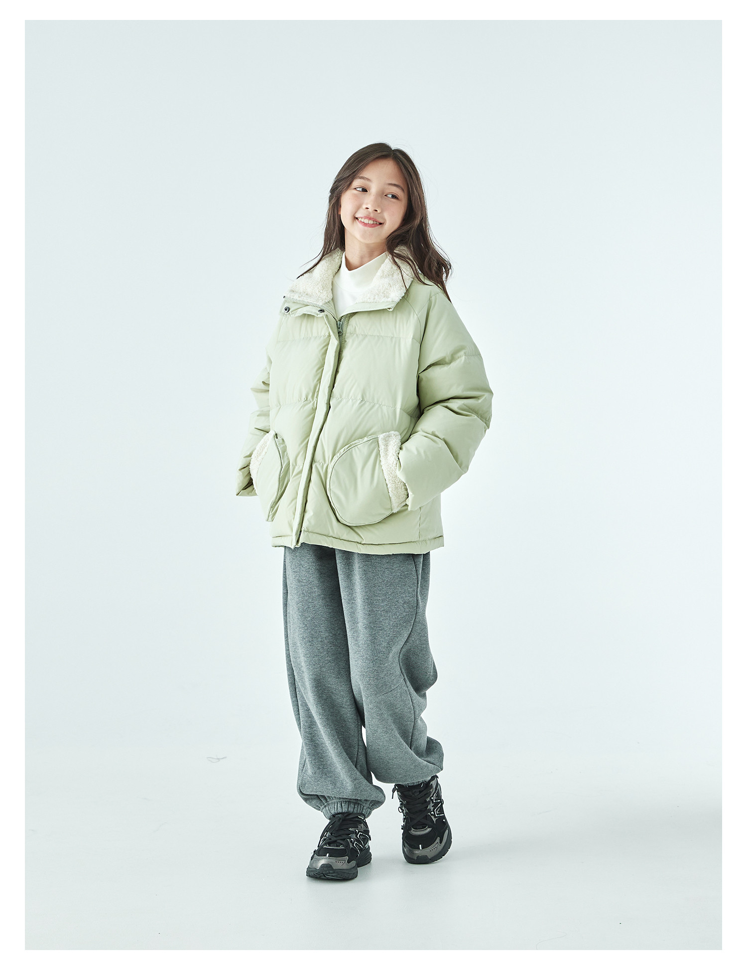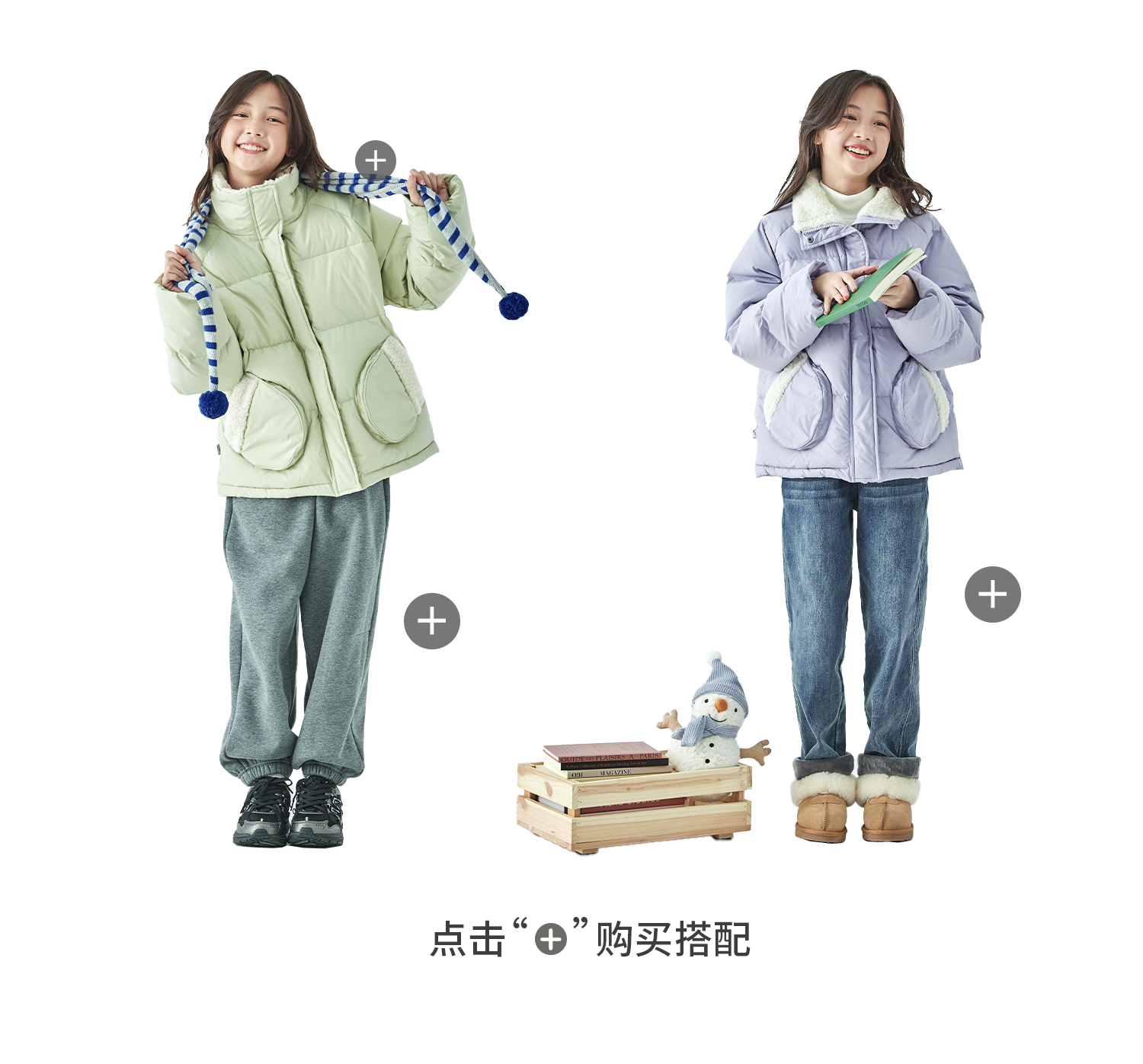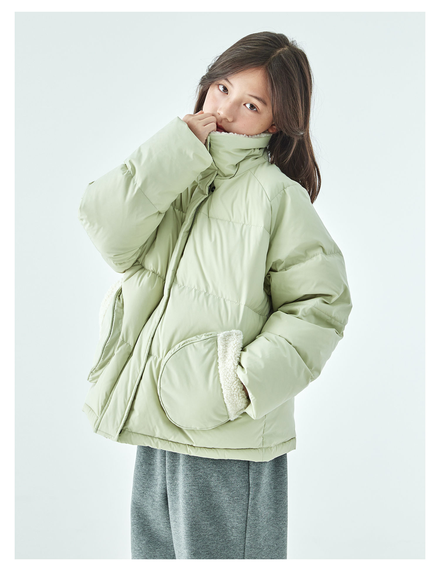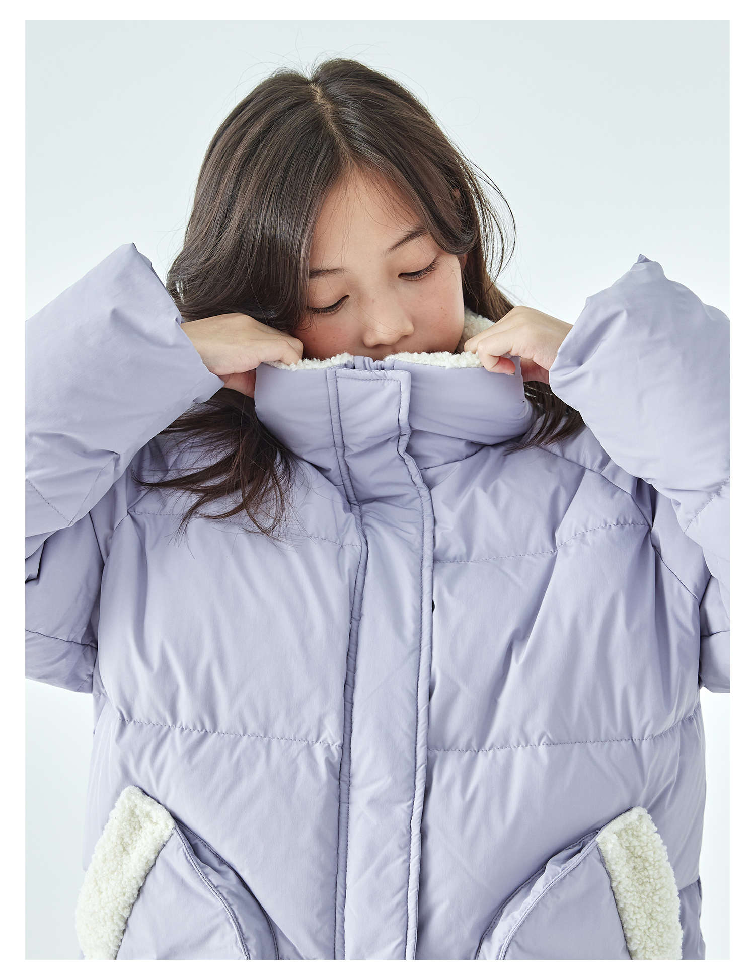 紫色预售12.30发 棵初25年冬季新款亲子中大女童休闲保暖羽绒服三防面料防钻绒外套