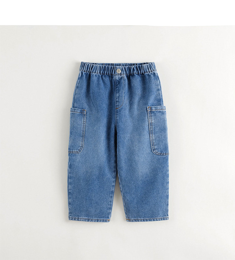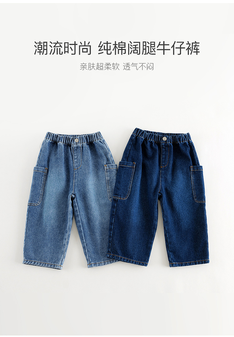 马克珍妮男童工装大口袋休闲牛仔裤儿童裤子直筒裤秋装新款241210