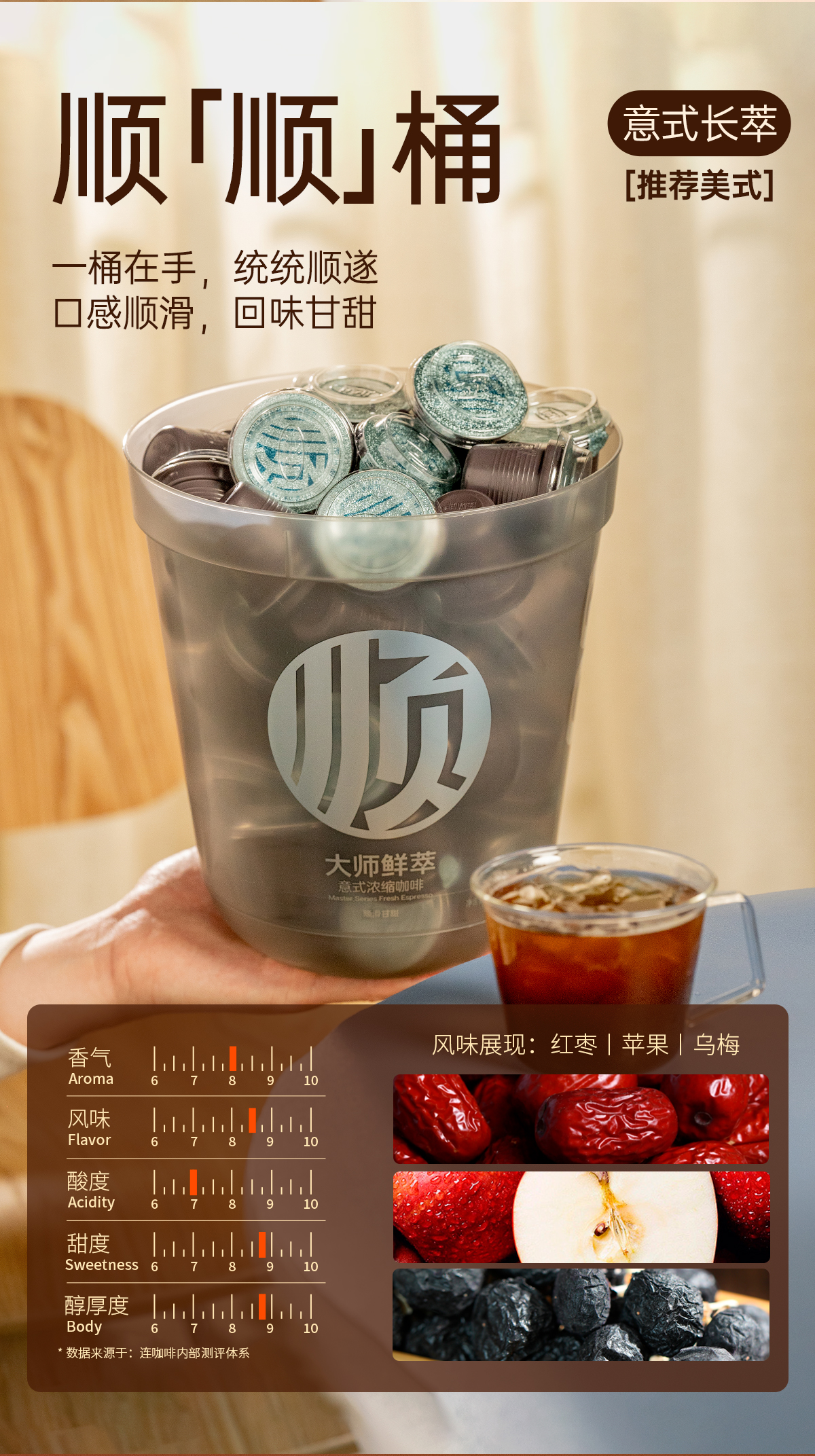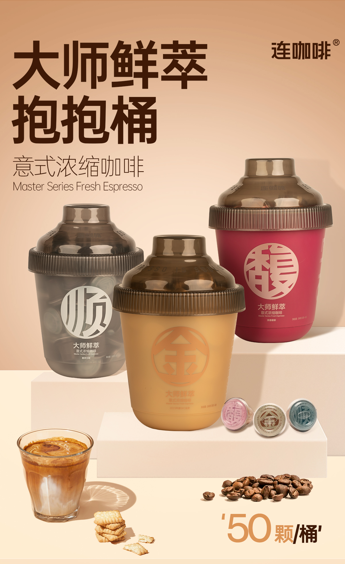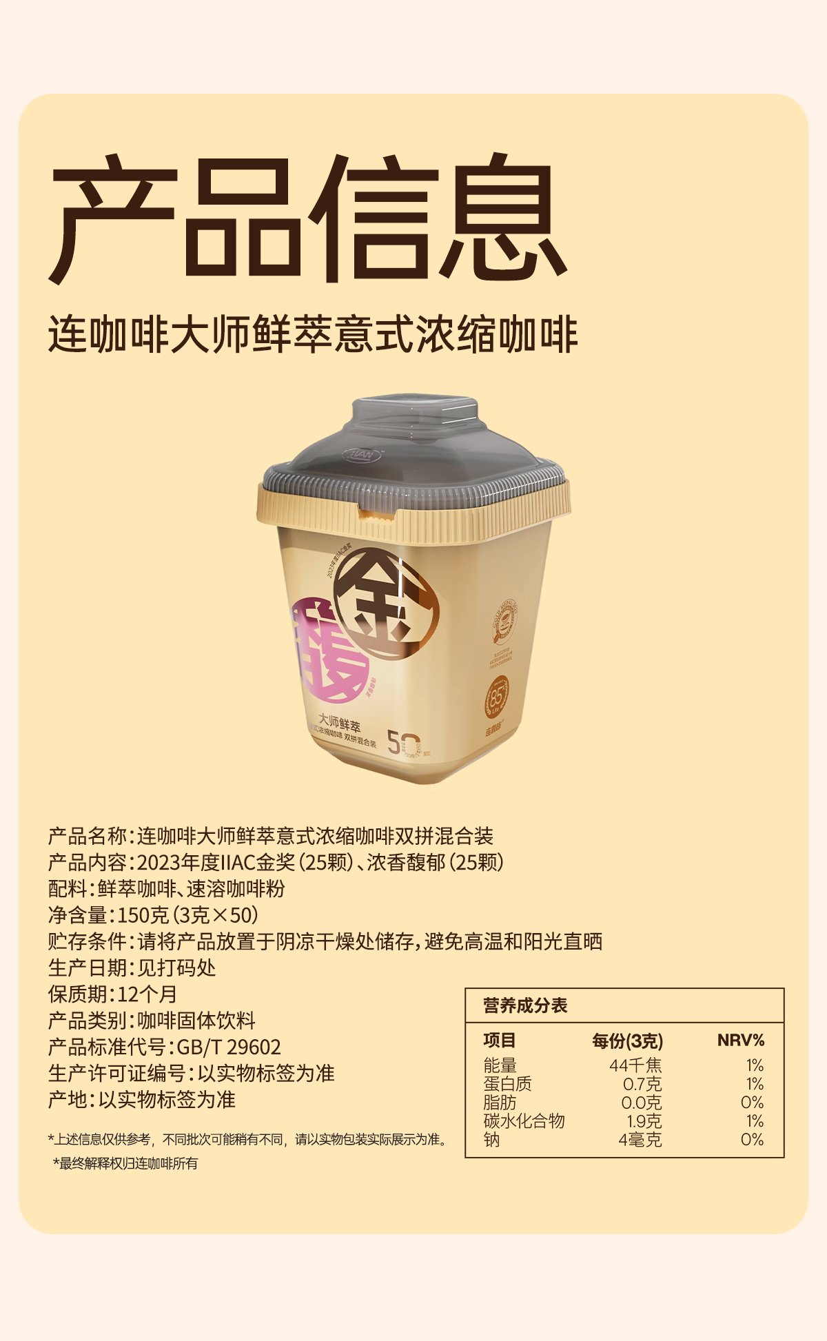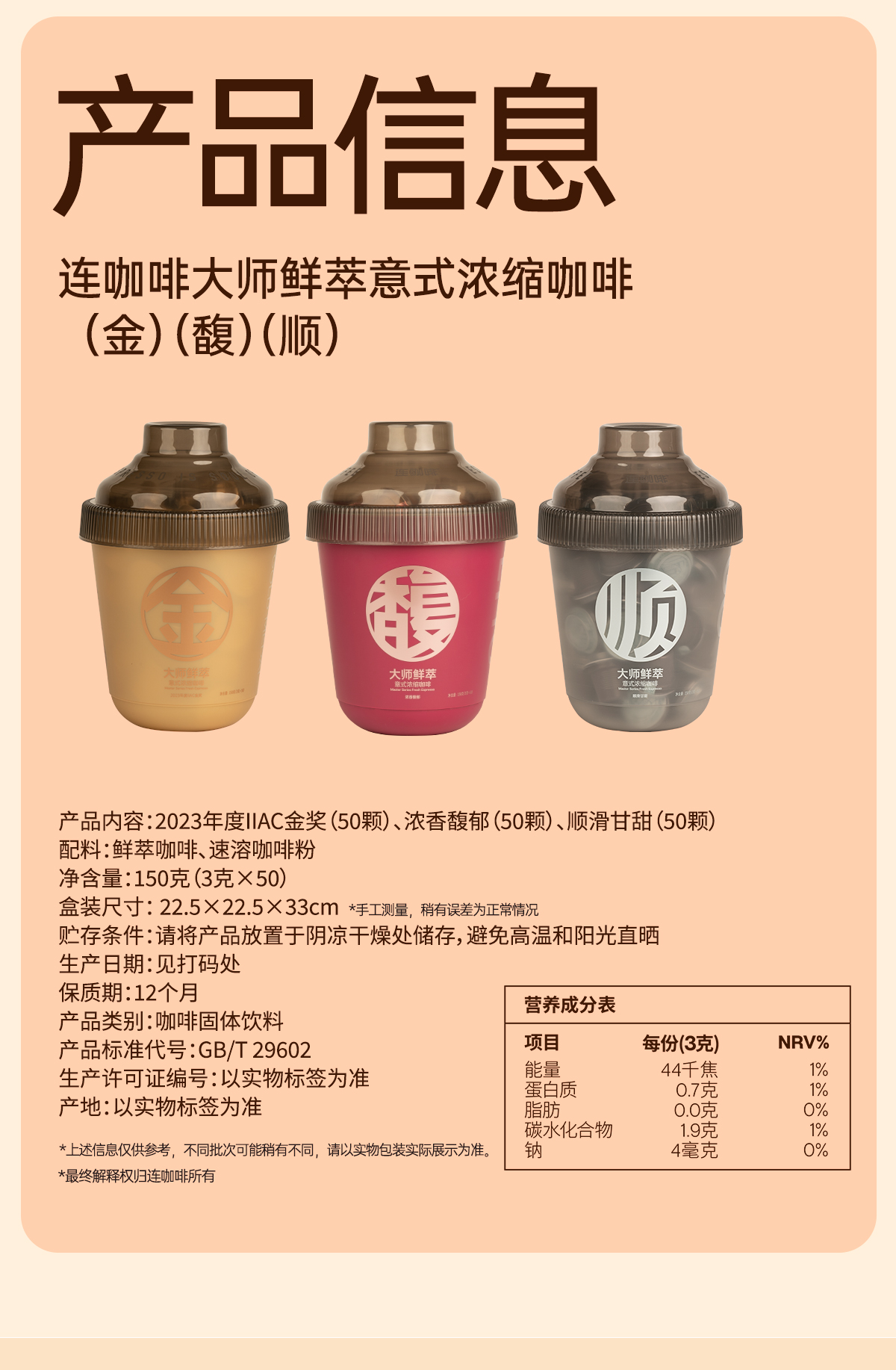 连咖啡 大师鲜萃意式浓缩黑咖啡IIAC金奖 金馥顺桶 3g*50颗 油脂丰富 冷热即溶