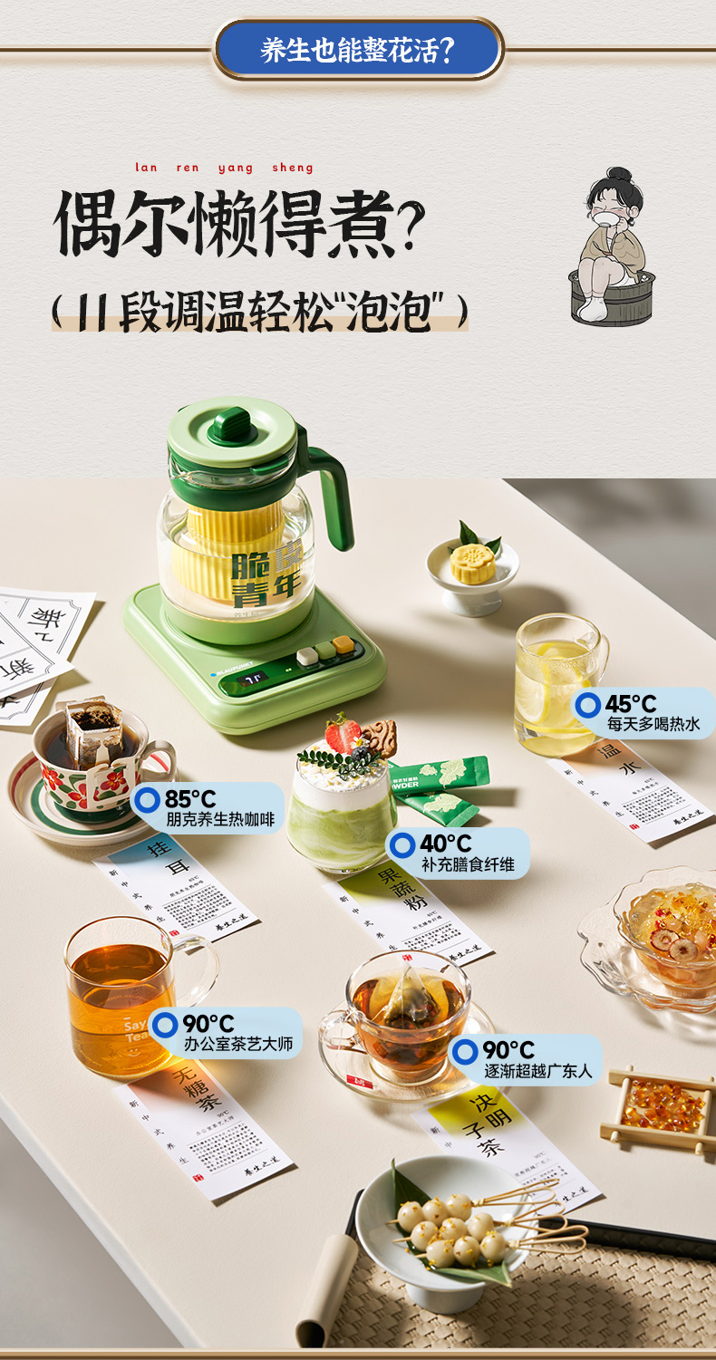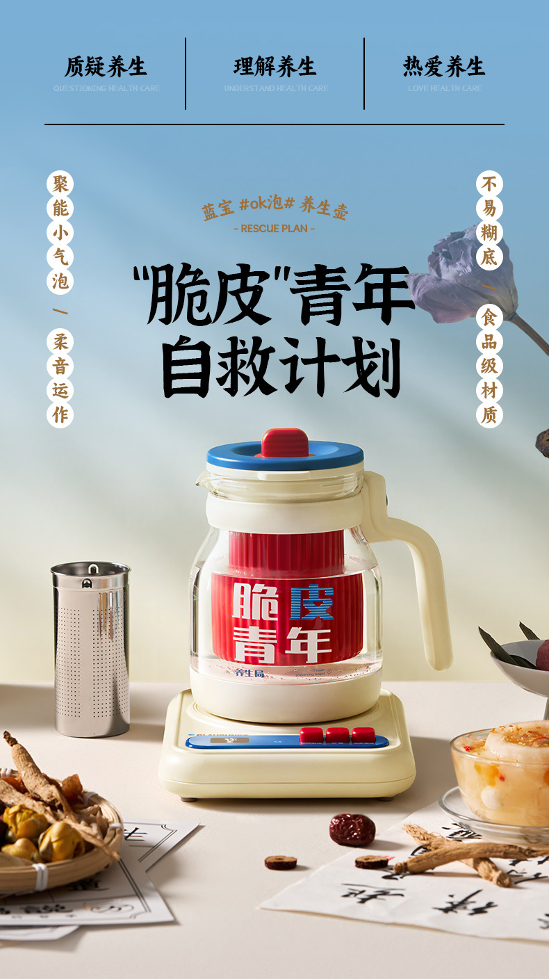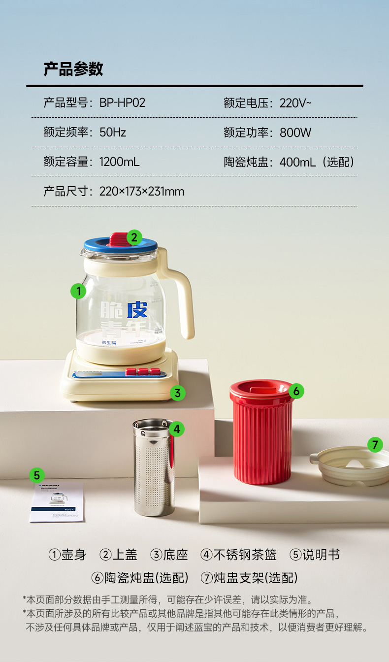 【聚能小气泡萃煮技术】蓝宝养生壶 柔音炖煮 烧水快不溢出 6大菜单可选 11段调温 1.2L大容量 BP-HP02