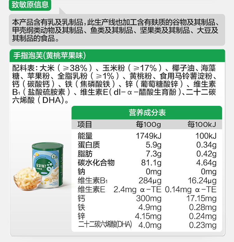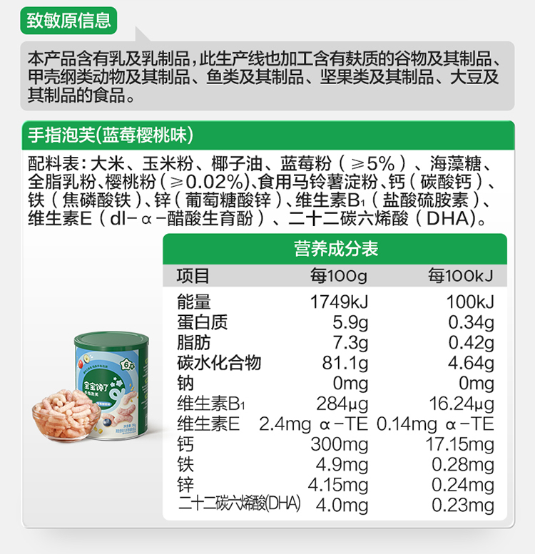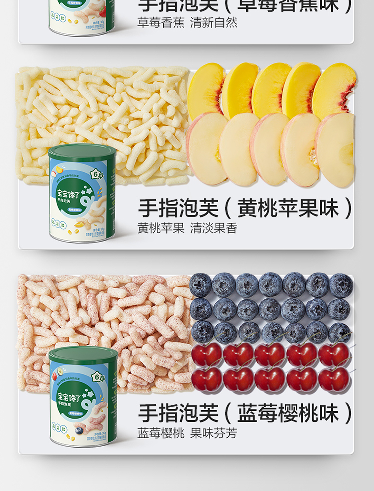 【宝宝馋了】婴幼儿手指泡芙(蓝莓樱桃/黄桃苹果) 强化钙铁锌 送6月+婴幼儿食谱