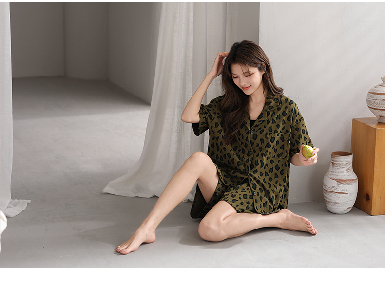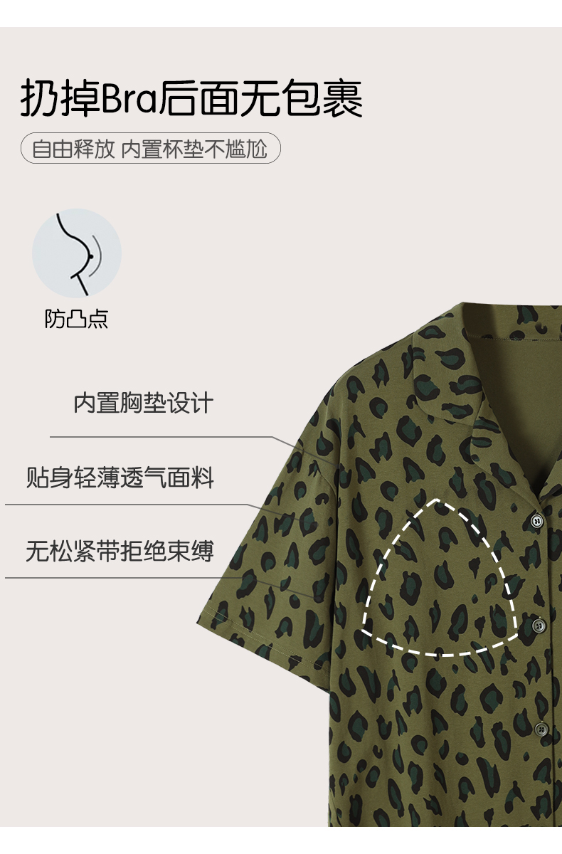 可人儿小众设计师新款奥力绵女睡衣夏季带胸垫可外出家居服三件套