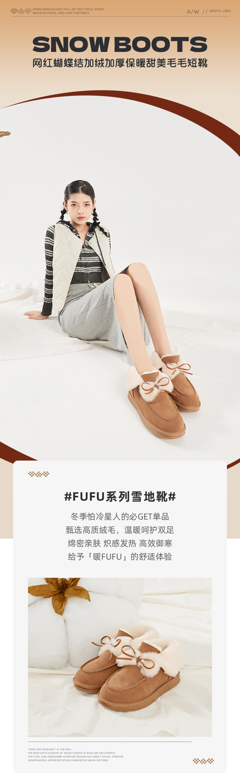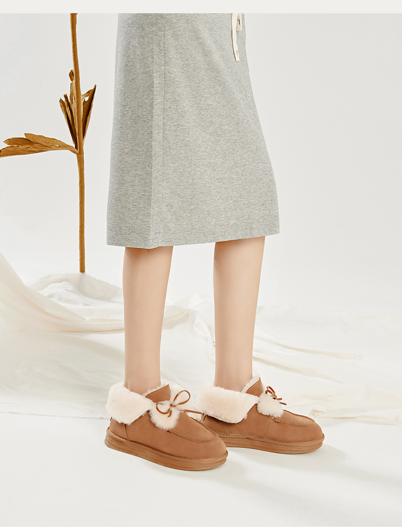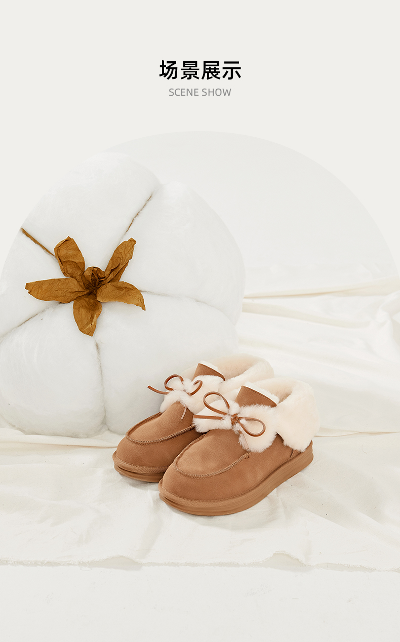 Safiya/索菲娅2023冬季网红蝴蝶结加绒加厚保暖甜美毛毛短靴雪地靴 SF3411A094