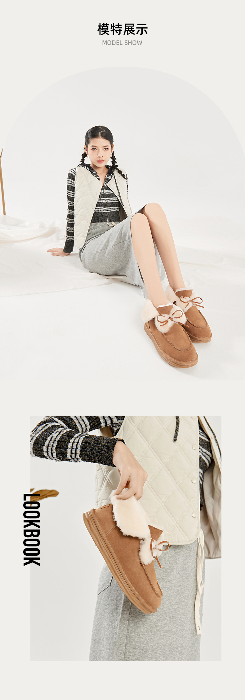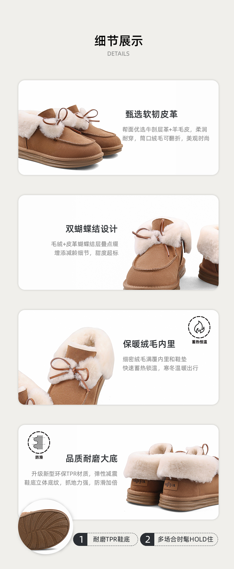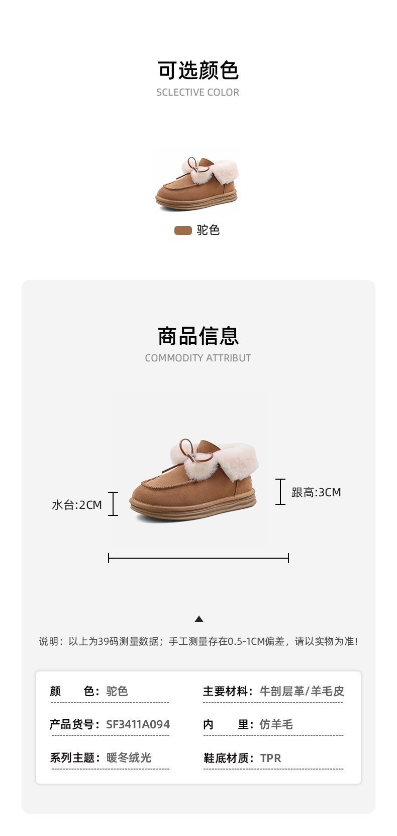 Safiya/索菲娅2023冬季网红蝴蝶结加绒加厚保暖甜美毛毛短靴雪地靴 SF3411A094