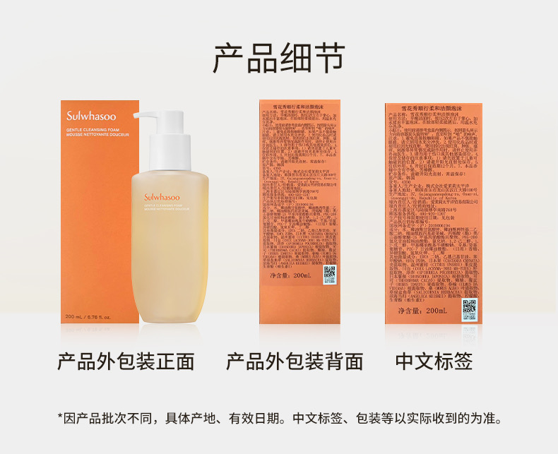 韩国Sulwhasoo雪花秀顺行洗面奶新款200ml 氨基酸柔和洁面泡沫 深层清洁