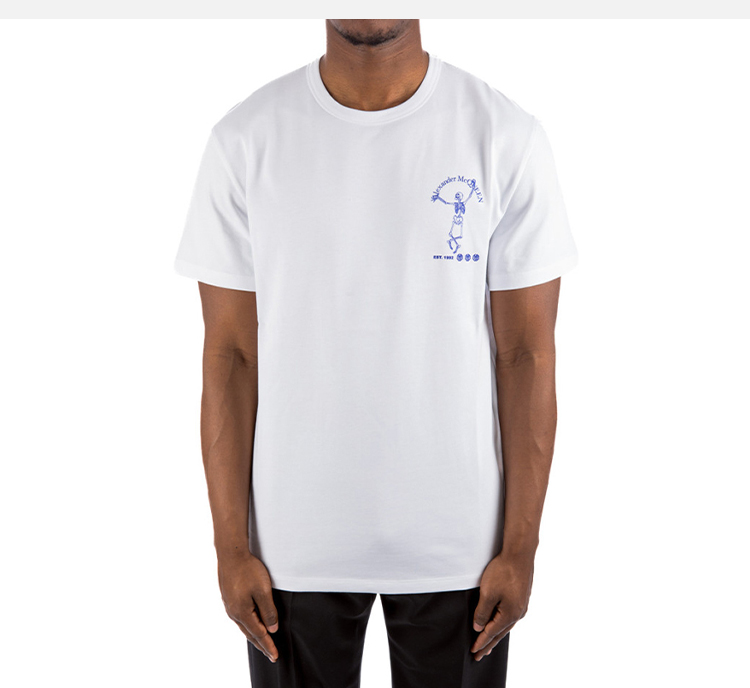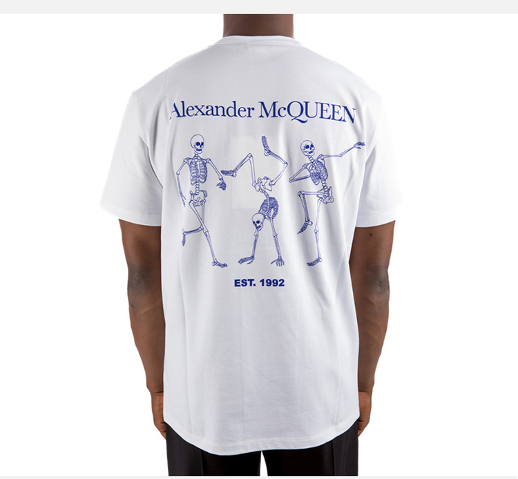ALEXANDER MCQUEEN 亚历山大.麦昆 男士棉质骷髅徽标印花圆领短袖T恤 白色 711004 QTZ40 0900
