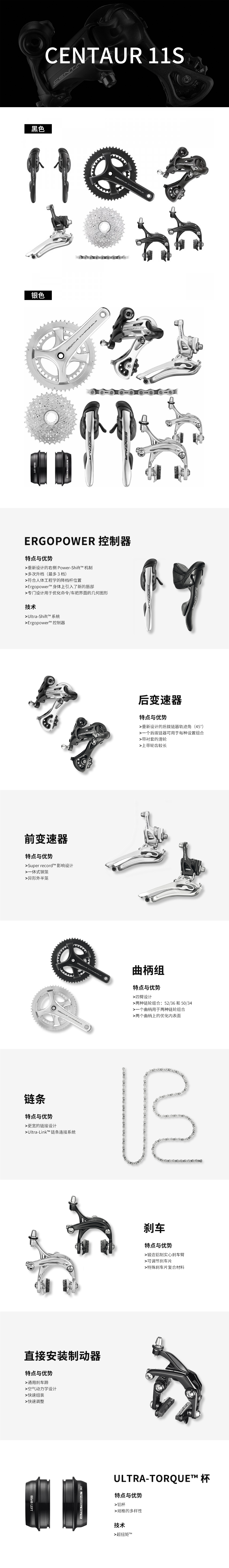 Campagnolo Centaur 11s黑色 圈刹大套