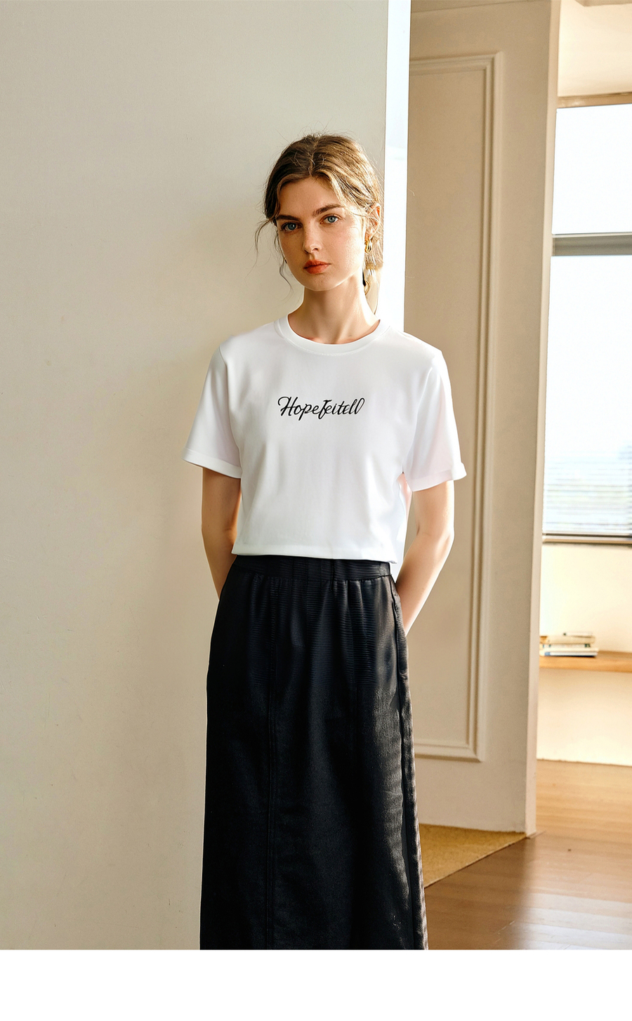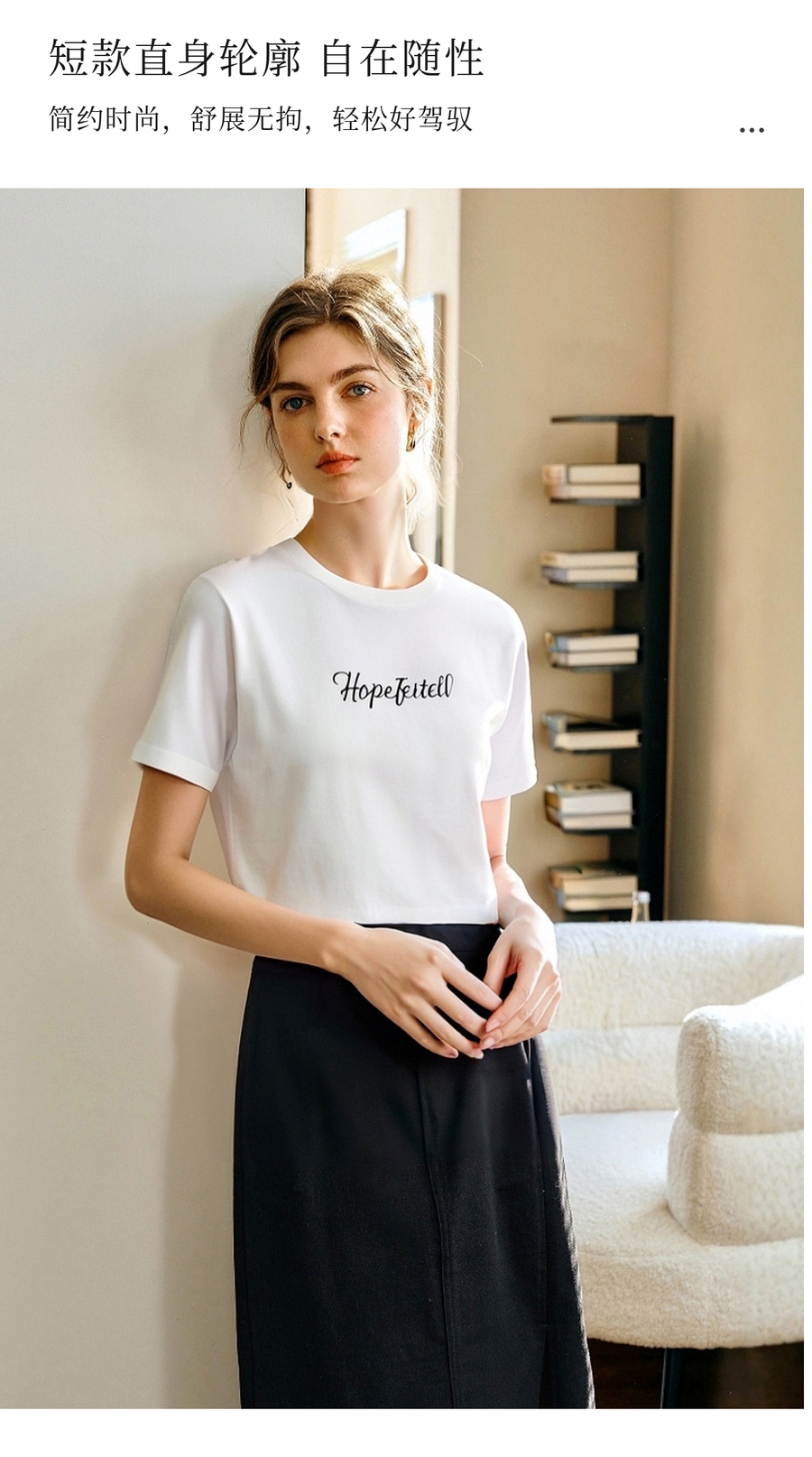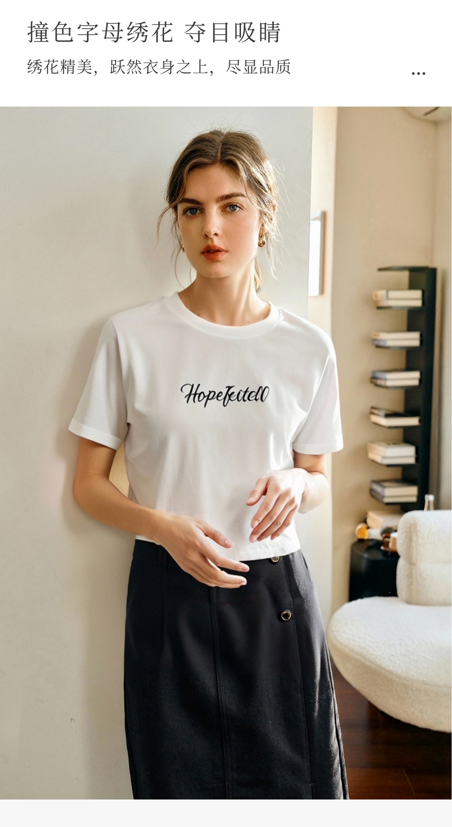 欧芮儿2025夏季新款白色字母绣花简约百搭短袖T恤女宽松休闲上衣