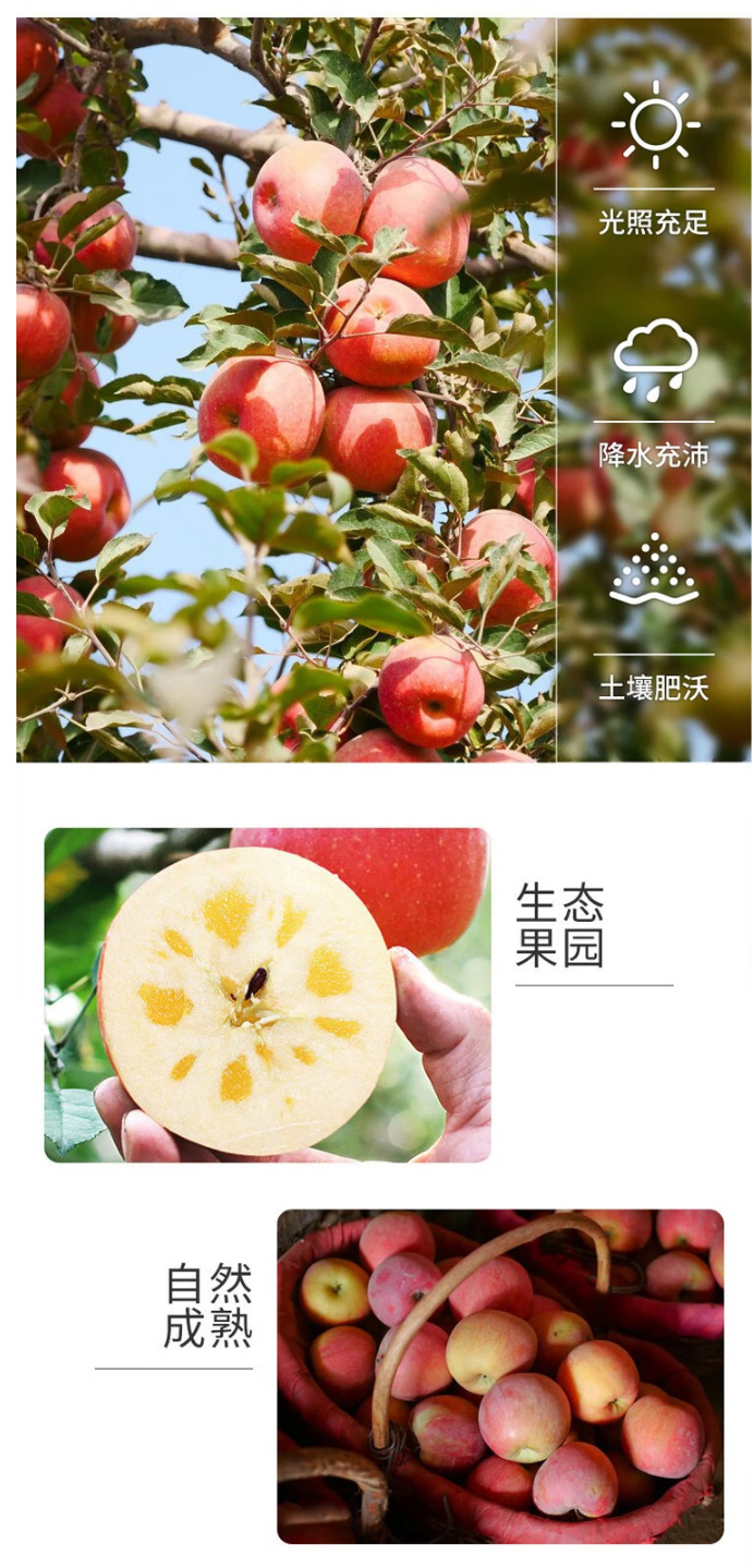 【严选】新疆阿克苏冰糖心苹果家庭装10斤/箱(单果果径80-90mm精品果 18枚左右) (厂家直发)