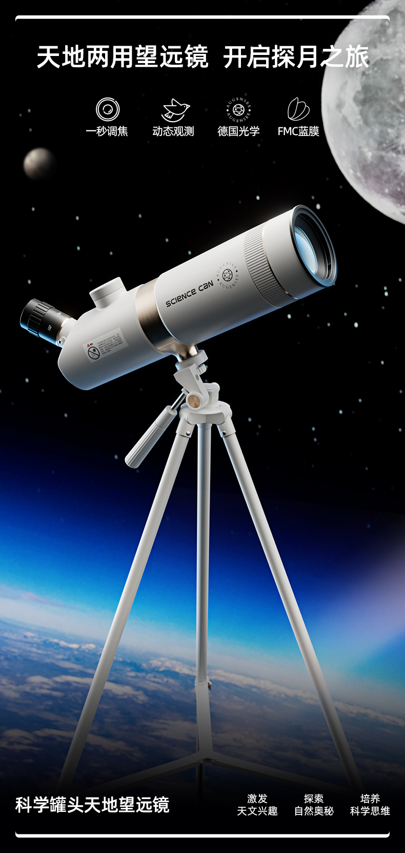 【1秒调焦 观鸟望月轻松操作】科学罐头天地两用入门级天文望远镜 高清中小学生专用 天地两用望远镜 开启探月之旅