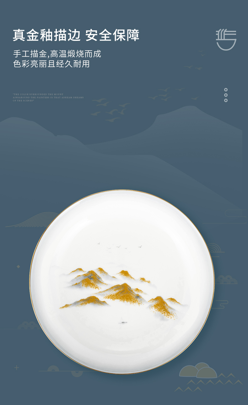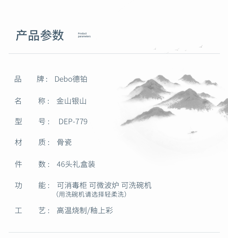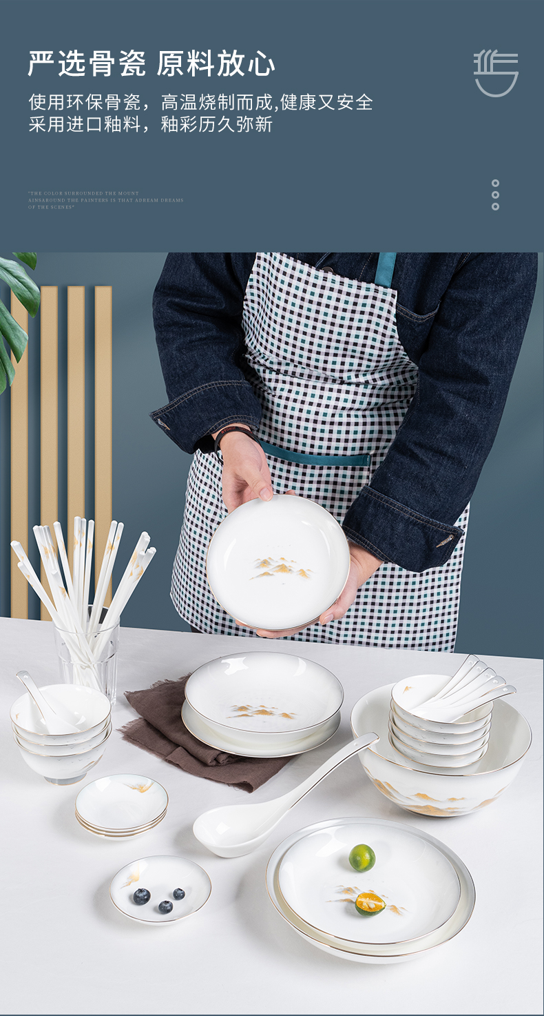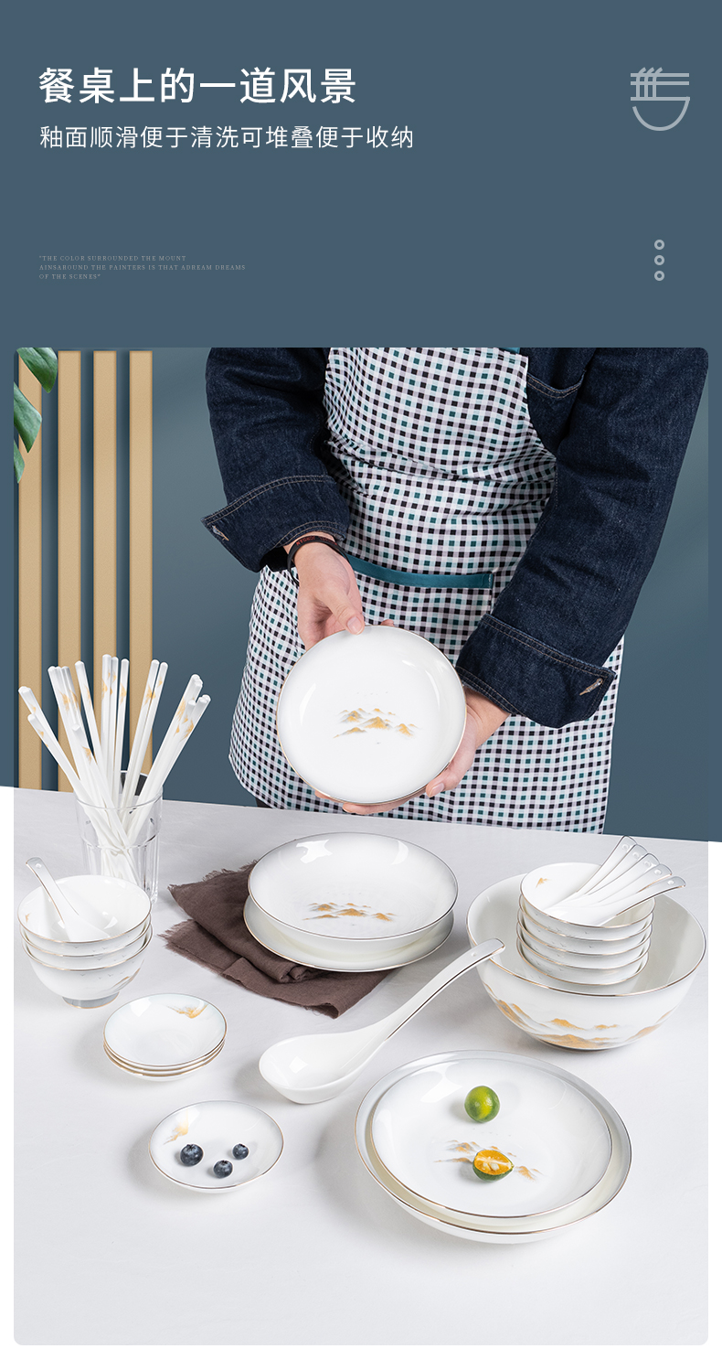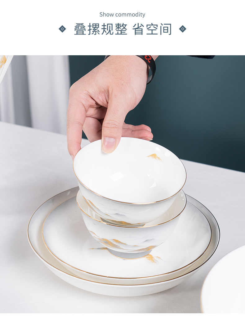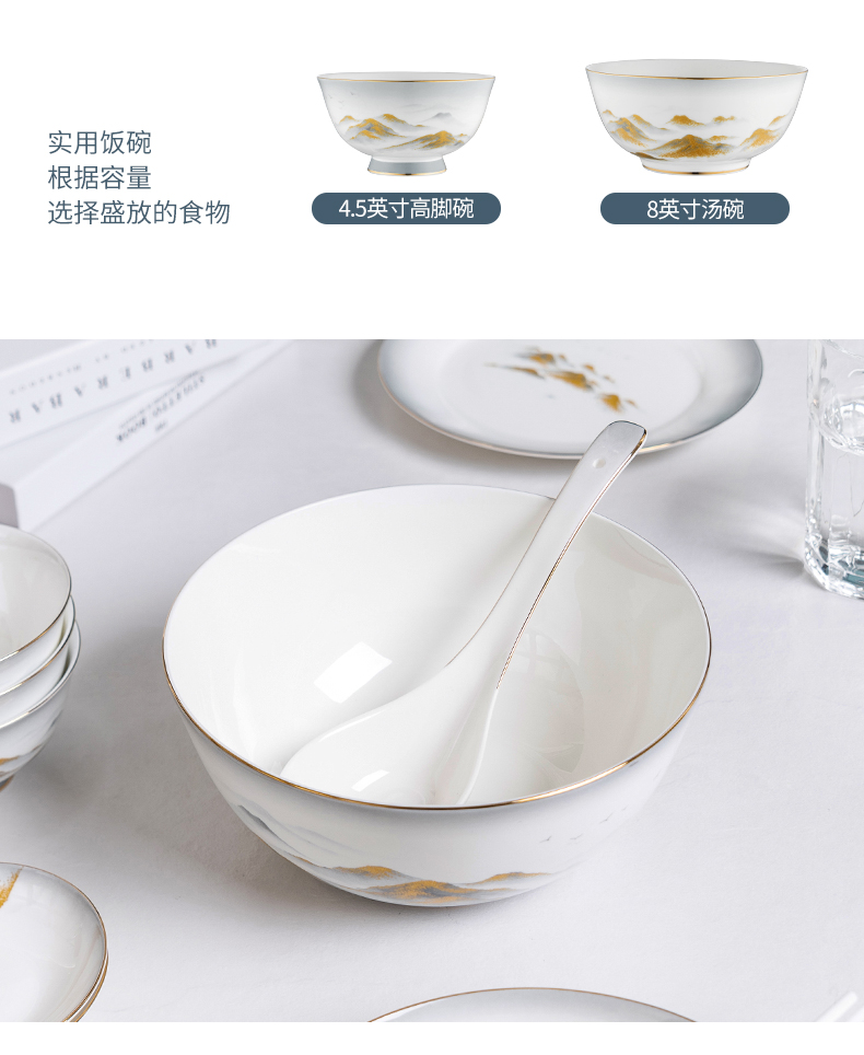 Debo德铂金山银山高档山水画正骨陶瓷餐具家用碗筷46头