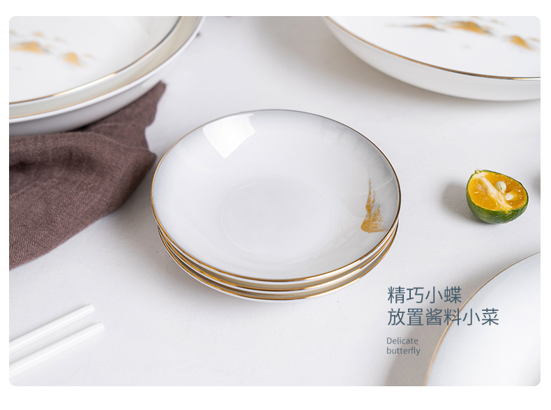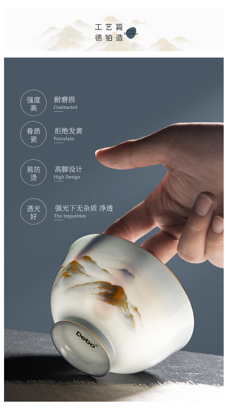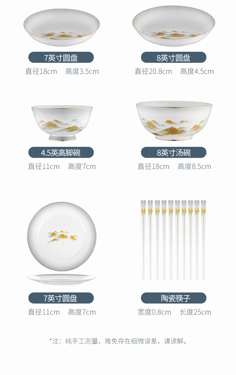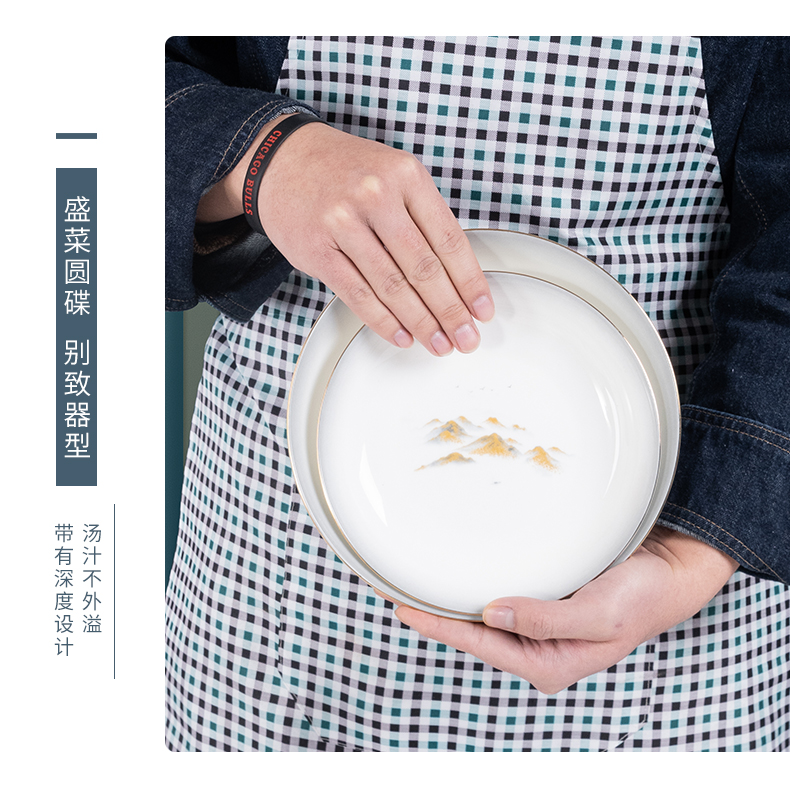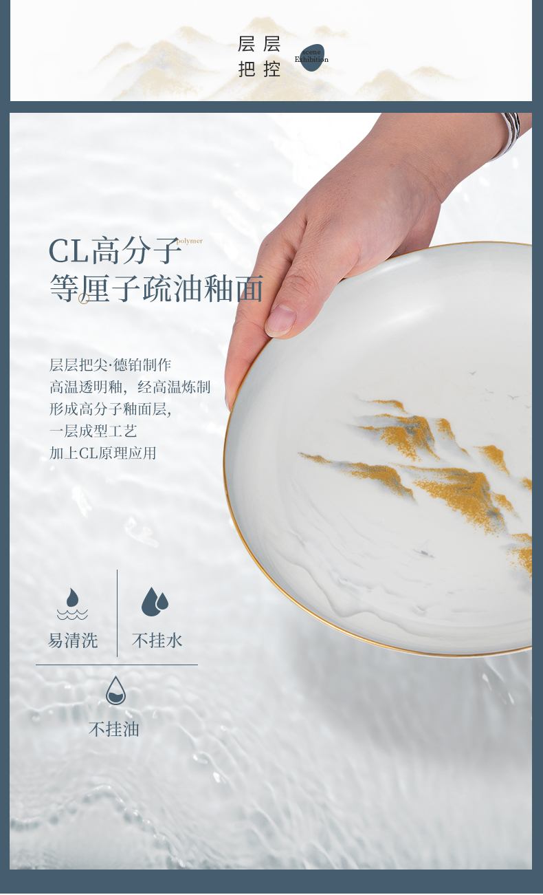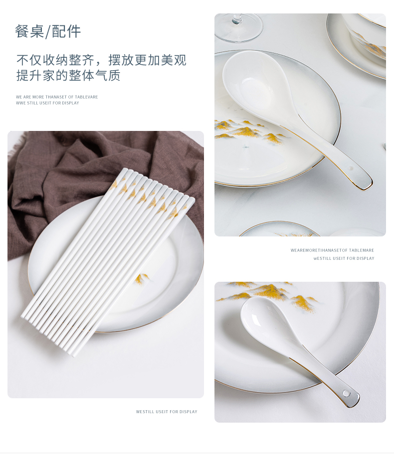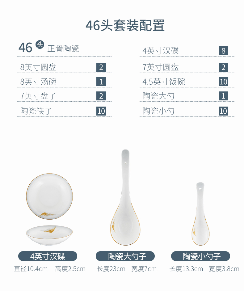 Debo德铂金山银山高档山水画正骨陶瓷餐具家用碗筷46头