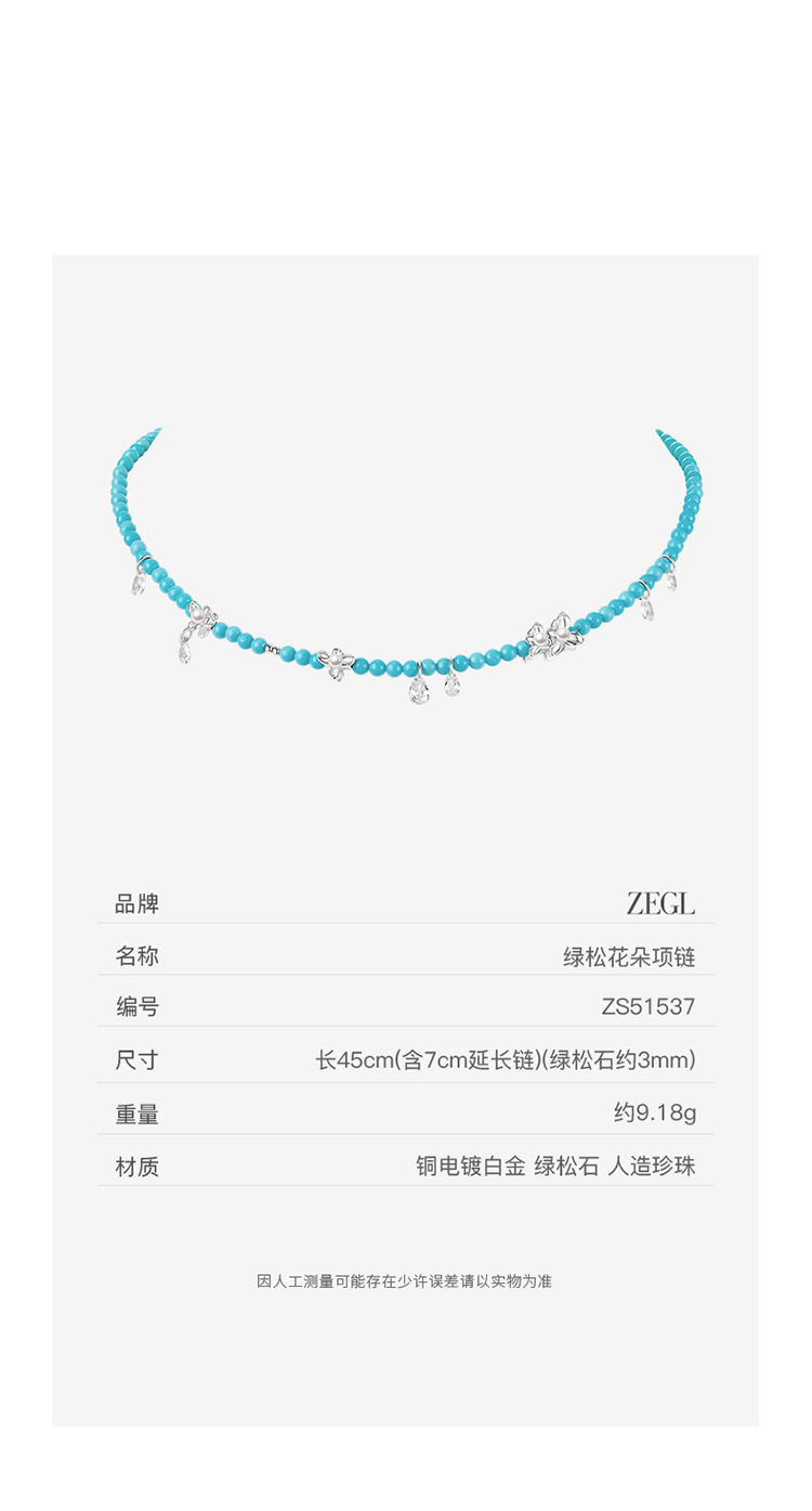 ZEGL真柳设计师只此青绿系列绿松石项链女2025新款锁骨链春夏配饰