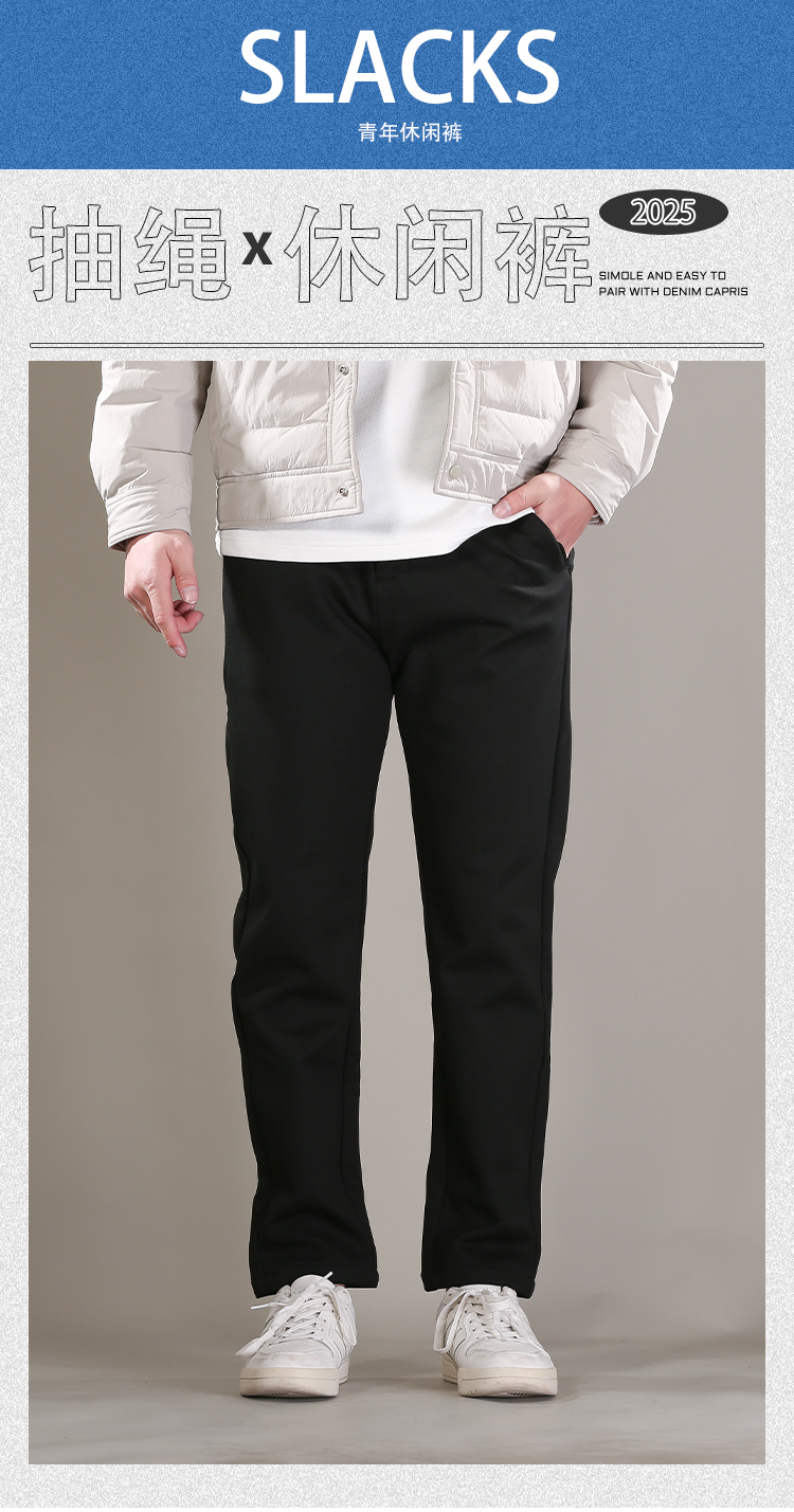 DRONKOO 2025 正常腰左袋绣线织唛复合绒基础款厚休闲长裤