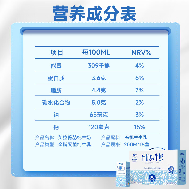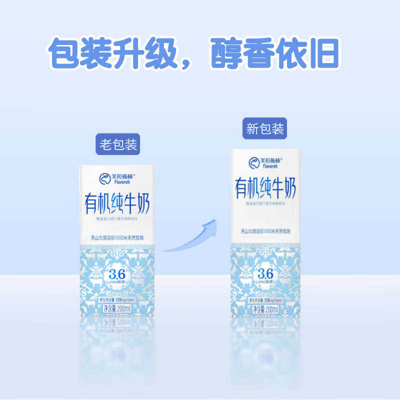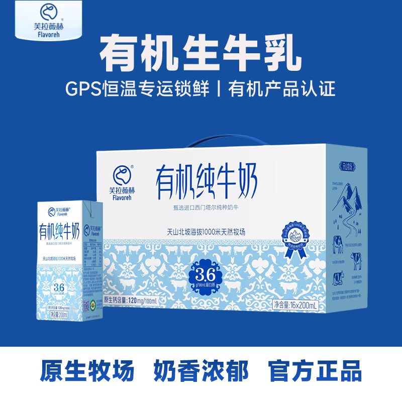 【严选】【专属黄金牧场 有机生牛乳 3.6g蛋白质】芙拉薇赫有机纯牛奶 奶香浓郁 每一滴都天然纯净200ml*16盒