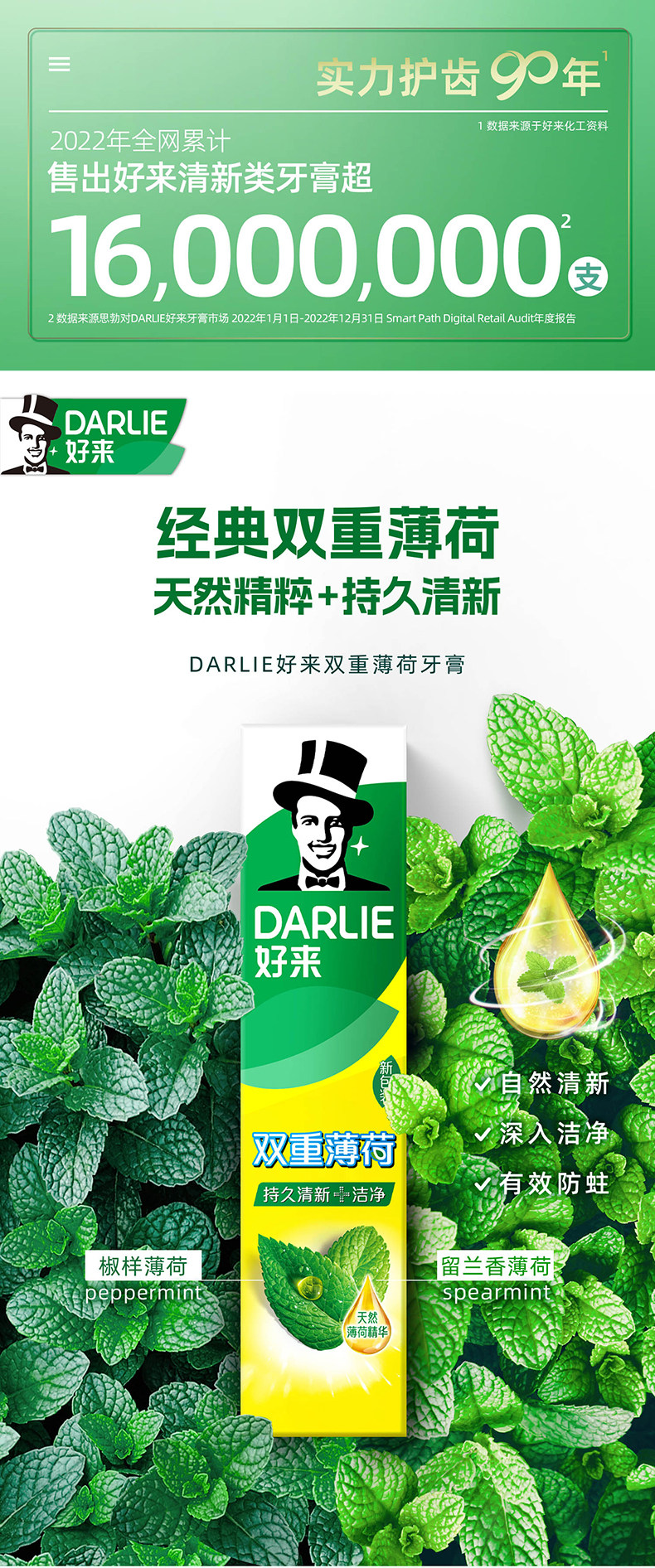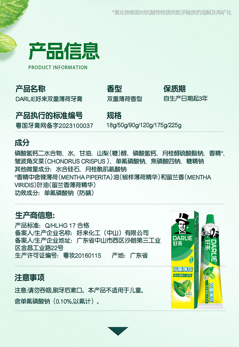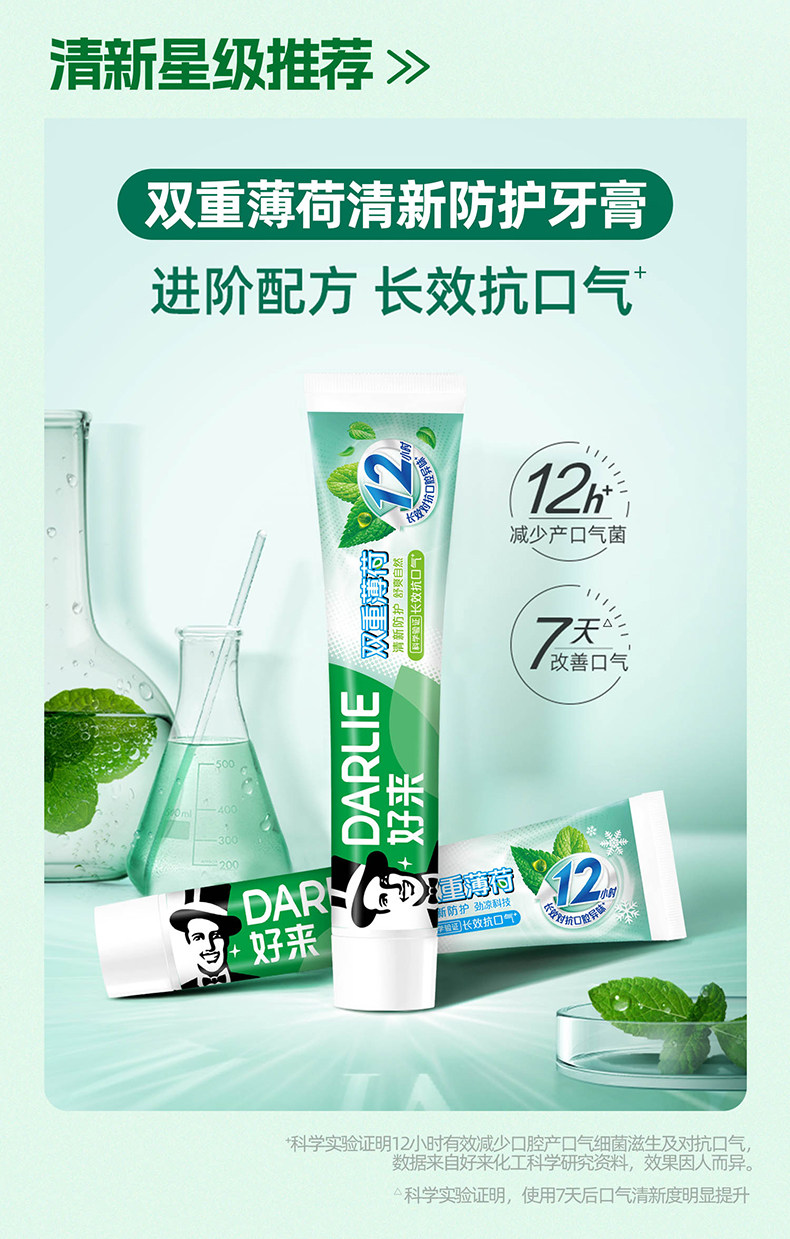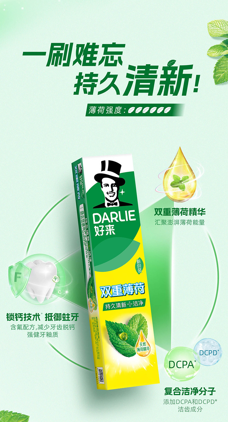 DARLIE好来(原黑人)牙膏双重薄荷家庭用套装天然植萃清新口气120g*3支