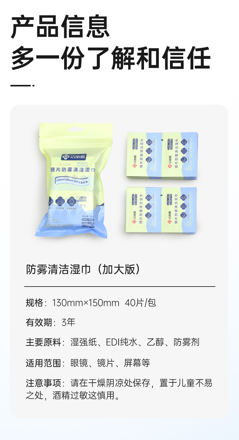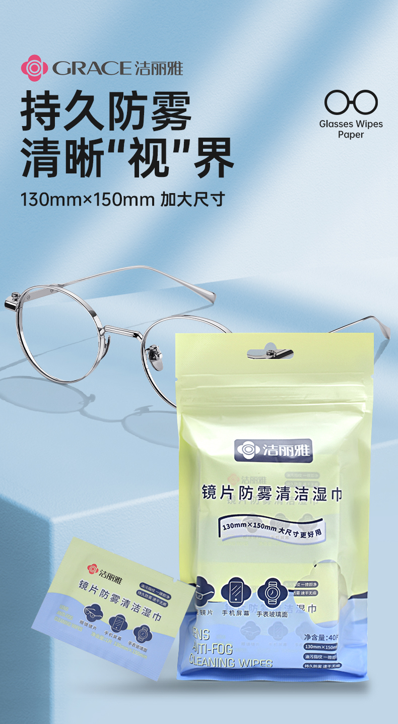 洁丽雅眼镜布清洁防雾专用湿纸一次性镜片擦镜头手机不伤镜片