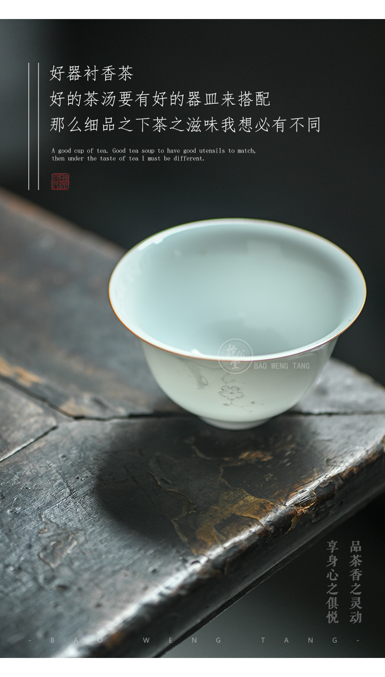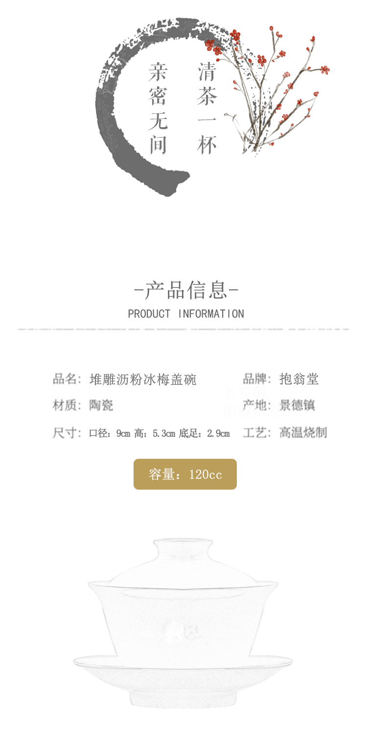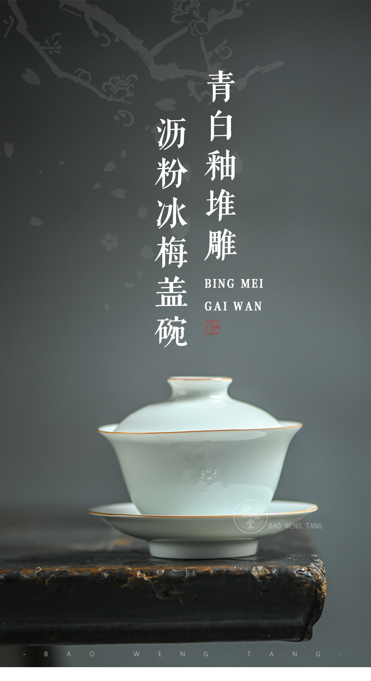 抱翁堂 青白釉雕刻冰梅盖碗 120ml 口径9cm 高5.3cm 底足2.9cm