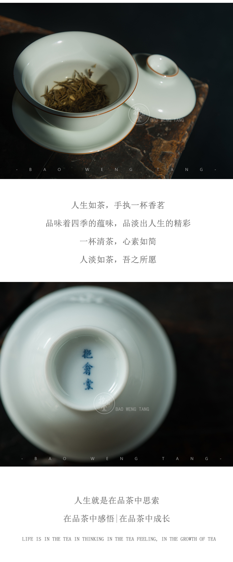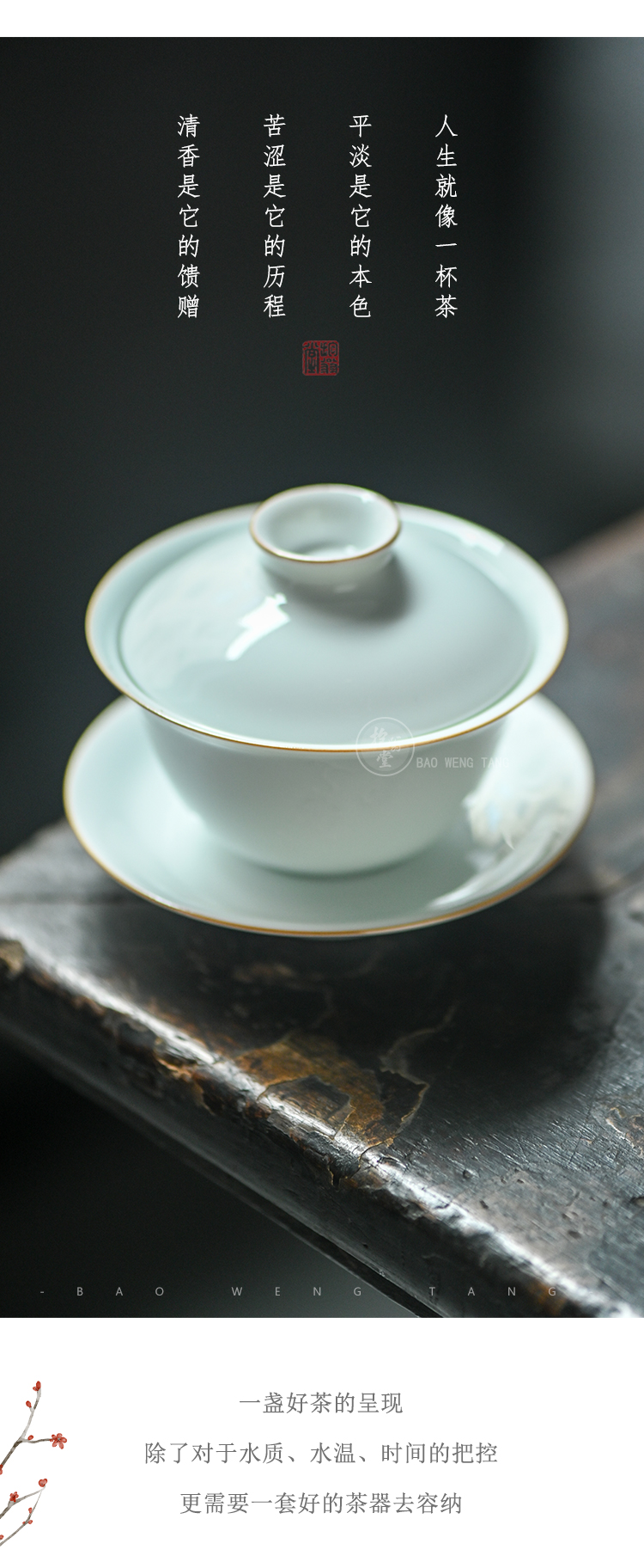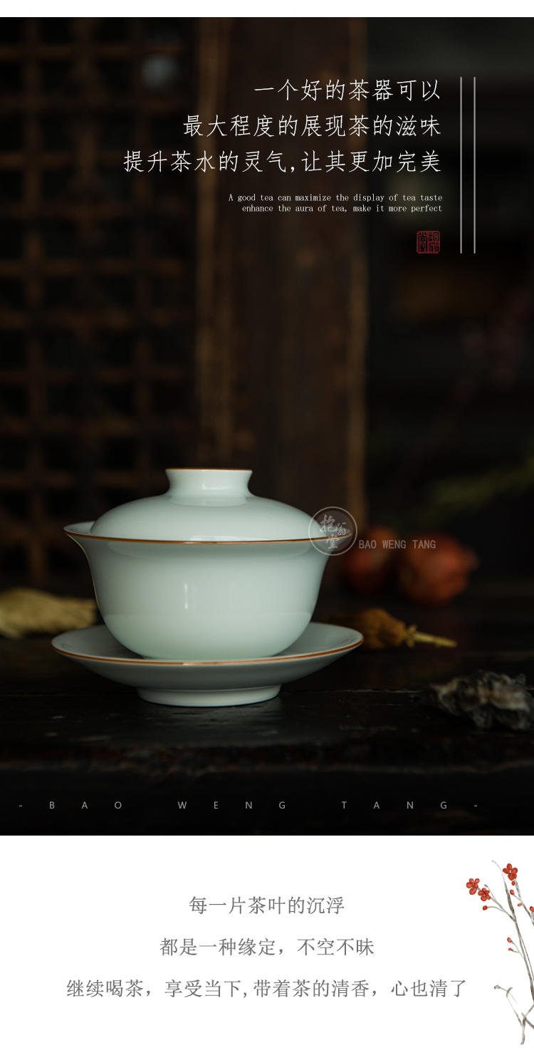 抱翁堂 青白釉雕刻冰梅盖碗 120ml 口径9cm 高5.3cm 底足2.9cm