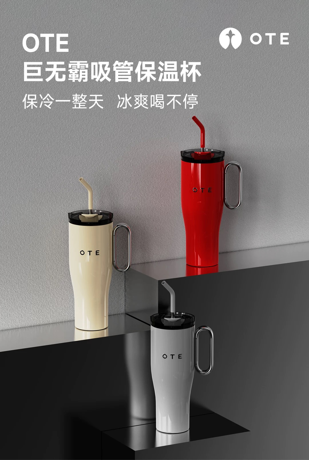 OTE/欧堤巨无霸水杯欧堤大容量水杯保冷冰霸杯吸管水杯咖啡杯316钢