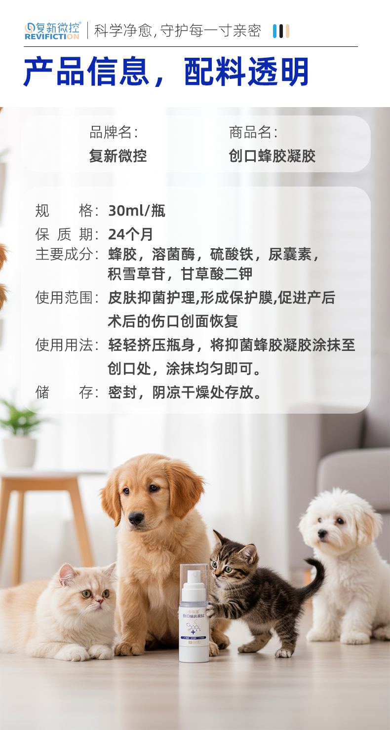 复新微控-创愈凝30ml/盒宠物猫狗抑菌蜂胶凝胶消毒消炎无害