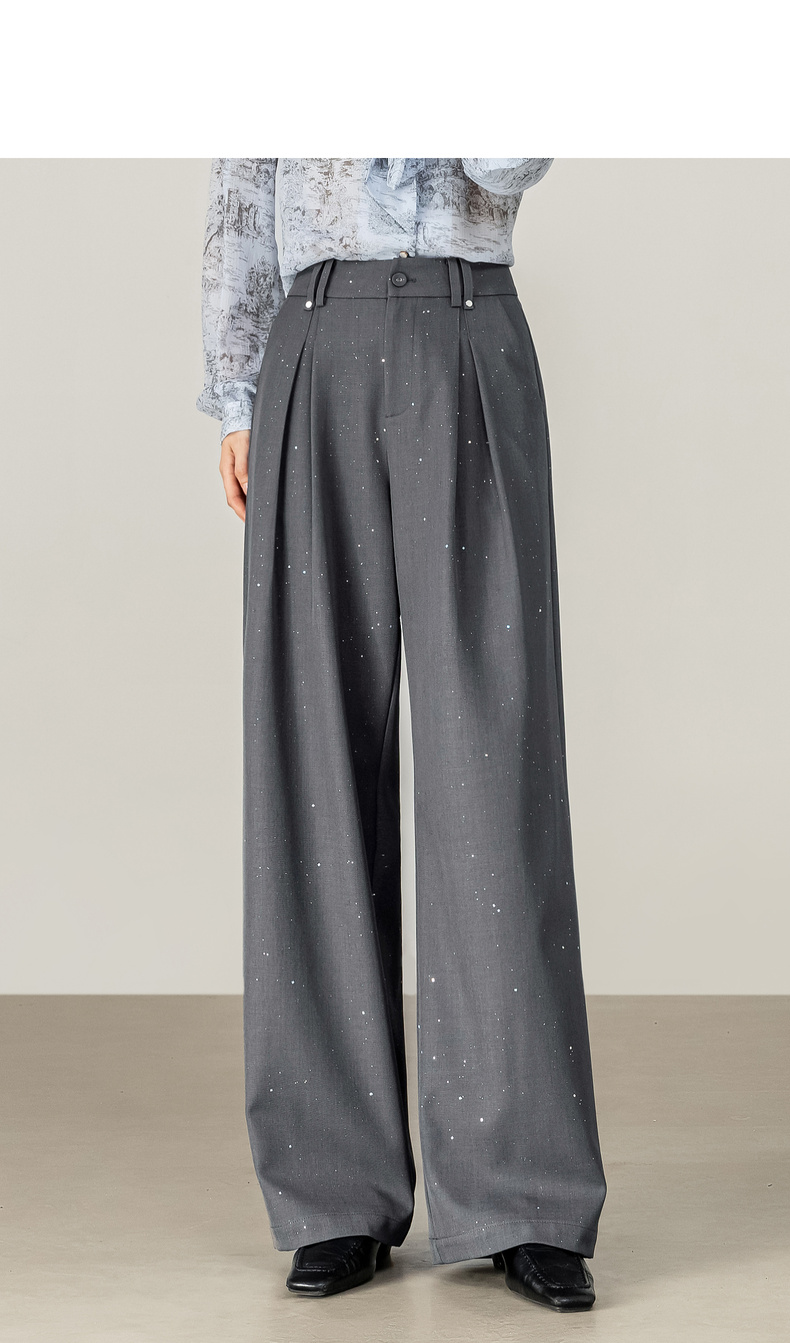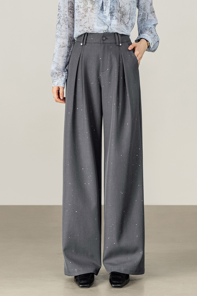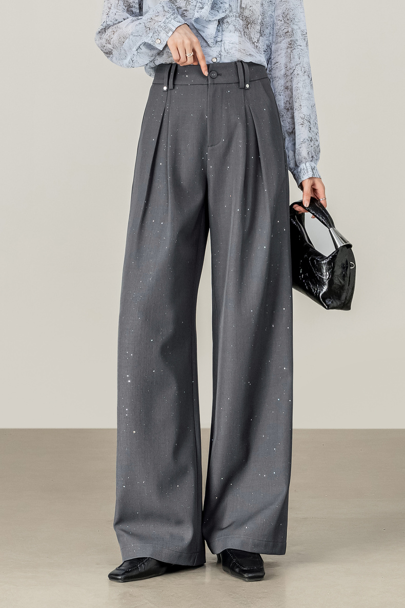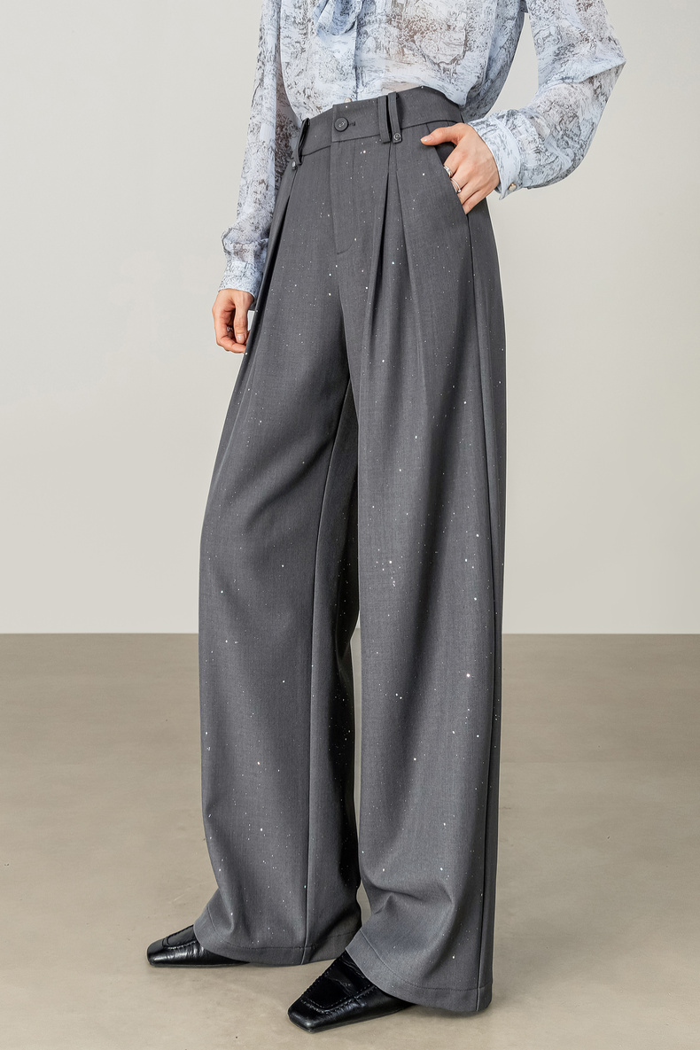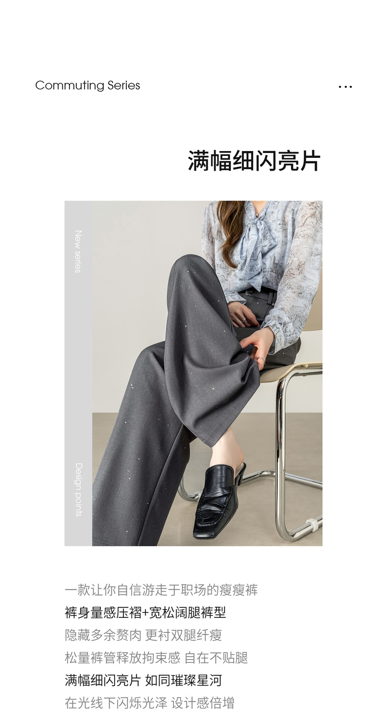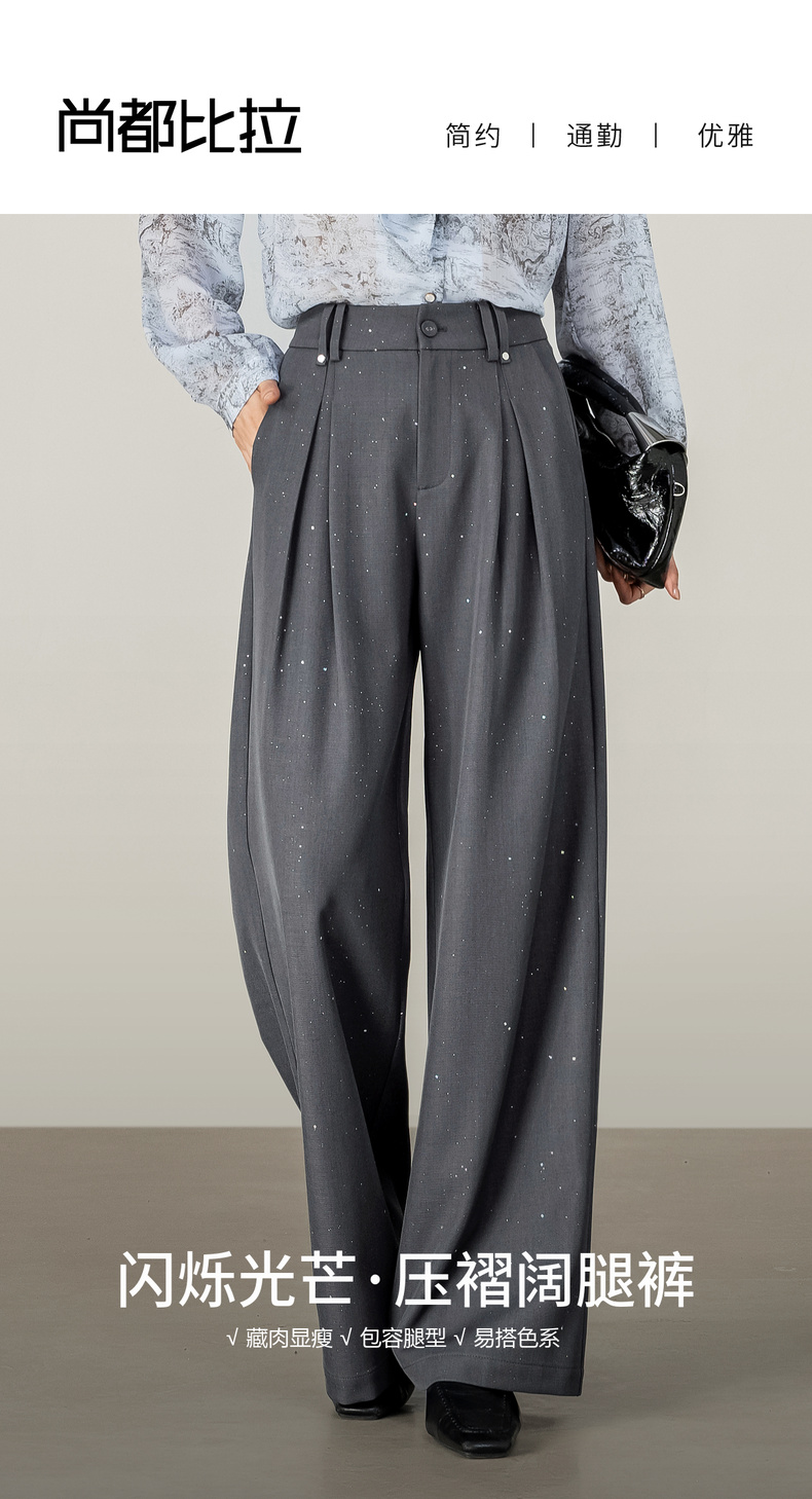 【内购】【遮肉显瘦】都市通勤梨型身材立体压褶细闪亮片宽松显瘦阔腿长裤-153K80519