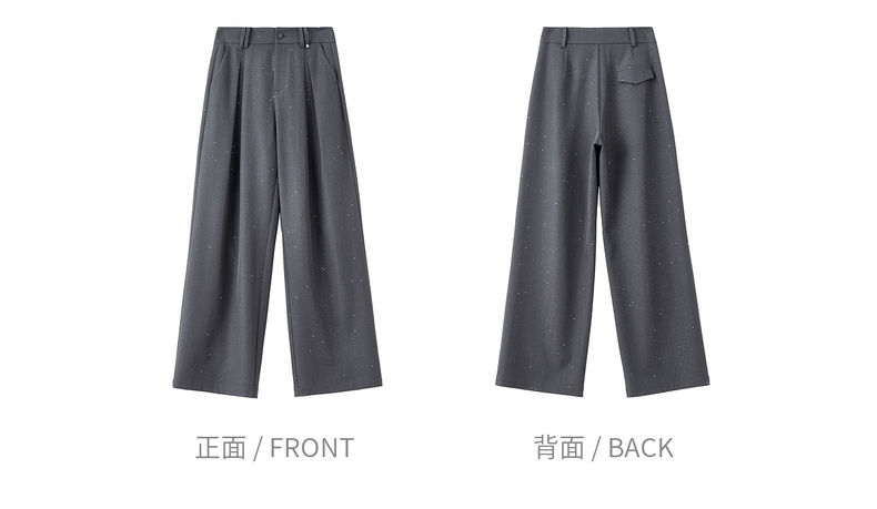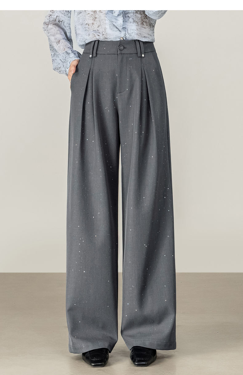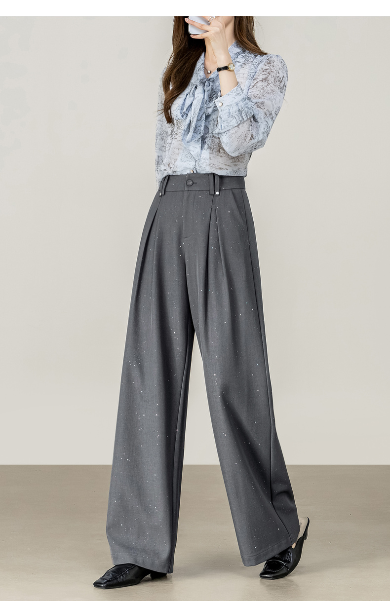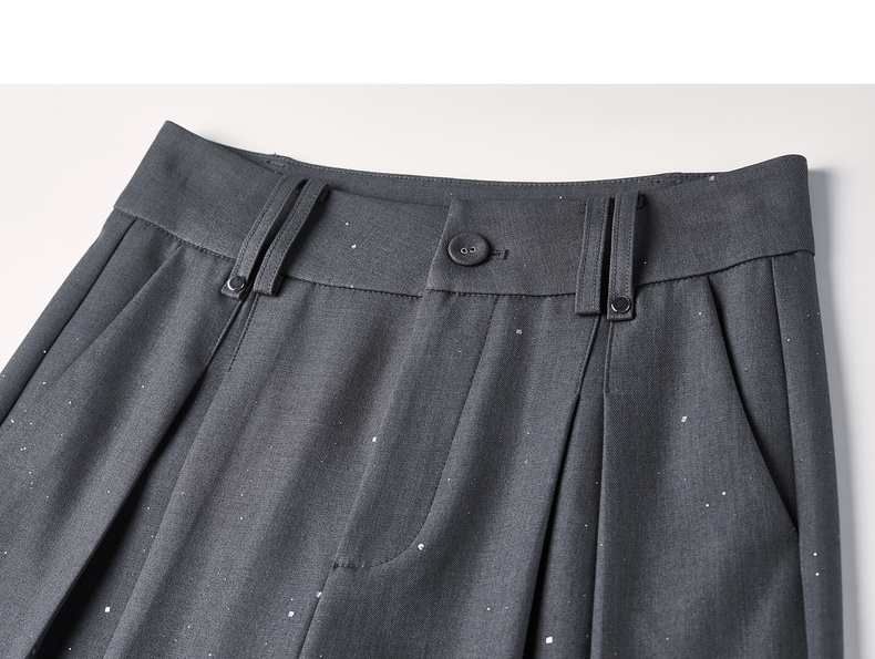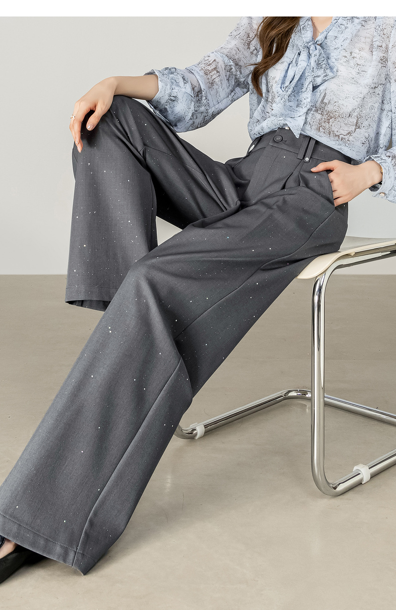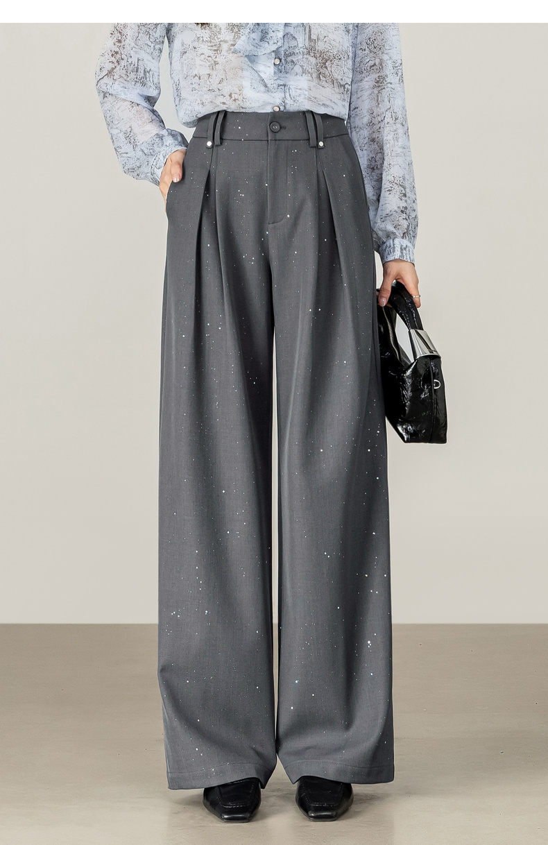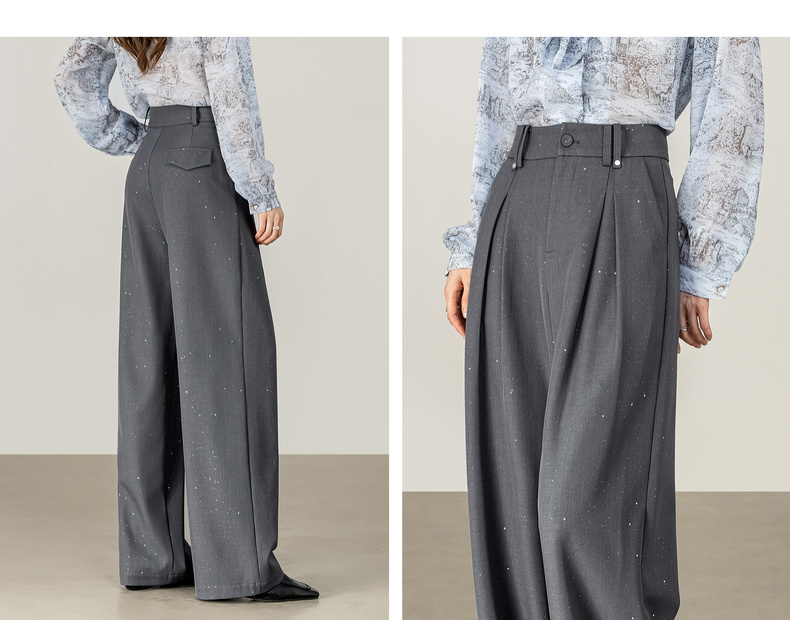 【内购】【遮肉显瘦】都市通勤梨型身材立体压褶细闪亮片宽松显瘦阔腿长裤-153K80519