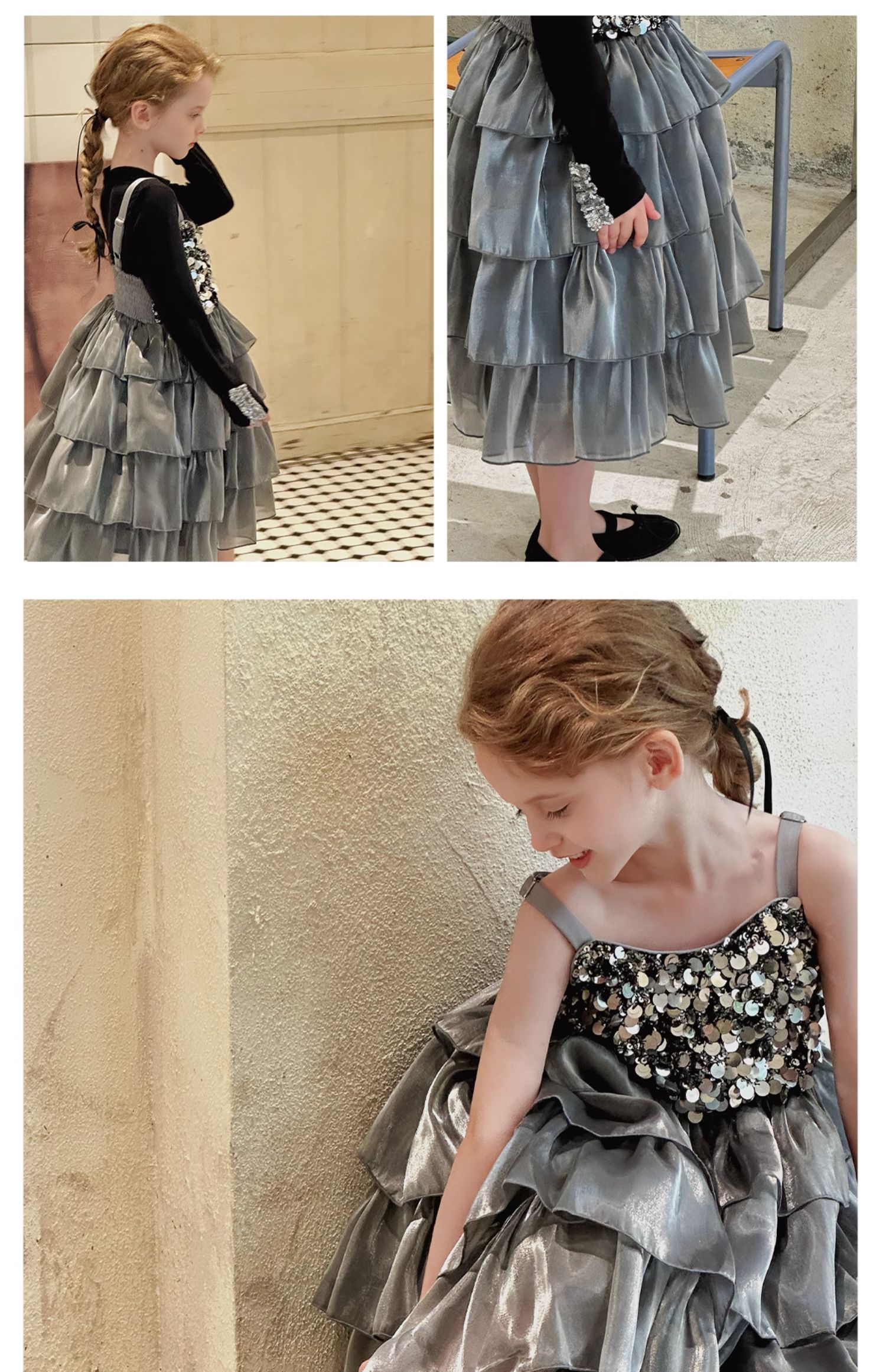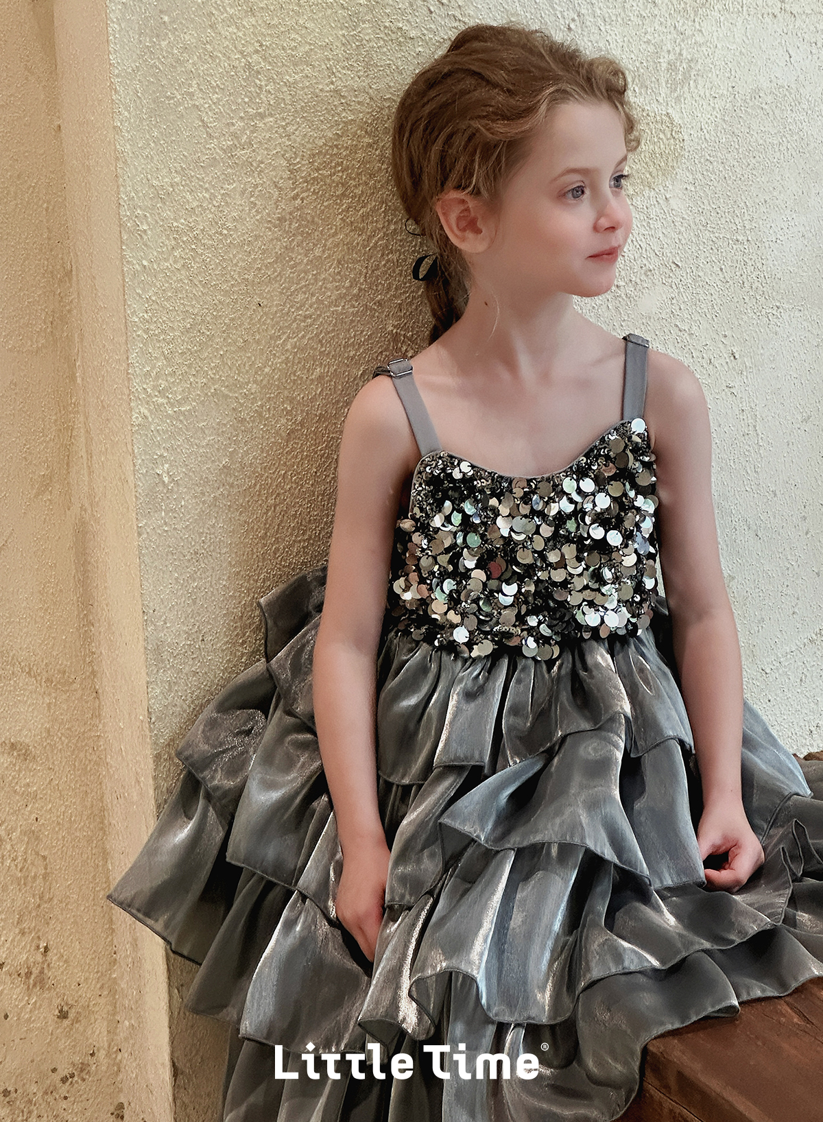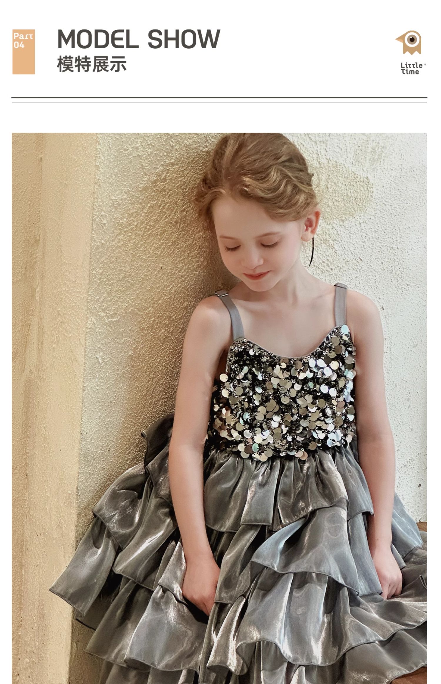 Little time女童连衣裙夏装2025新款女孩亮片礼服公主裙吊带裙