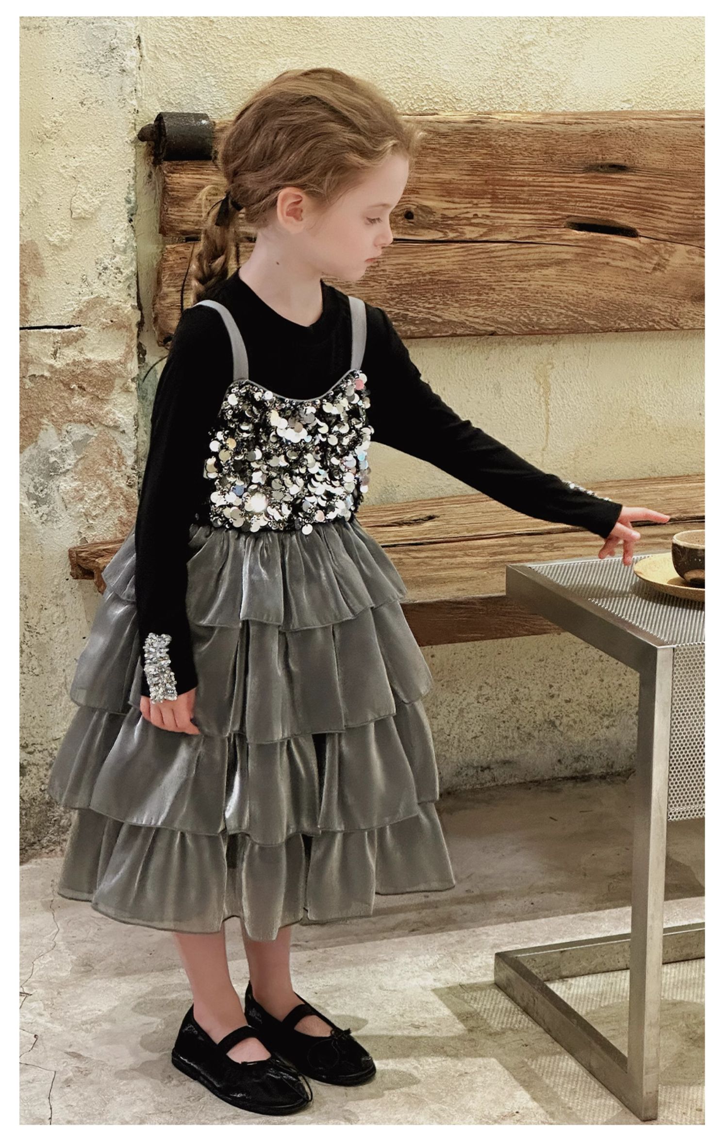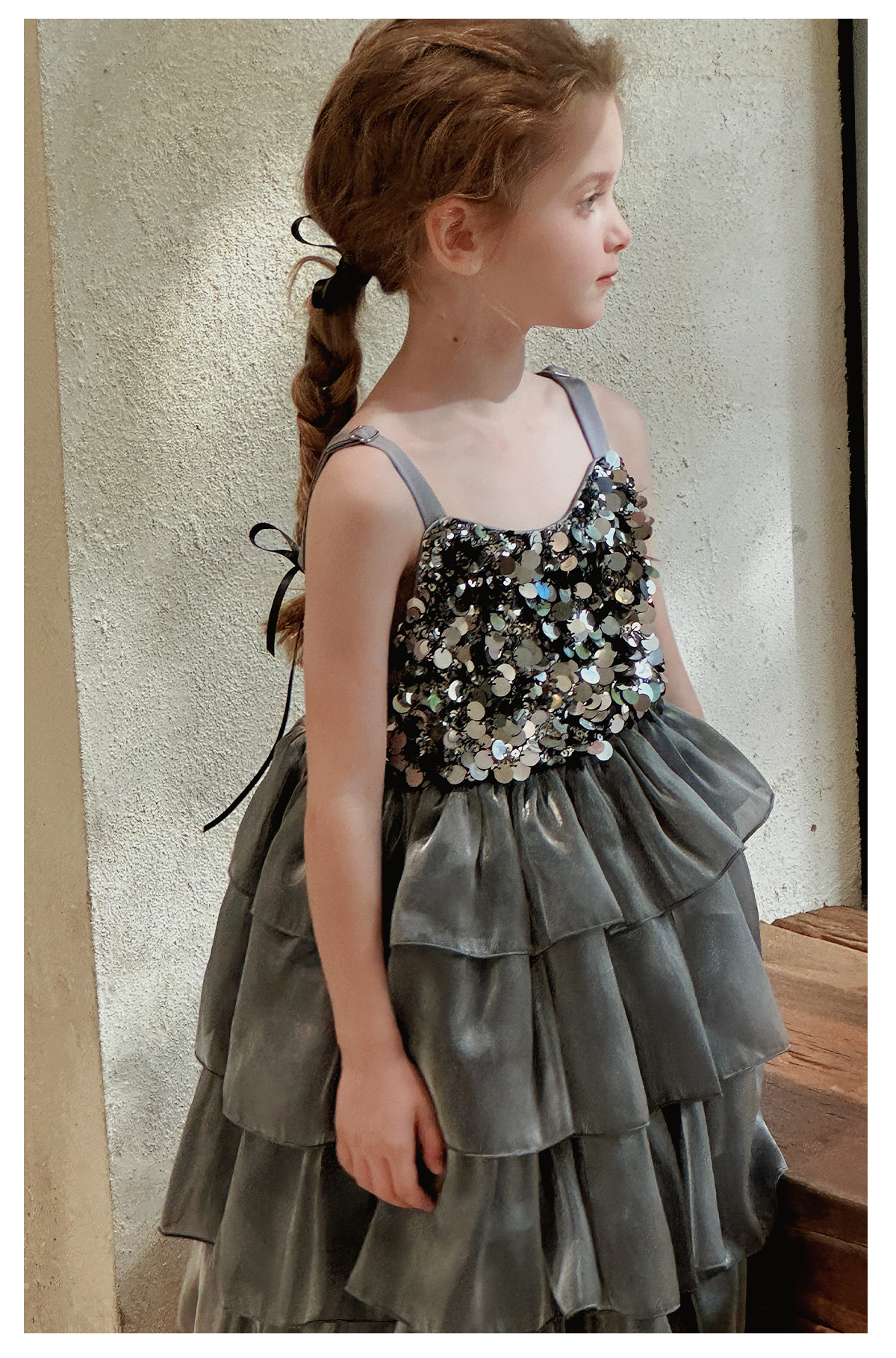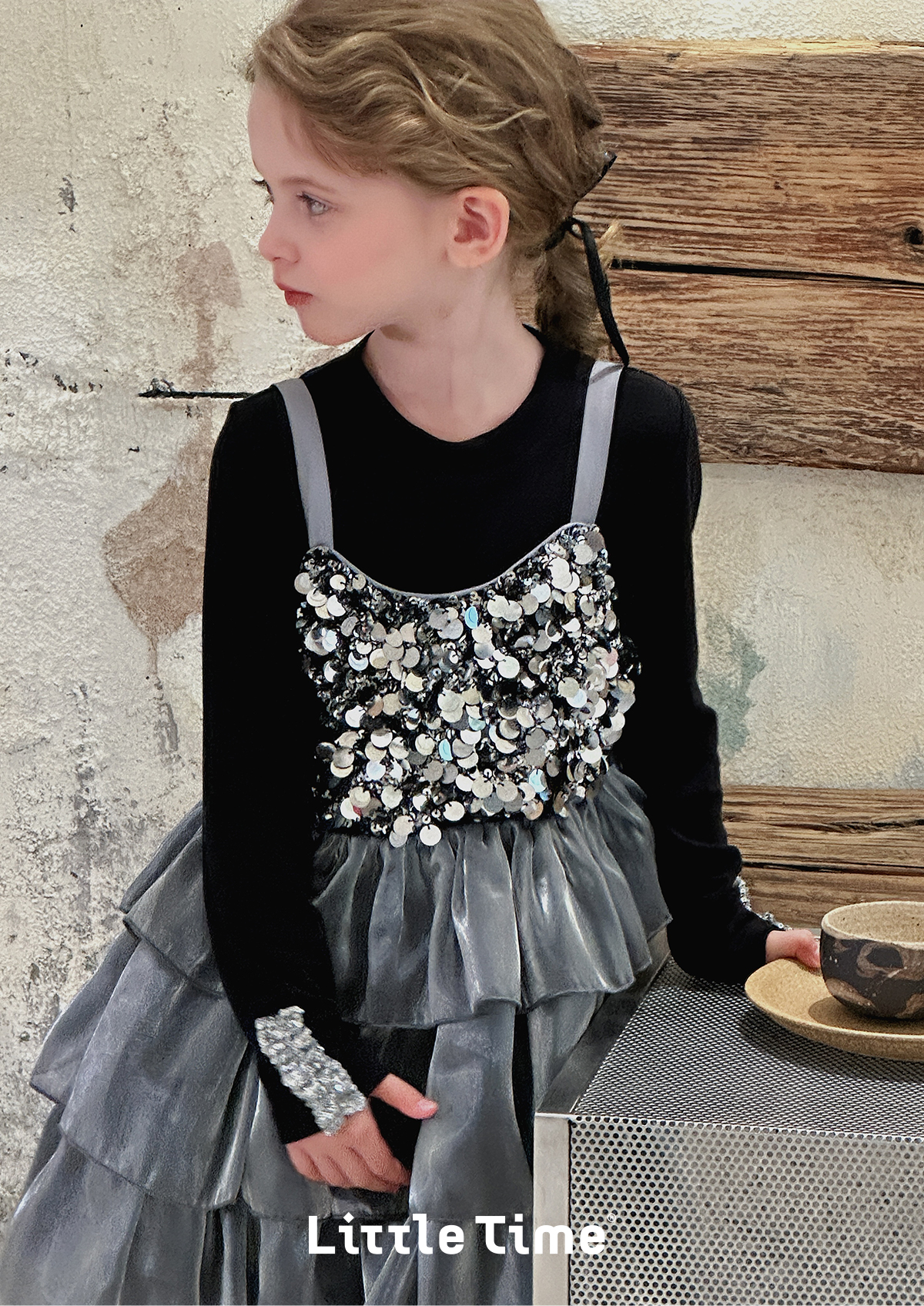 Little time女童连衣裙夏装2025新款女孩亮片礼服公主裙吊带裙