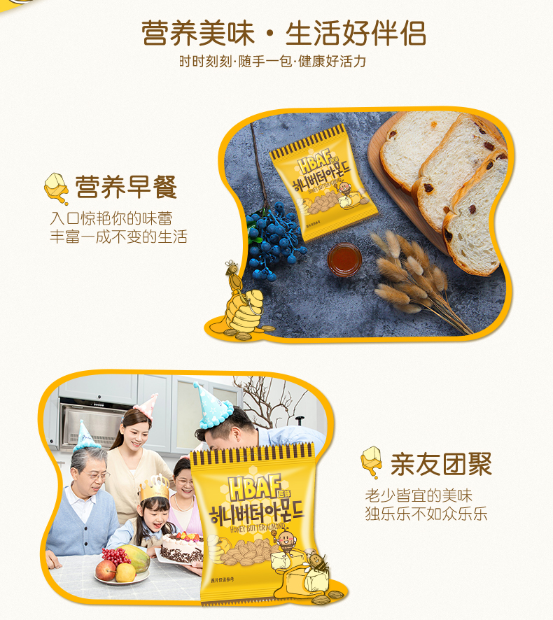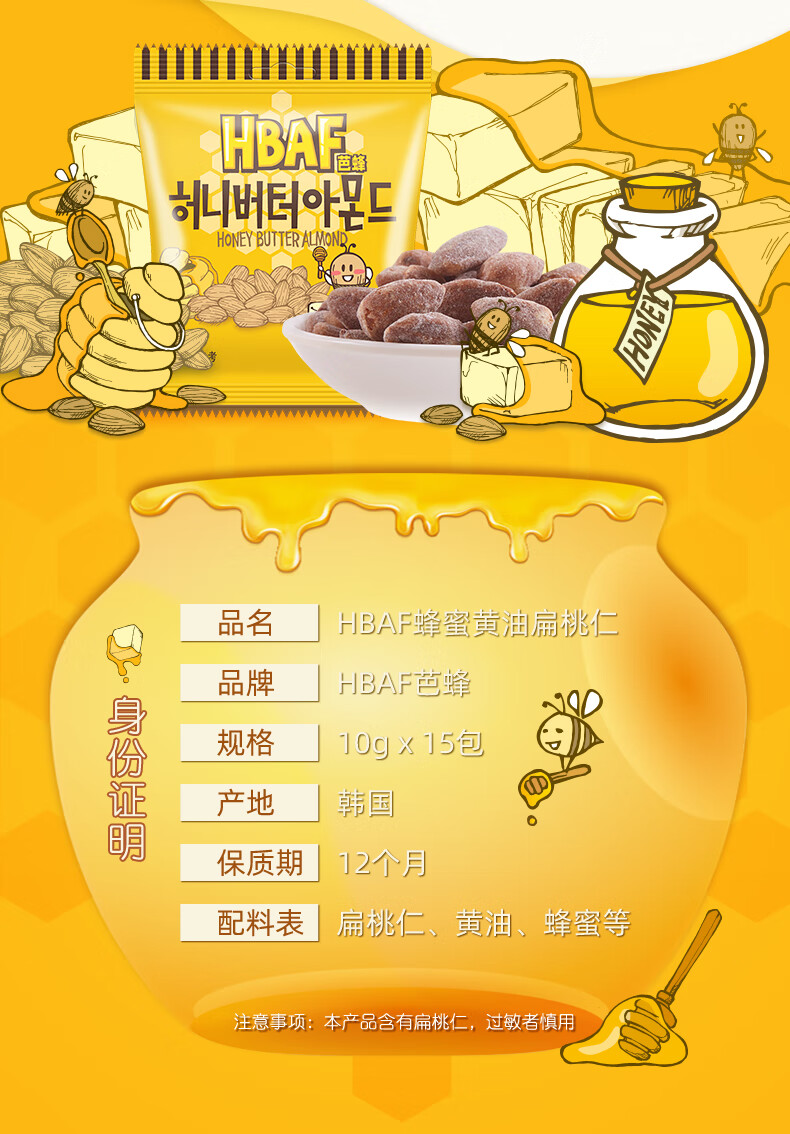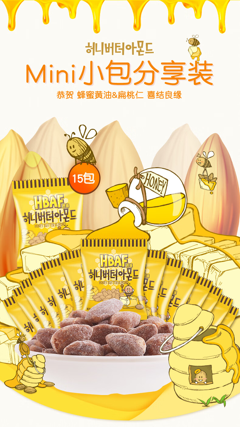 韩国芭蜂蜂蜜黄油扁桃仁15连包装150g/150402 精选大颗扁桃仁体会浓郁的果仁香味