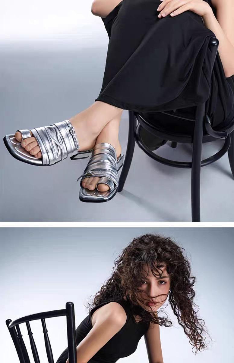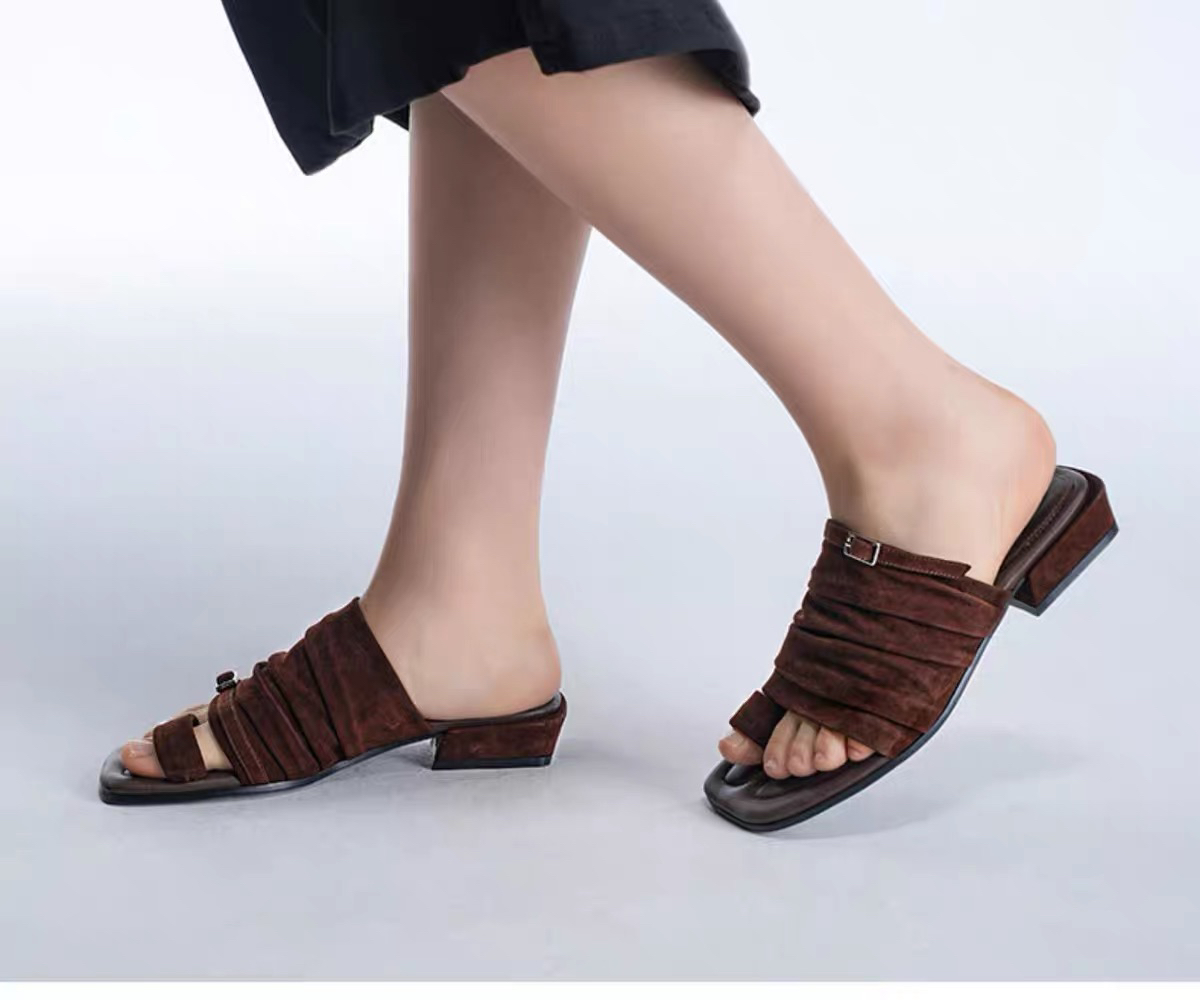分趾褶皱拖鞋