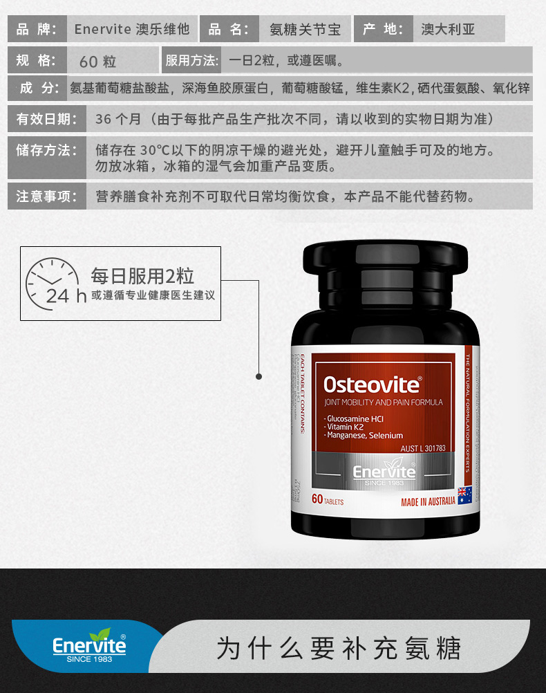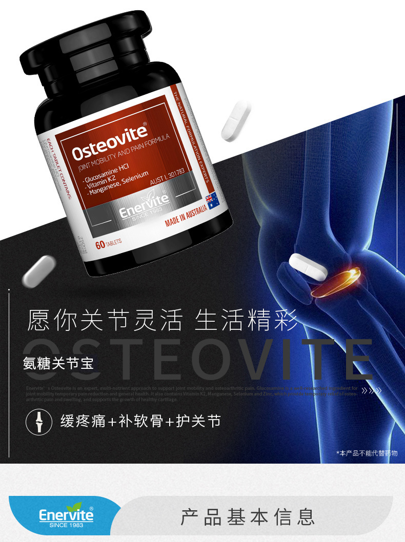 Enervite澳乐维他氨糖关节宝 60粒/瓶(26年7月份到期,介意慎拍)