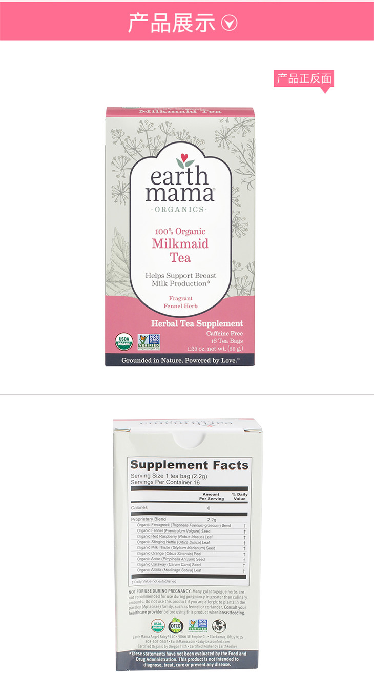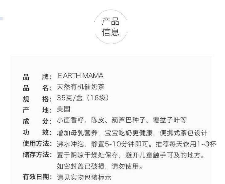 【保税仓】Earth Mama Angel Baby 天然有机催奶茶叶 追奶茶 35g*16袋 商品图0