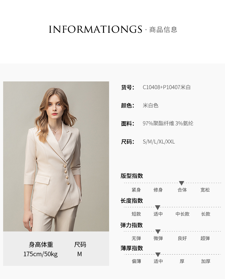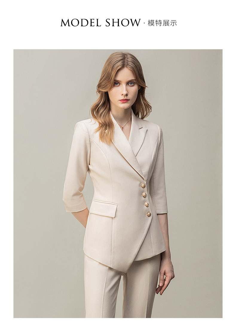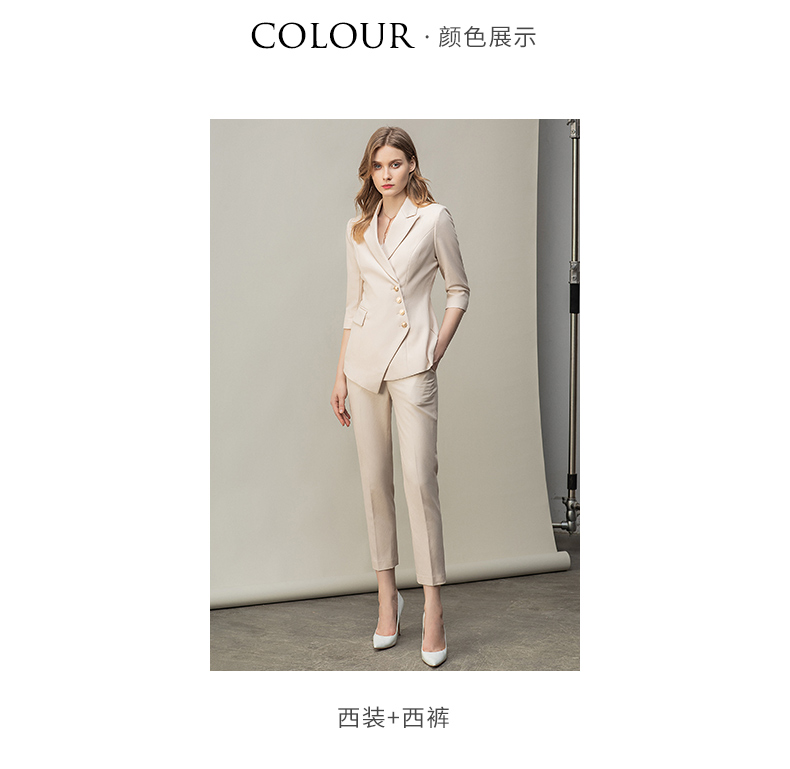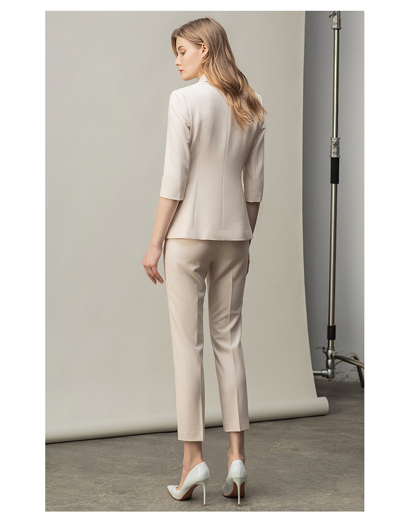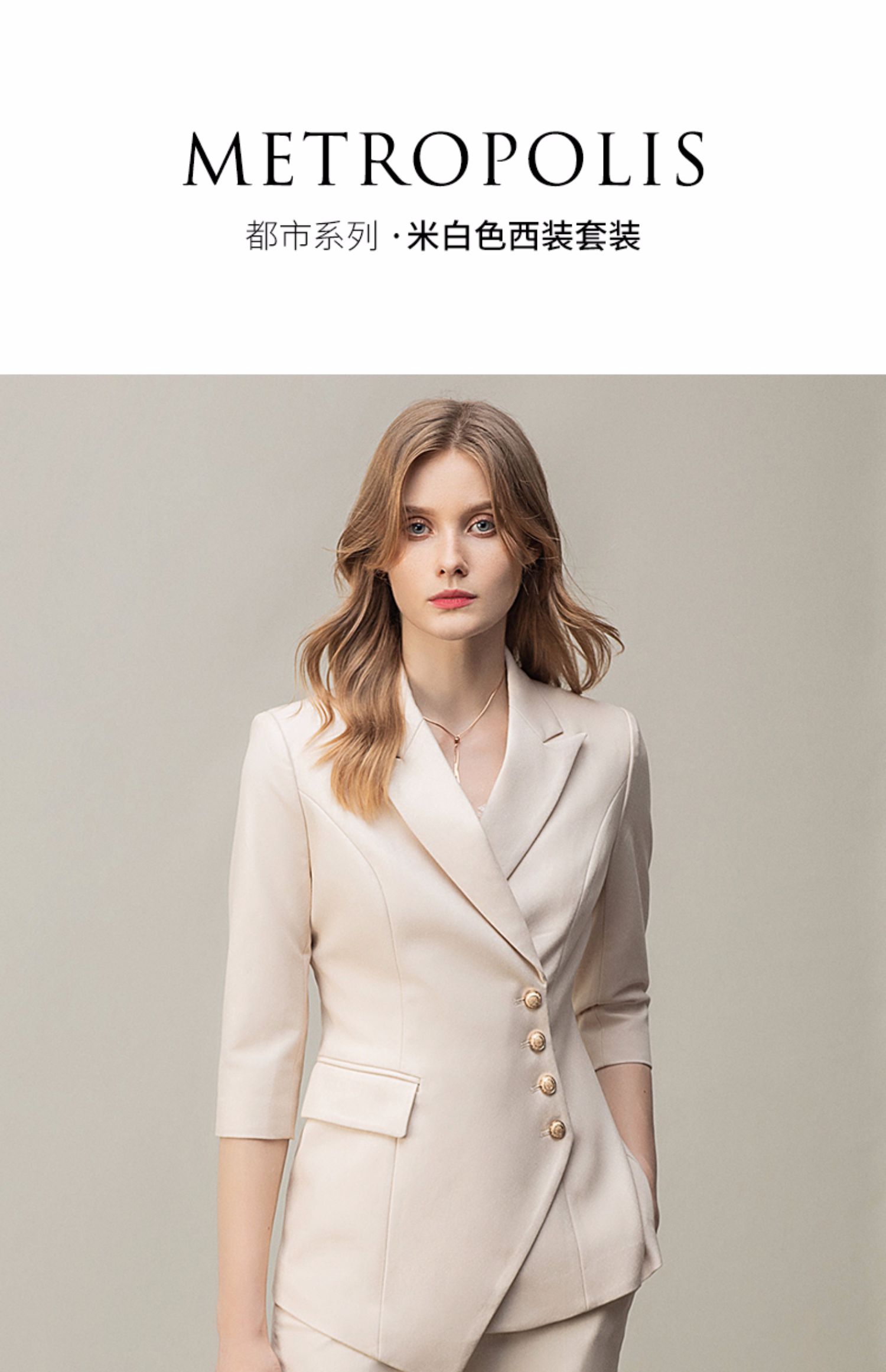 IWY/米白时尚套装女职业装收腰西装五分袖休闲通勤套裤职场商务风 C10408+P10407米白