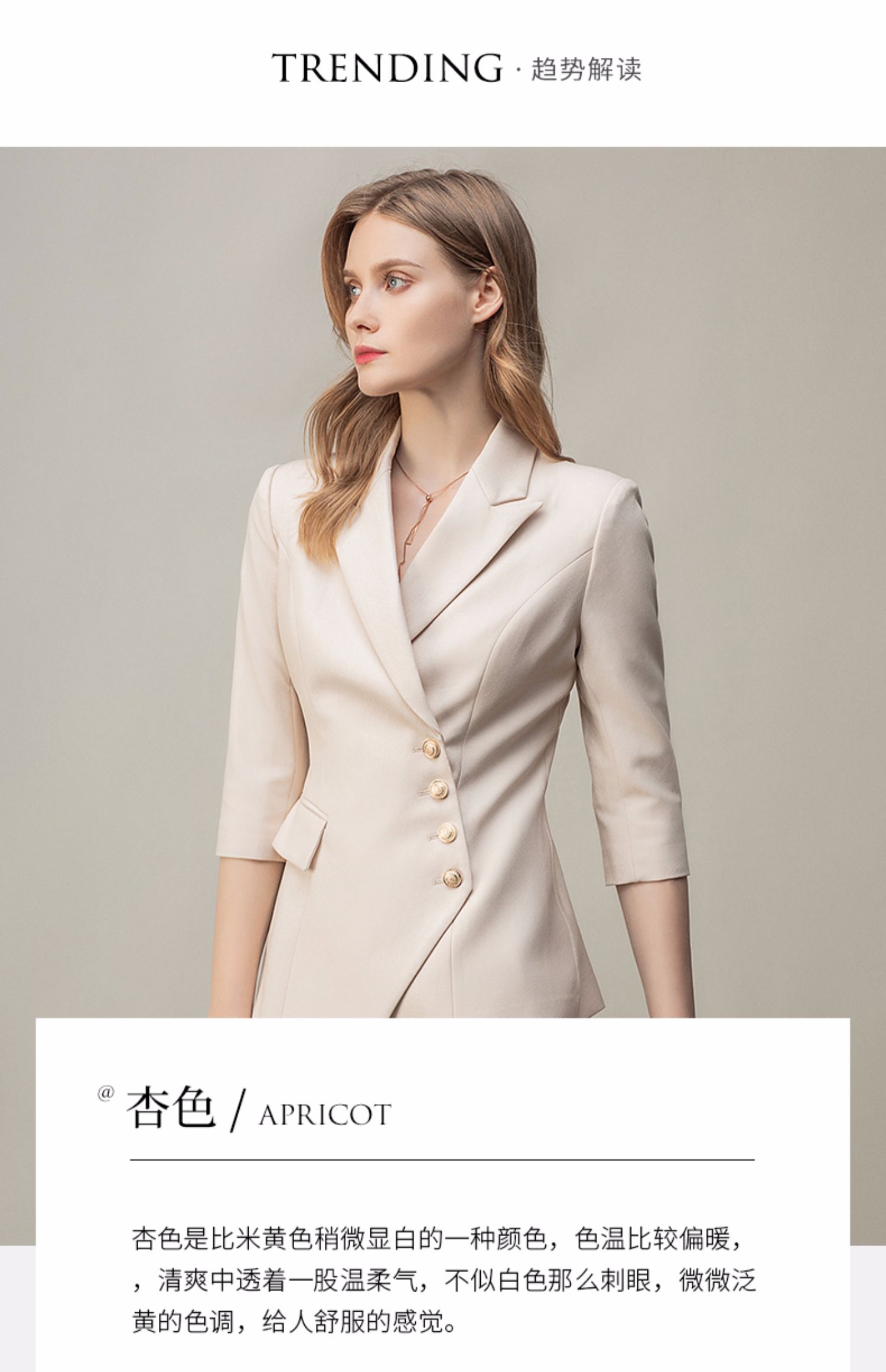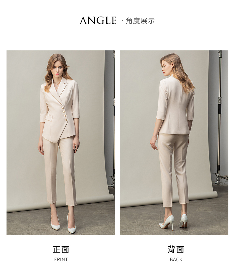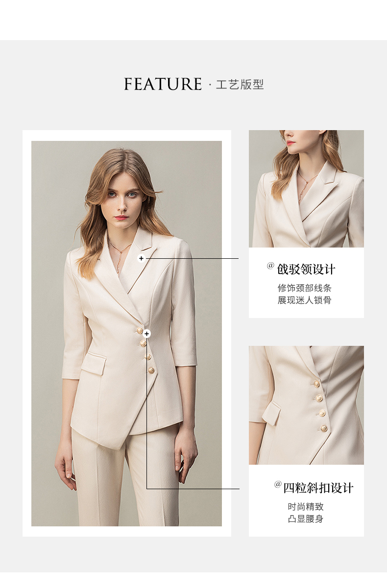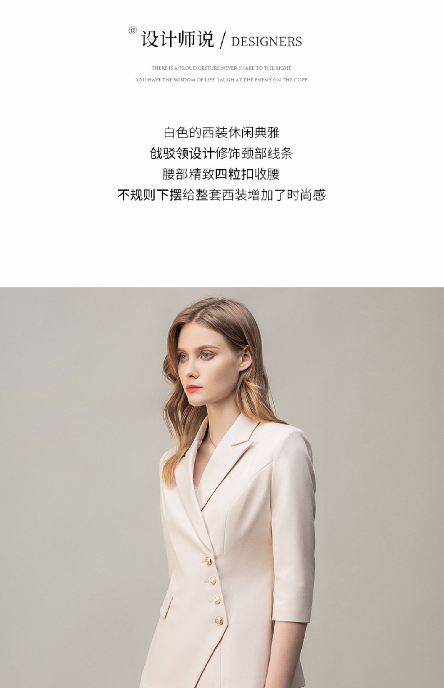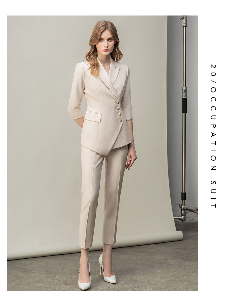 IWY/米白时尚套装女职业装收腰西装五分袖休闲通勤套裤职场商务风 C10408+P10407米白