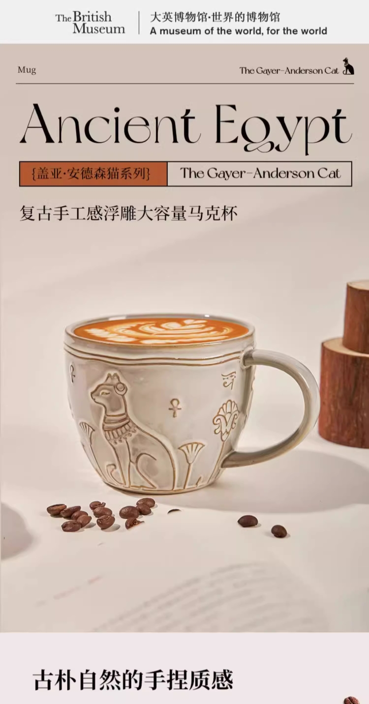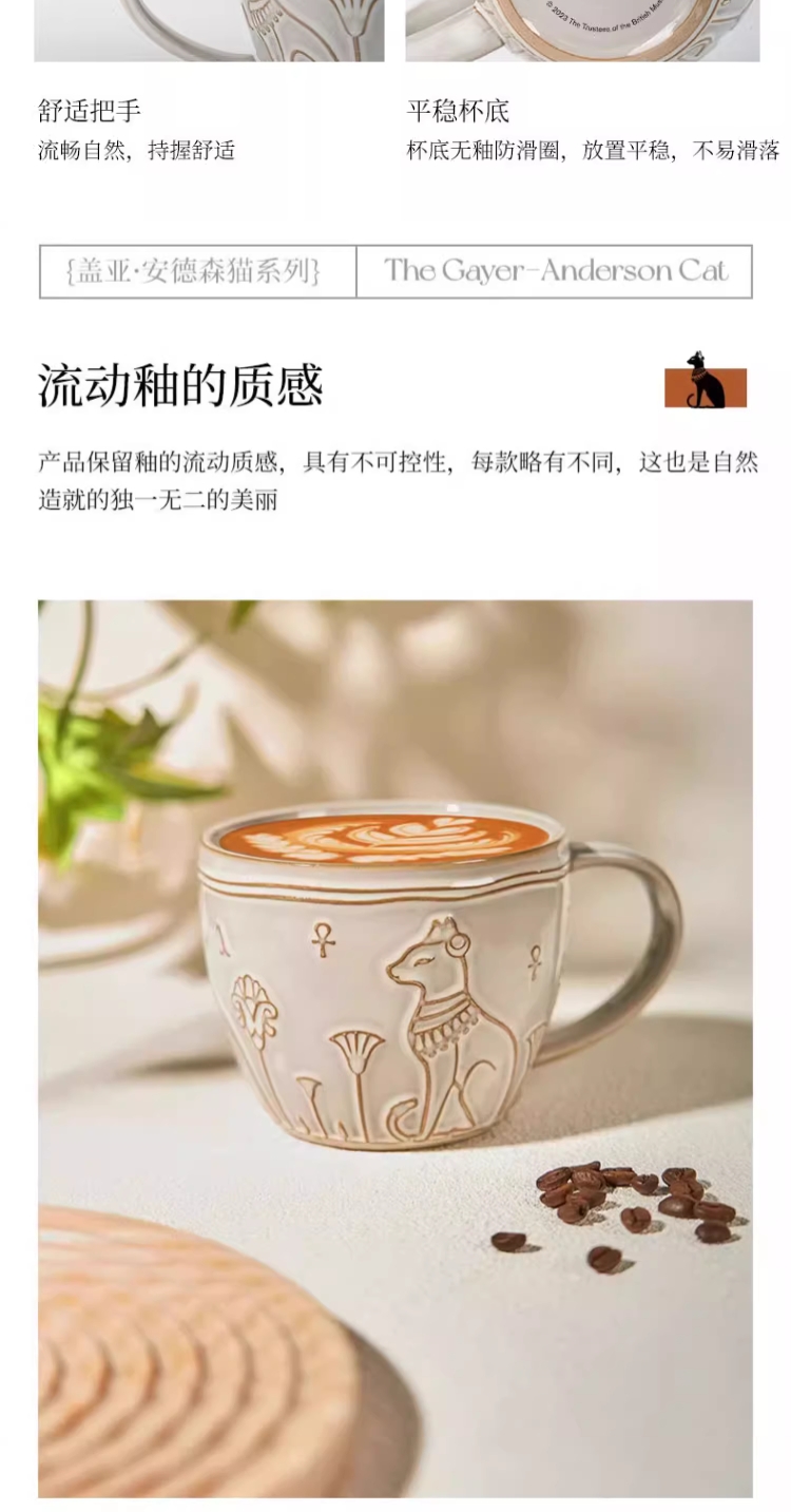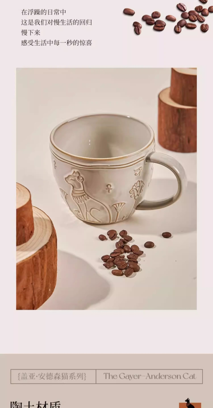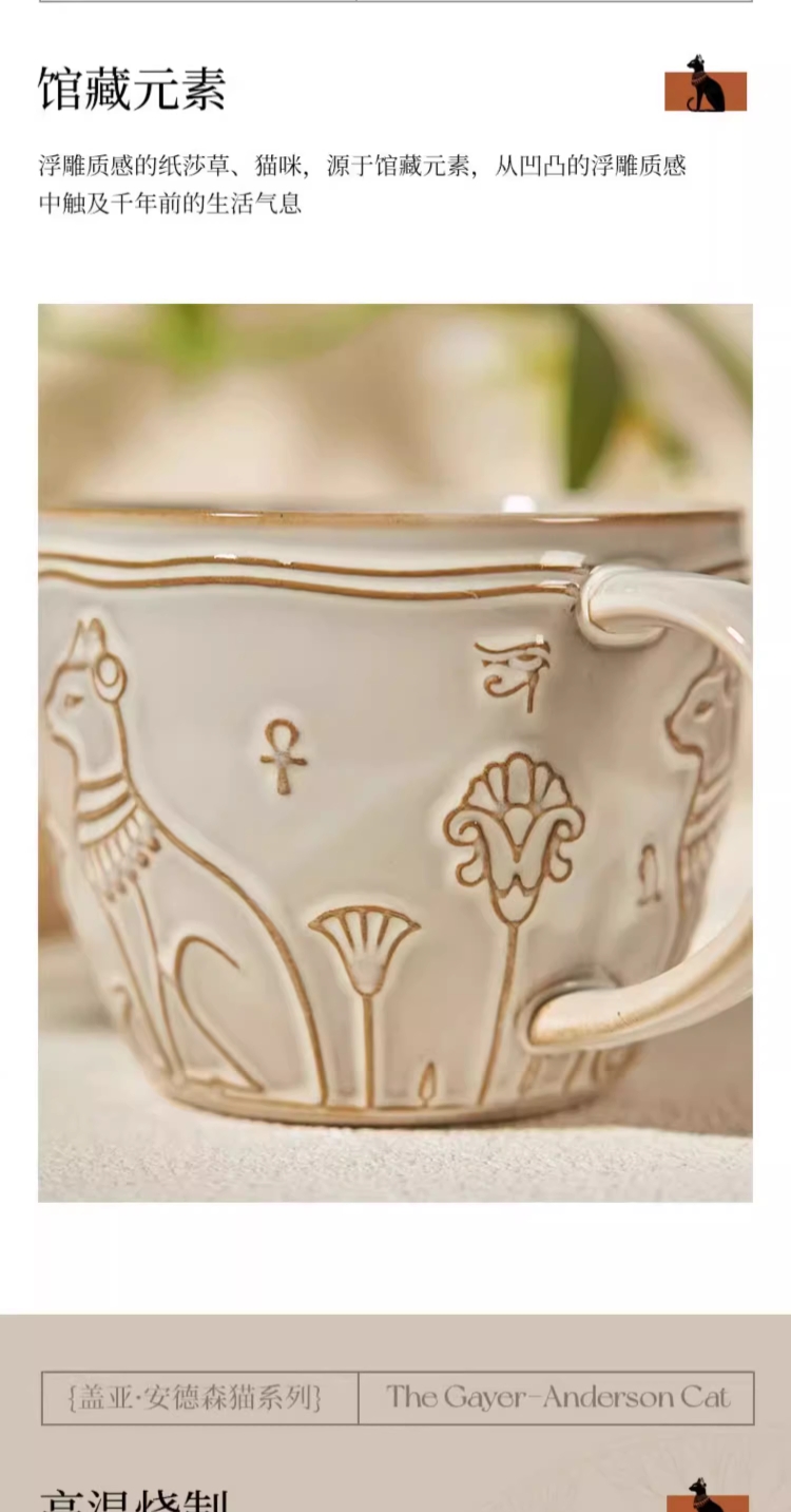 大英博物馆 盖亚·安德森猫系列 复古手工感浮雕大容量马克杯500ml