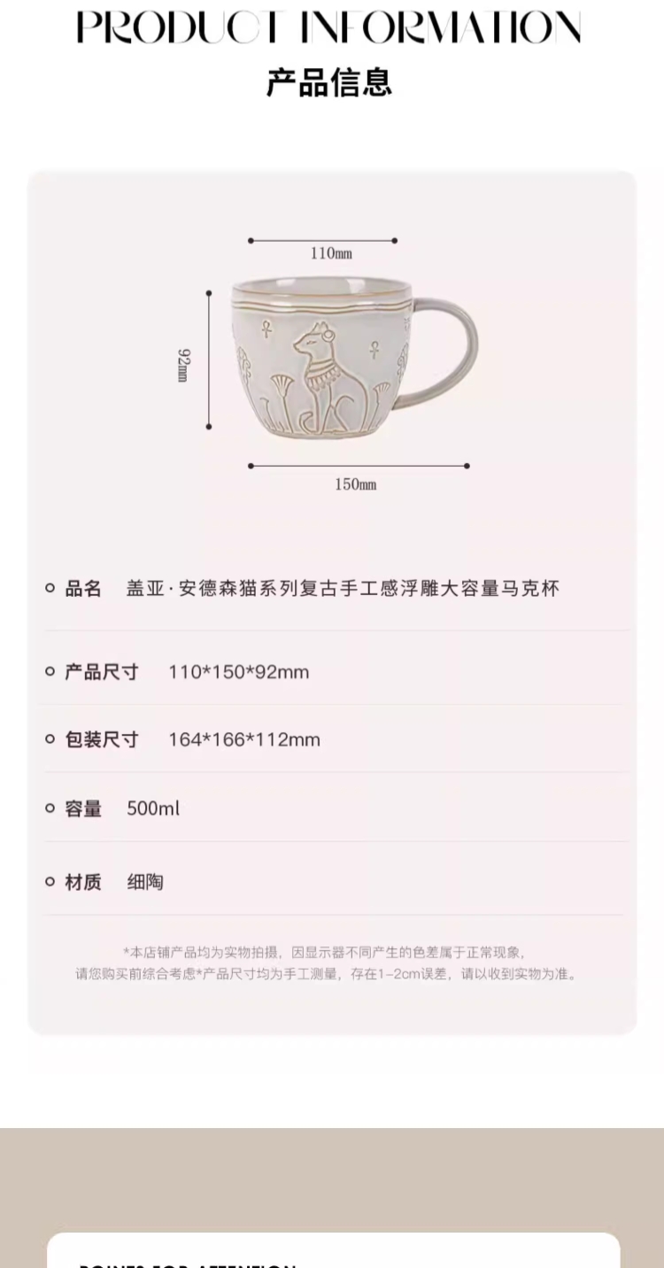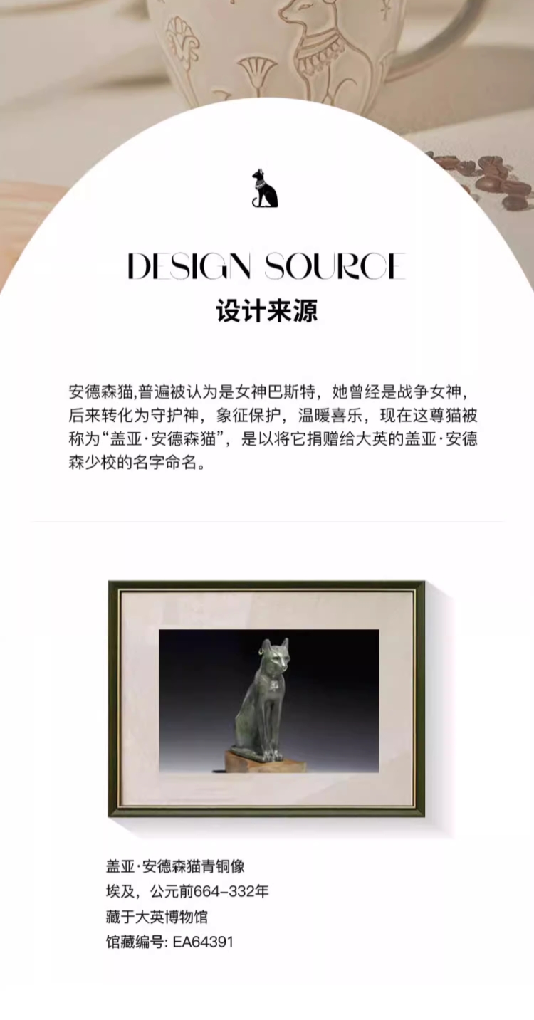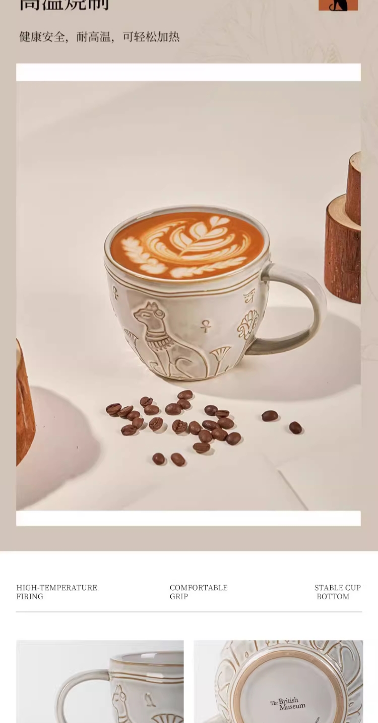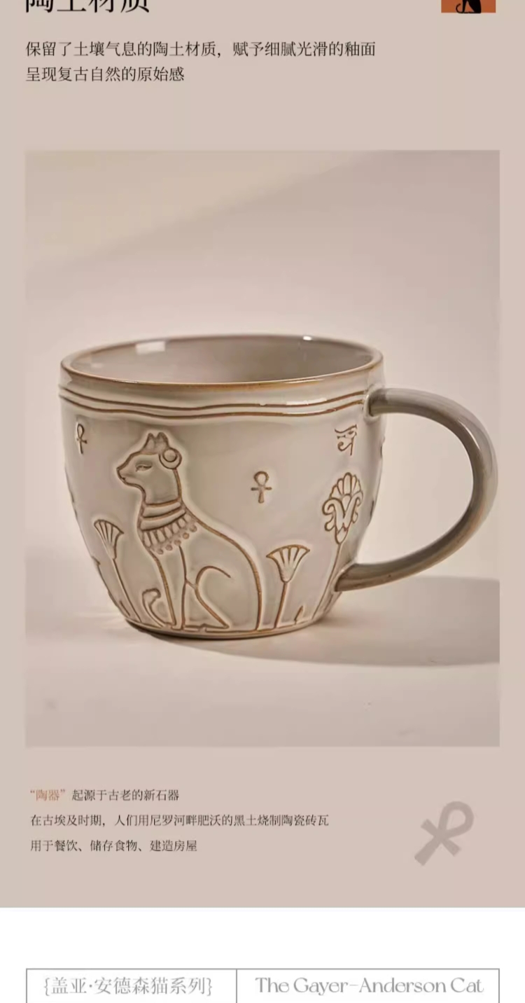 大英博物馆 盖亚·安德森猫系列 复古手工感浮雕大容量马克杯500ml