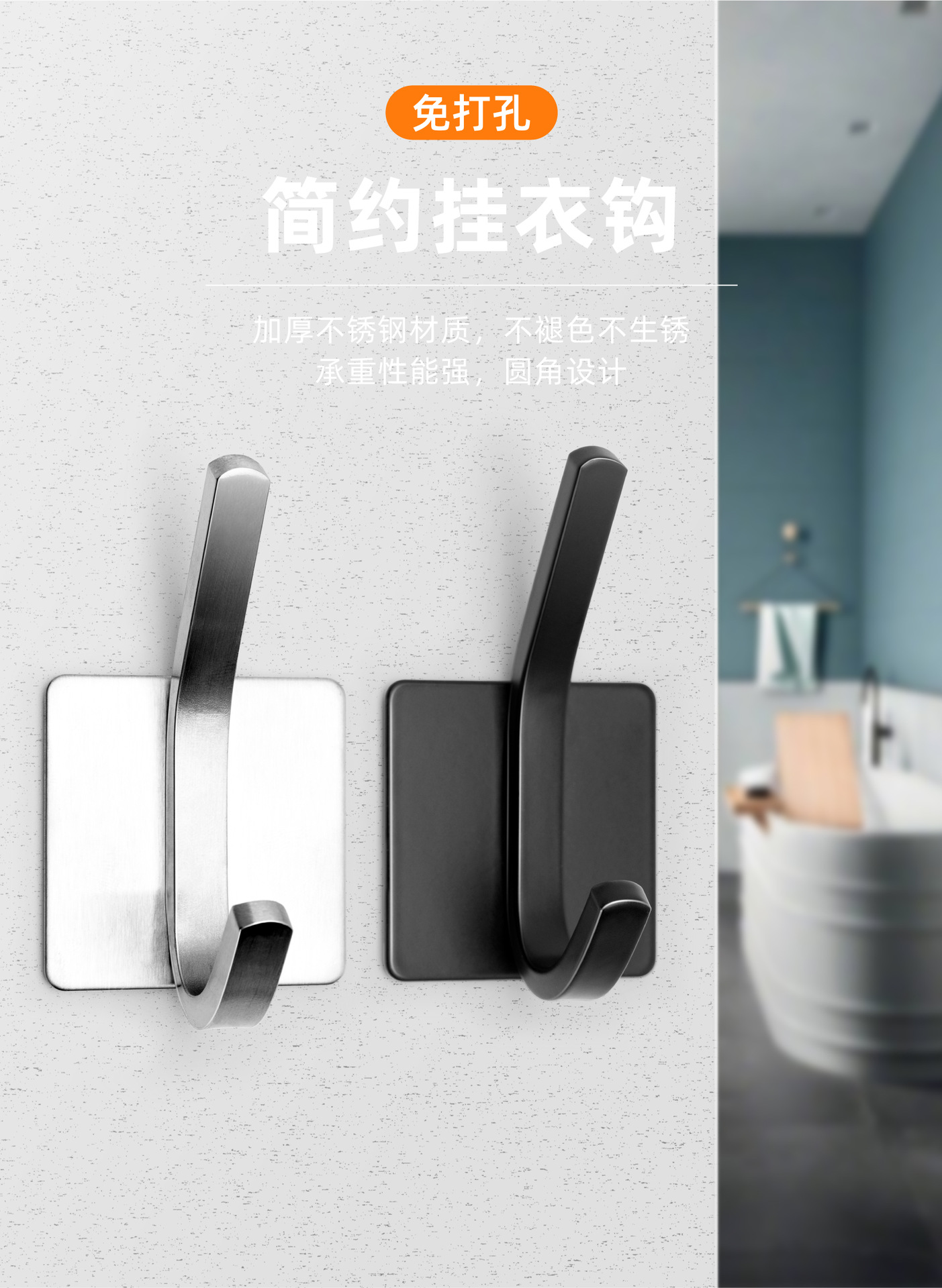 304不锈钢挂钩U型钩免打孔挂衣钩金属无痕创意墙壁衣服排钩单钩 商品图1