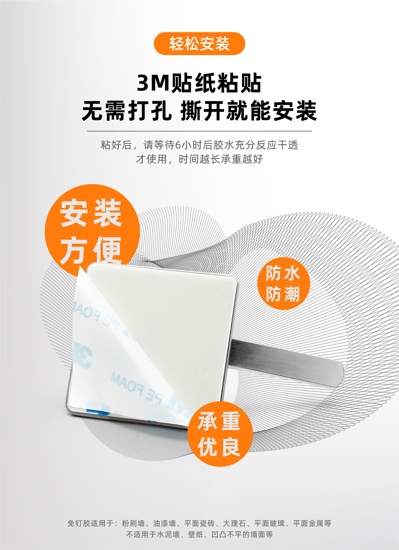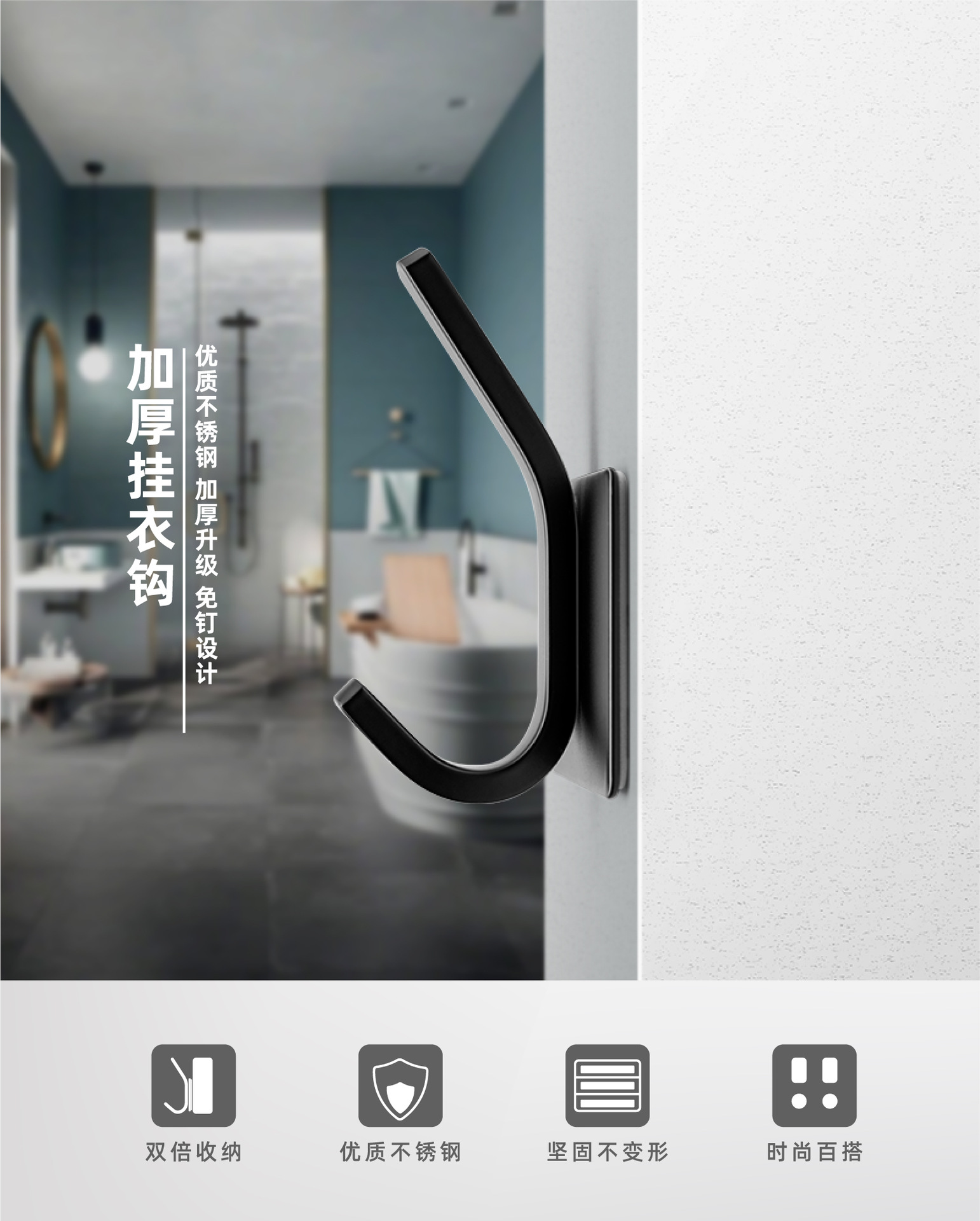 304不锈钢挂钩U型钩免打孔挂衣钩金属无痕创意墙壁衣服排钩单钩 商品图4
