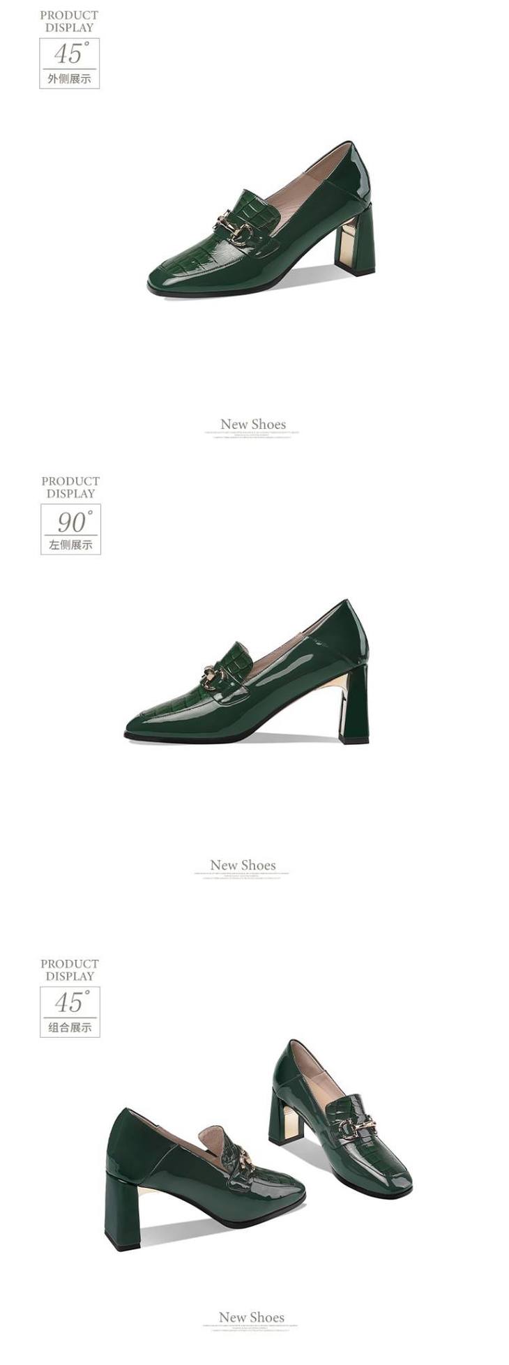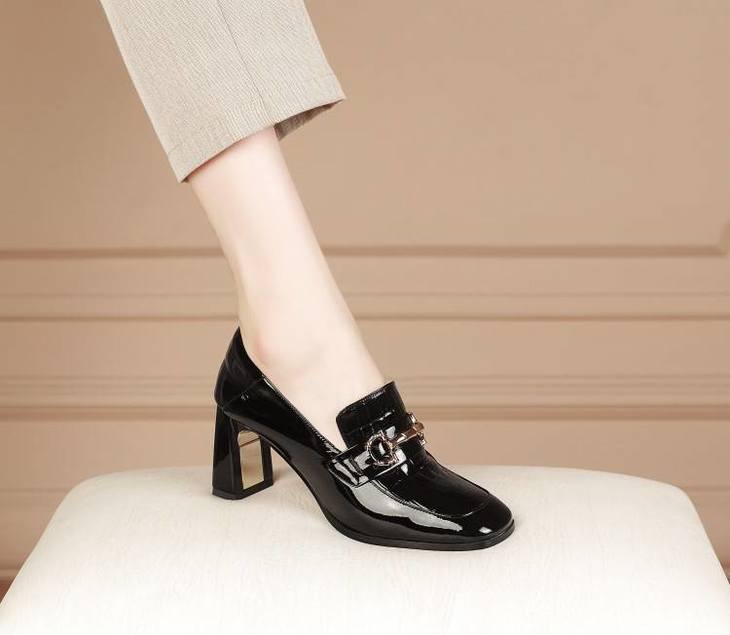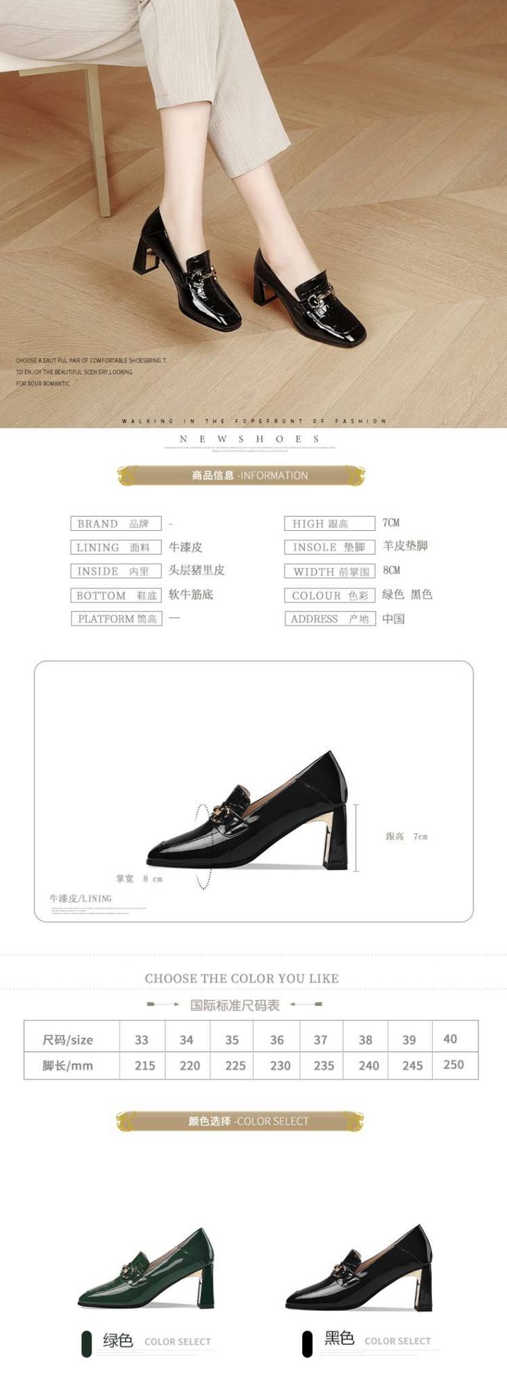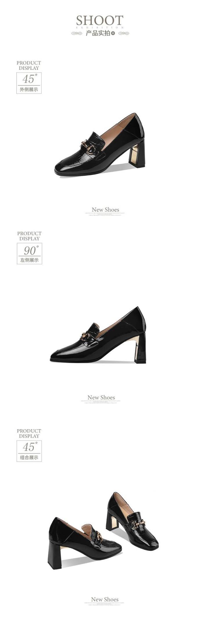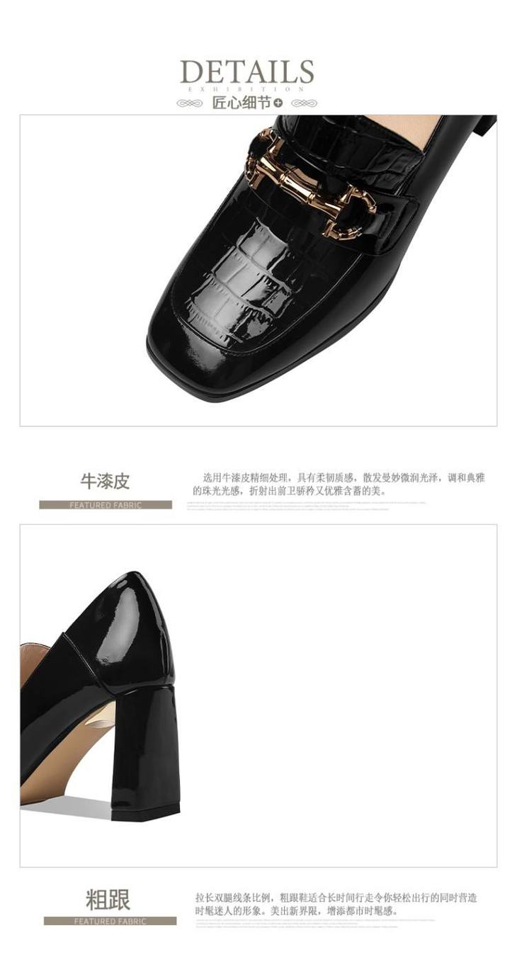 【预售5天】欧美百搭女单鞋高跟粗跟漆皮英伦风方头小皮鞋女鞋LD&7044