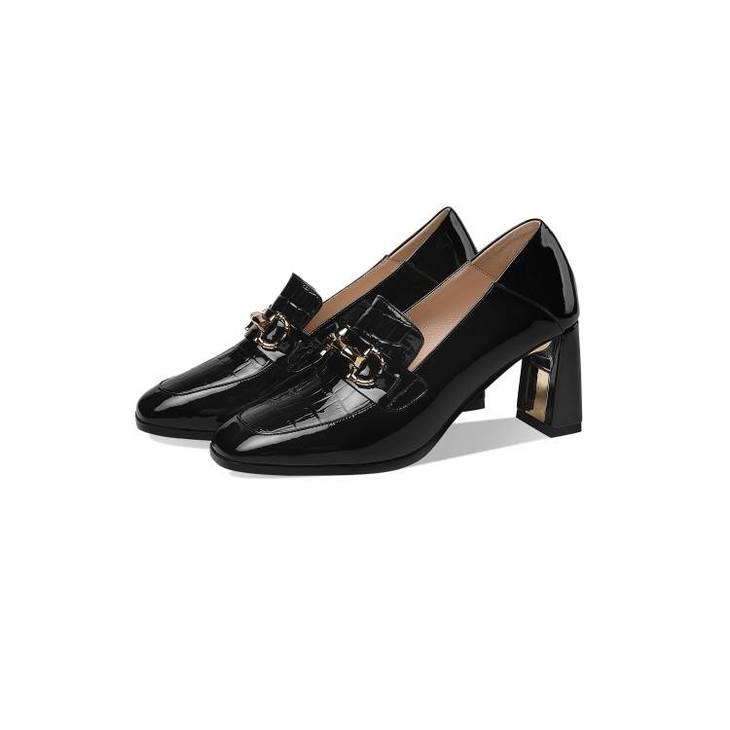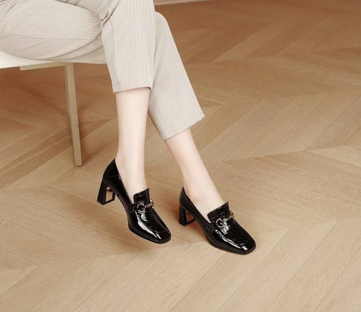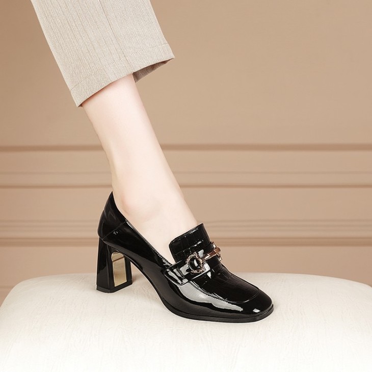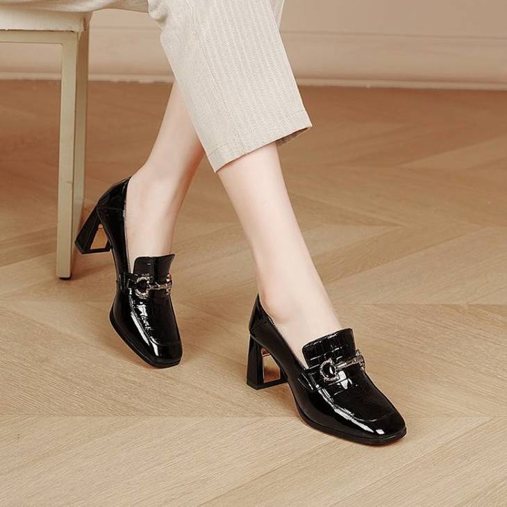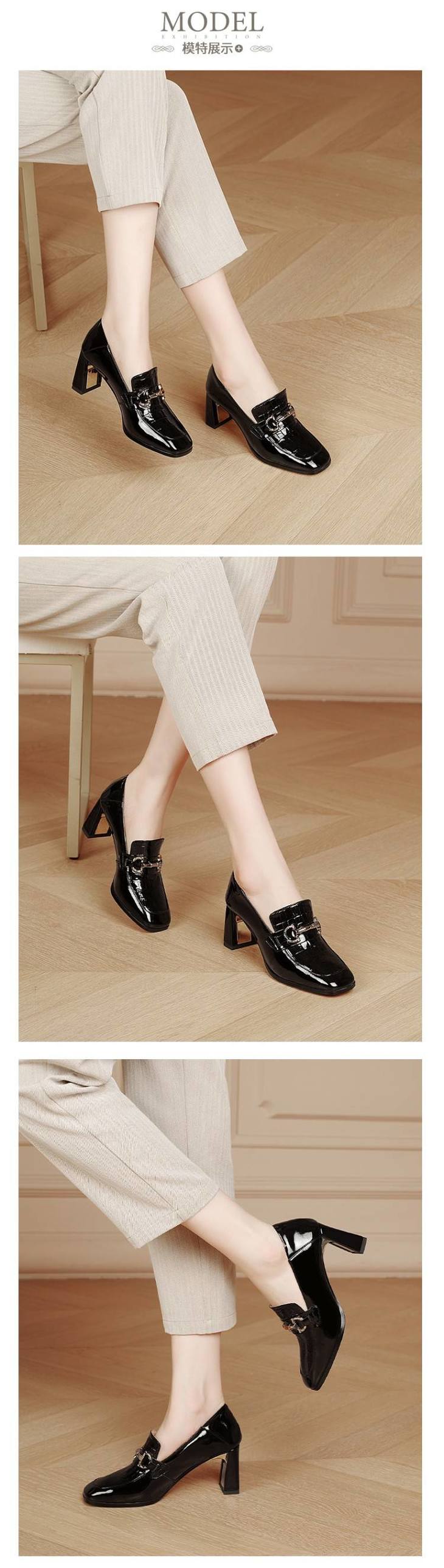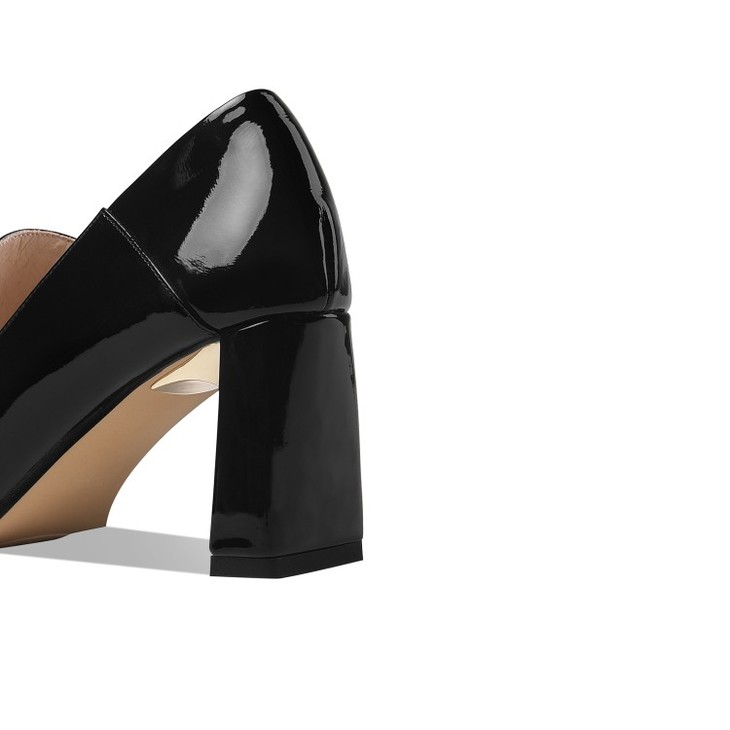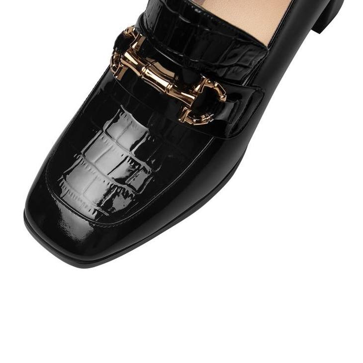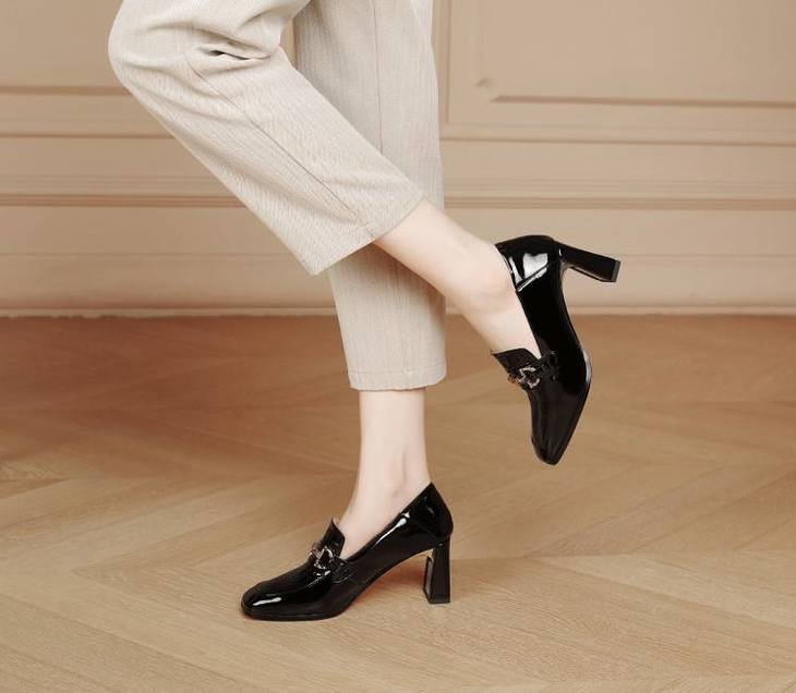 【预售5天】欧美百搭女单鞋高跟粗跟漆皮英伦风方头小皮鞋女鞋LD&7044