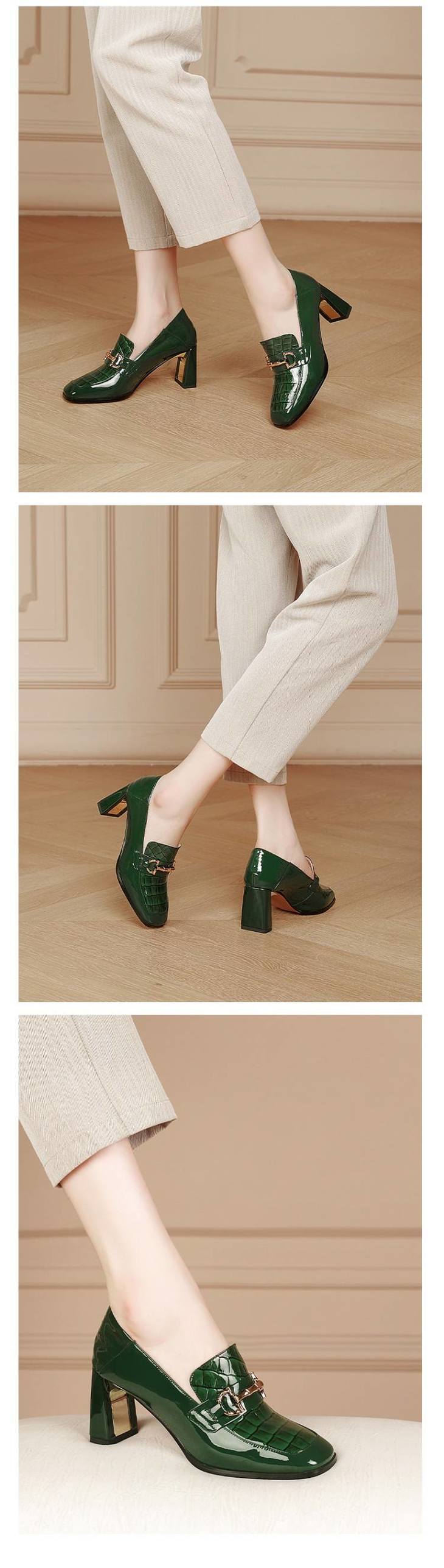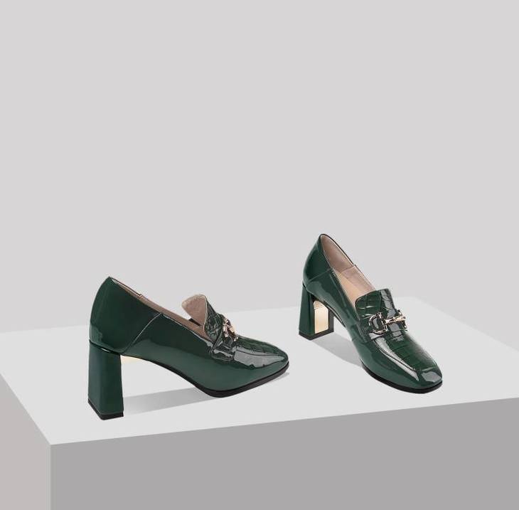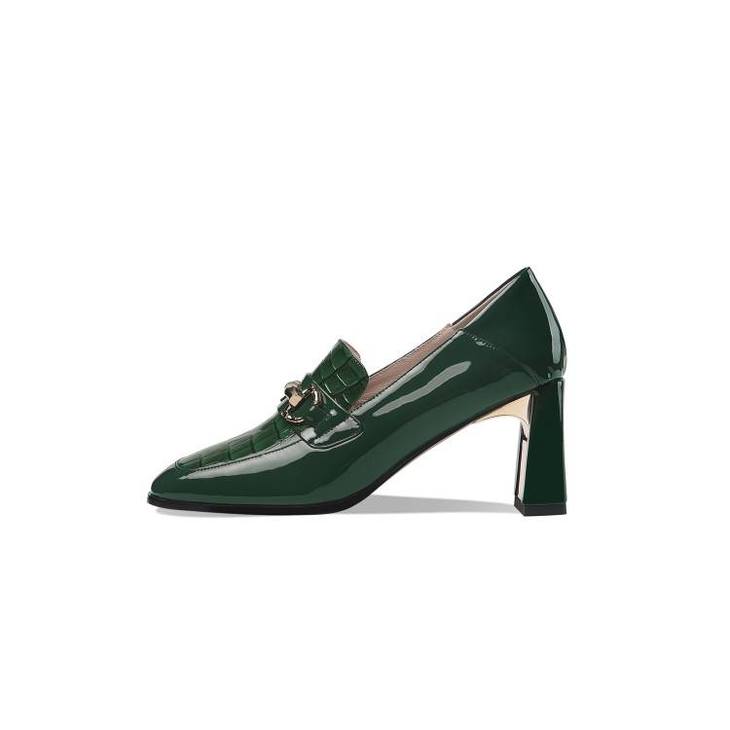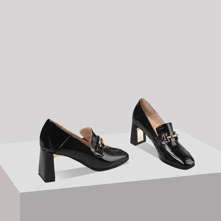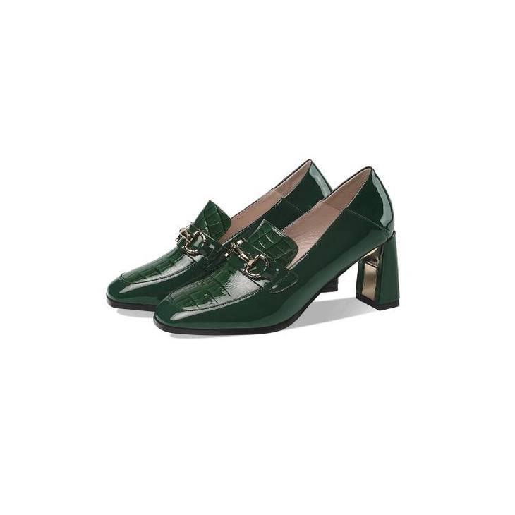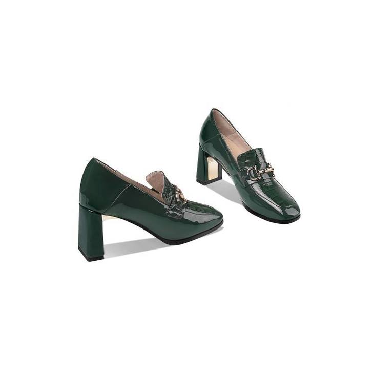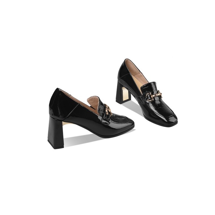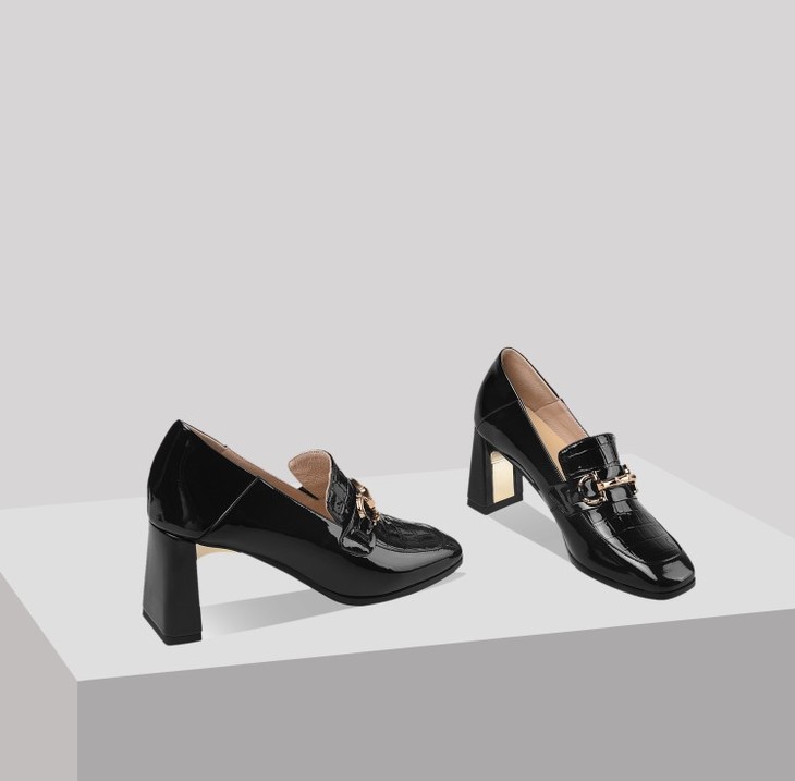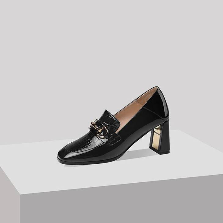 【预售5天】欧美百搭女单鞋高跟粗跟漆皮英伦风方头小皮鞋女鞋LD&7044