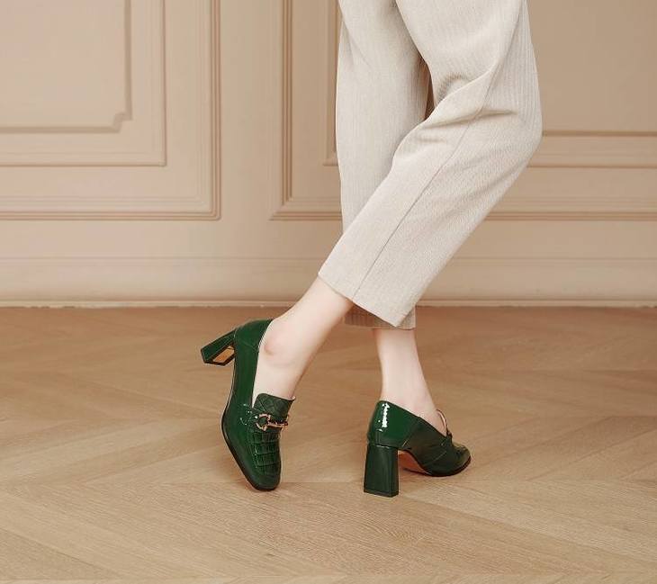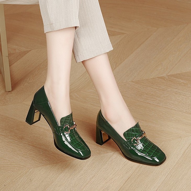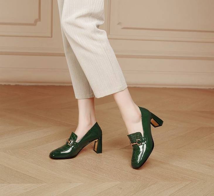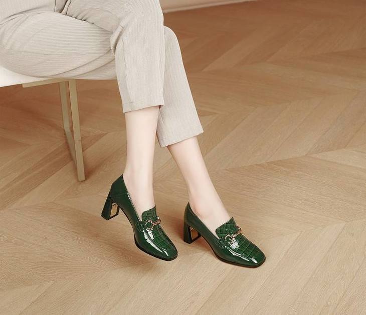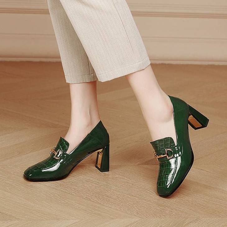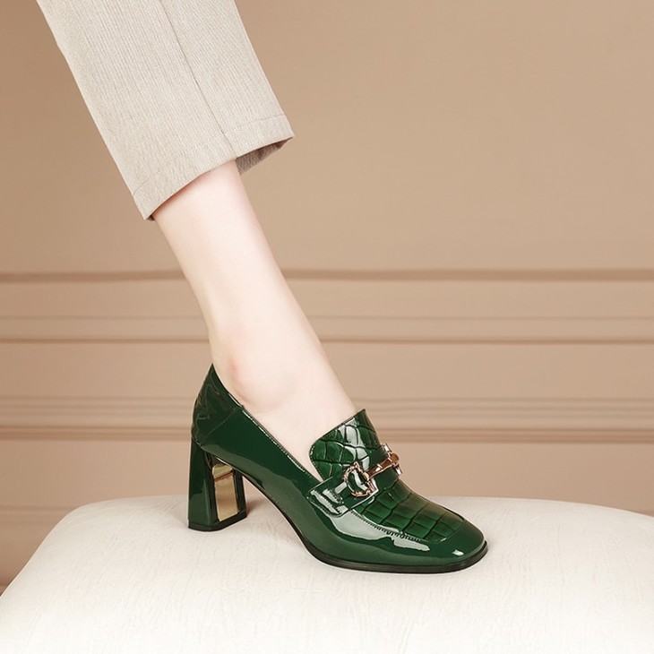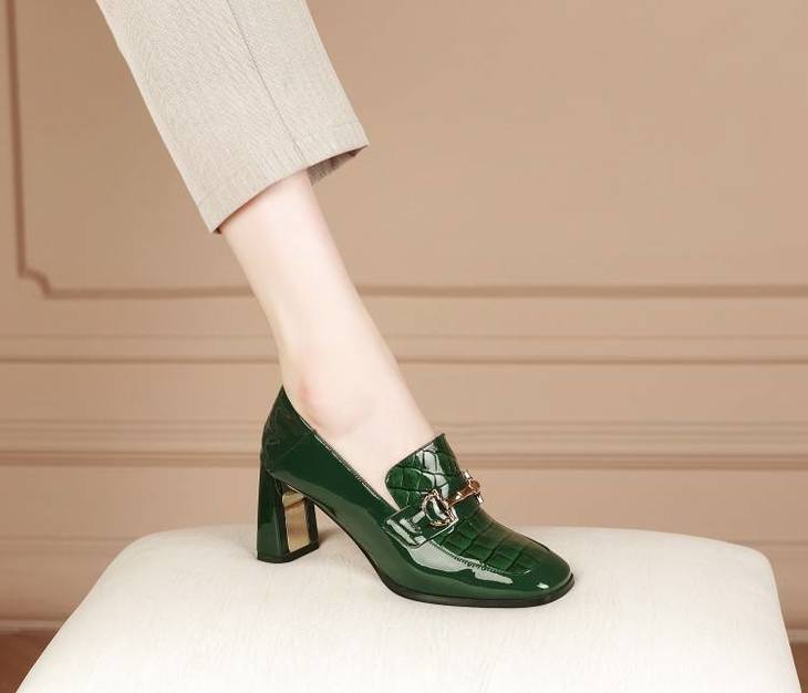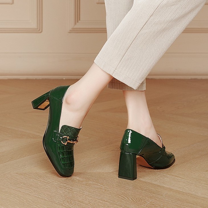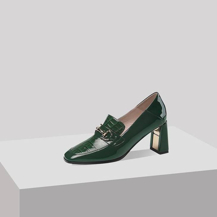 【预售5天】欧美百搭女单鞋高跟粗跟漆皮英伦风方头小皮鞋女鞋LD&7044