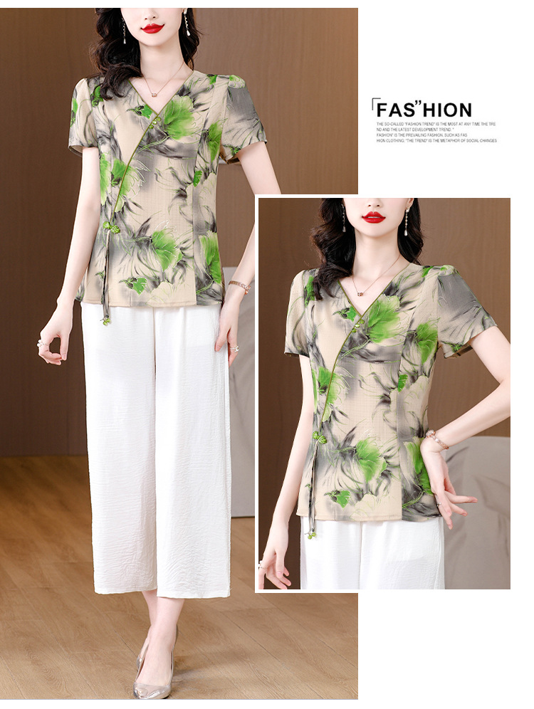 夏季套装女长裙小衫两件套,新款收腰显瘦长款碎花套装裙 HT-YX8279