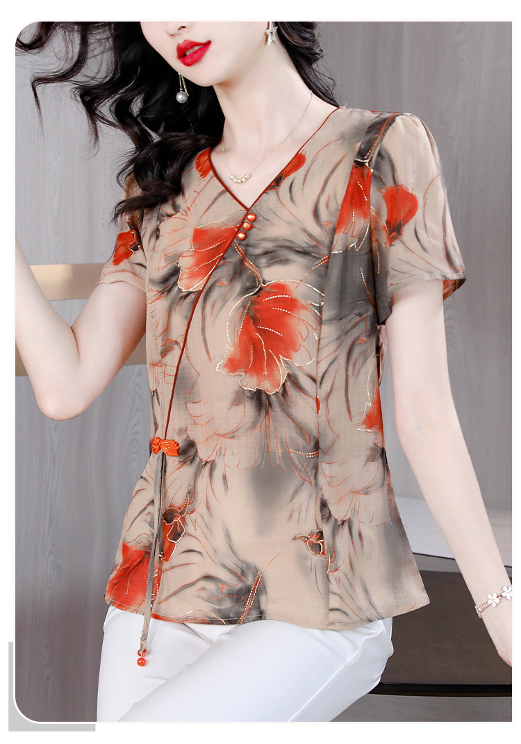 宽松显瘦,新款洋气棉麻气质遮肉显瘦小衫KQL-413H6703